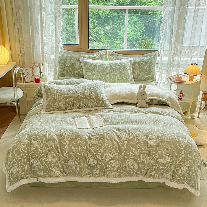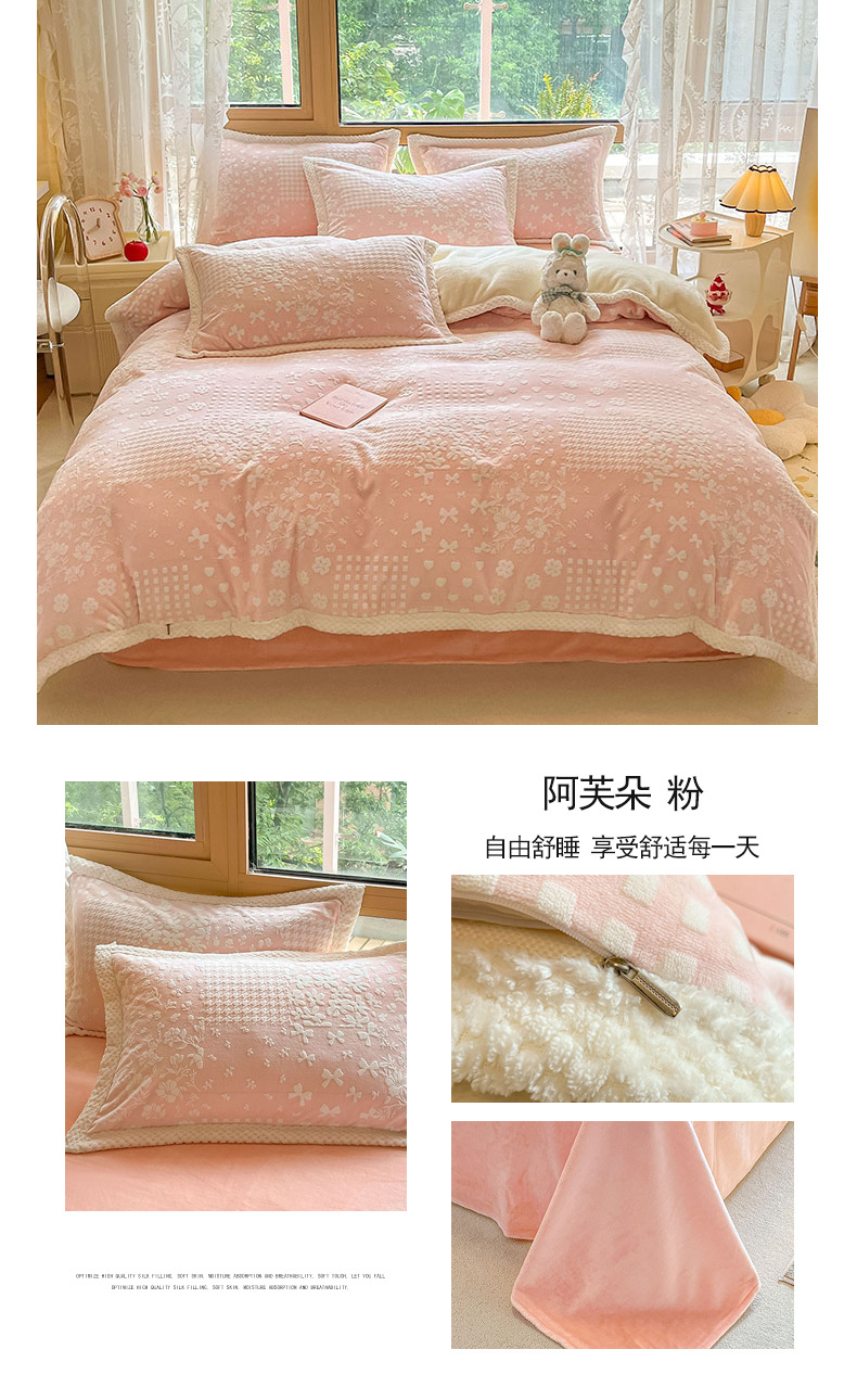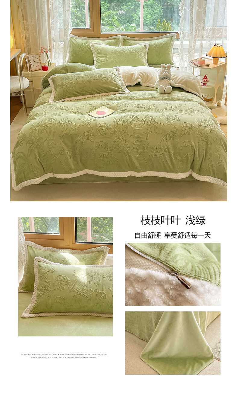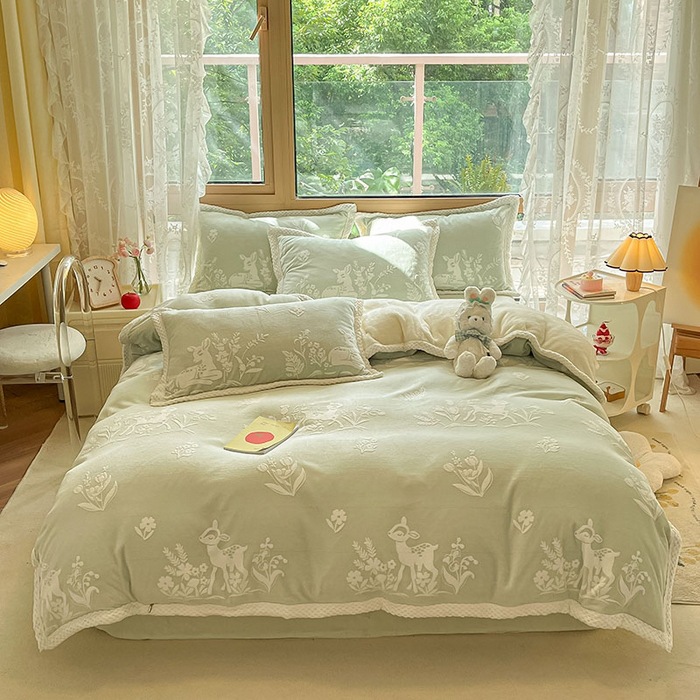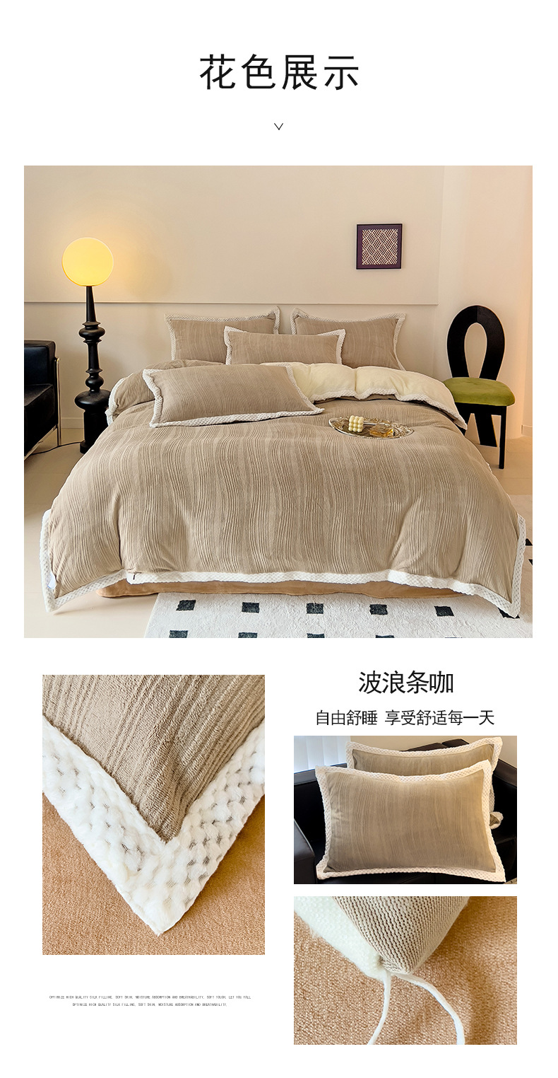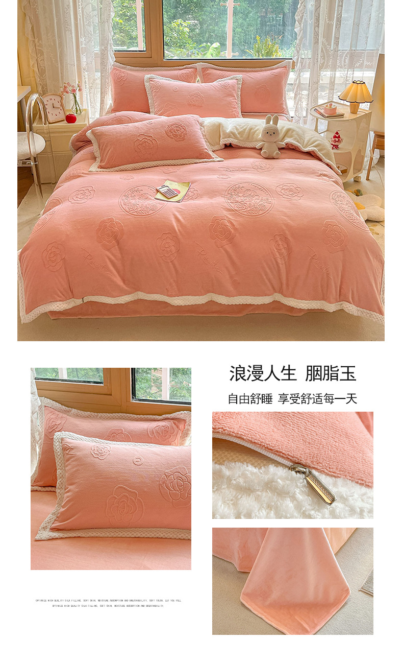 2024 새로운 간단한 테두리 풀 멸종 조각 우유 벨벳 토끼 벨벳 4 피스 세트스토어 가기