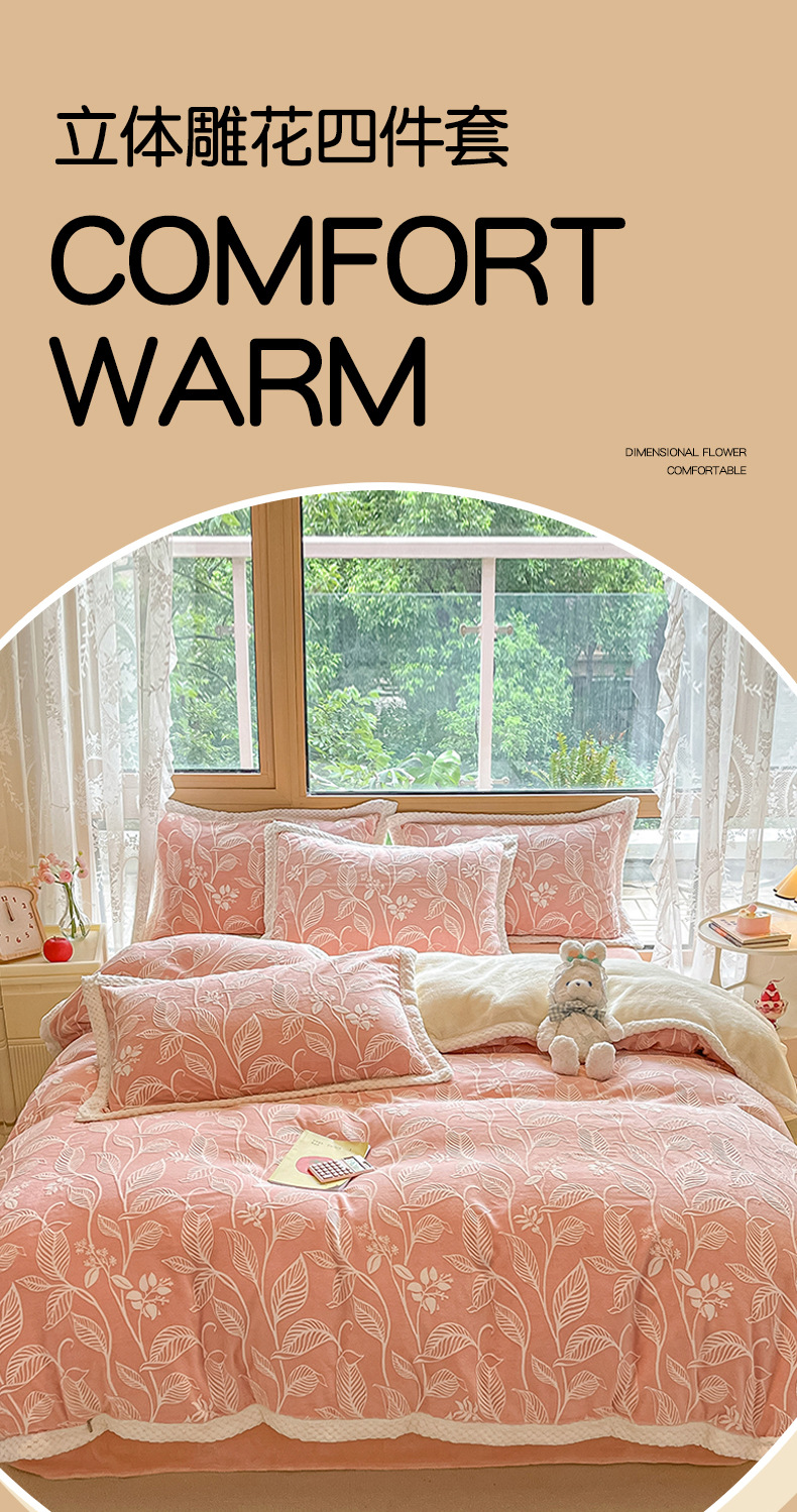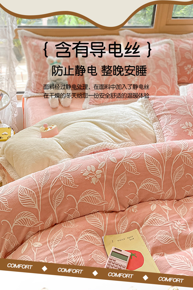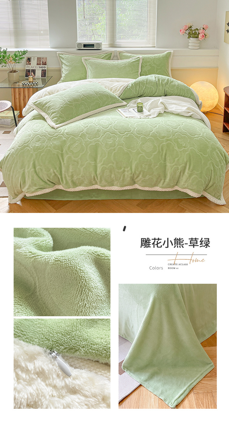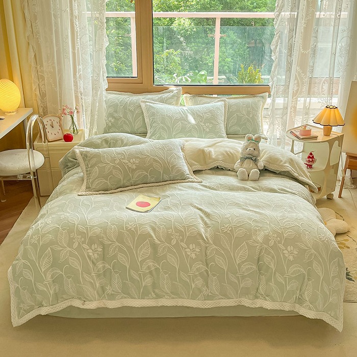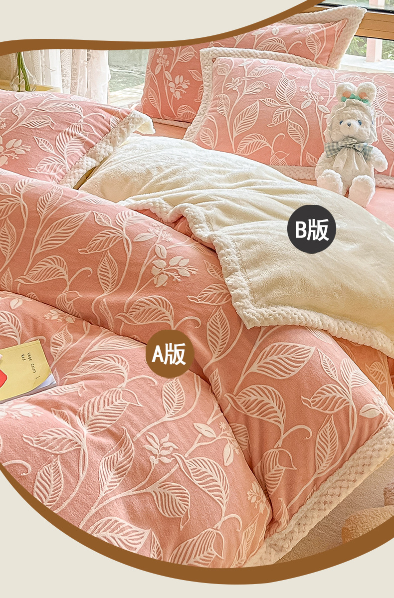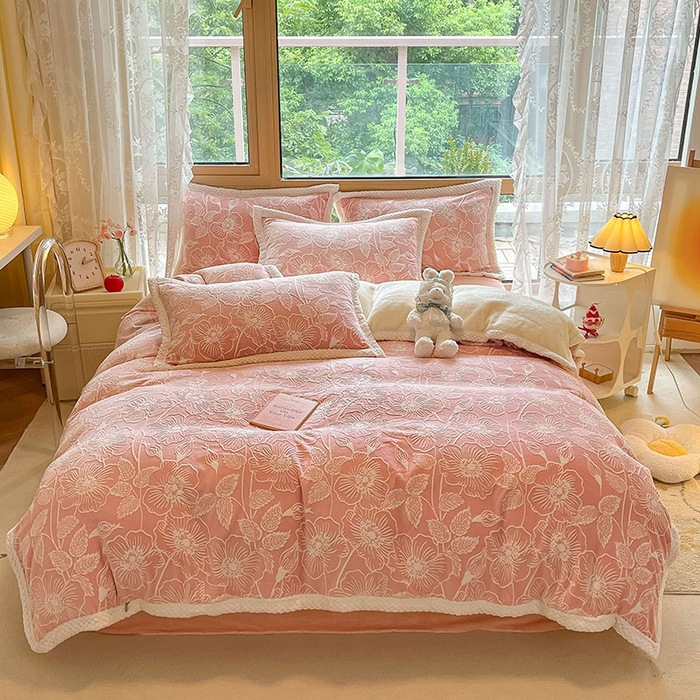 2024 새로운 간단한 테두리 풀 멸종 조각 우유 벨벳 토끼 벨벳 4 피스 세트스토어 가기