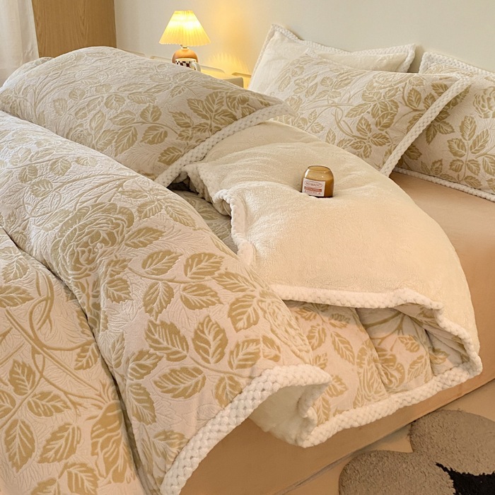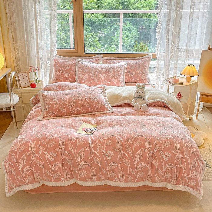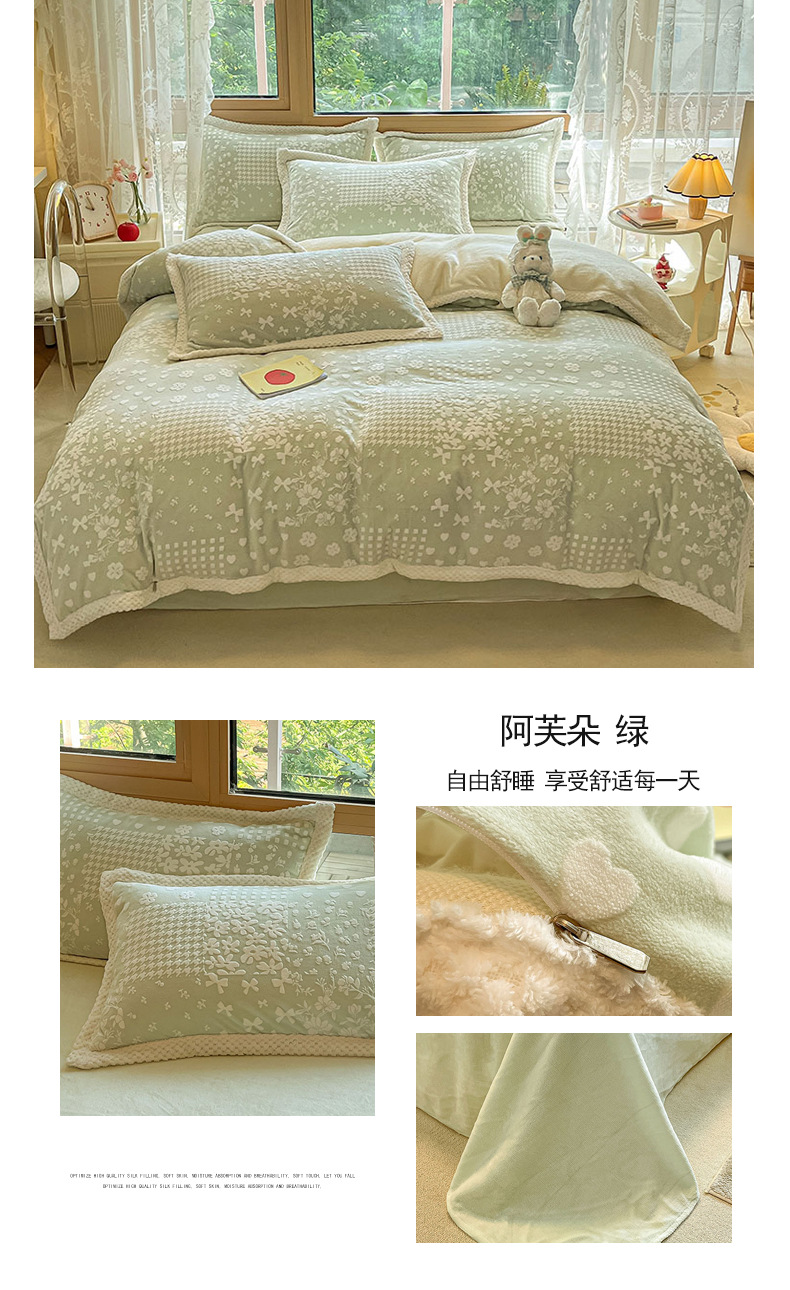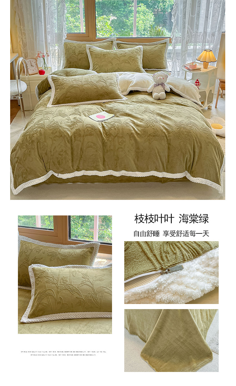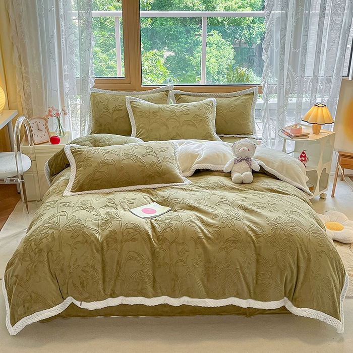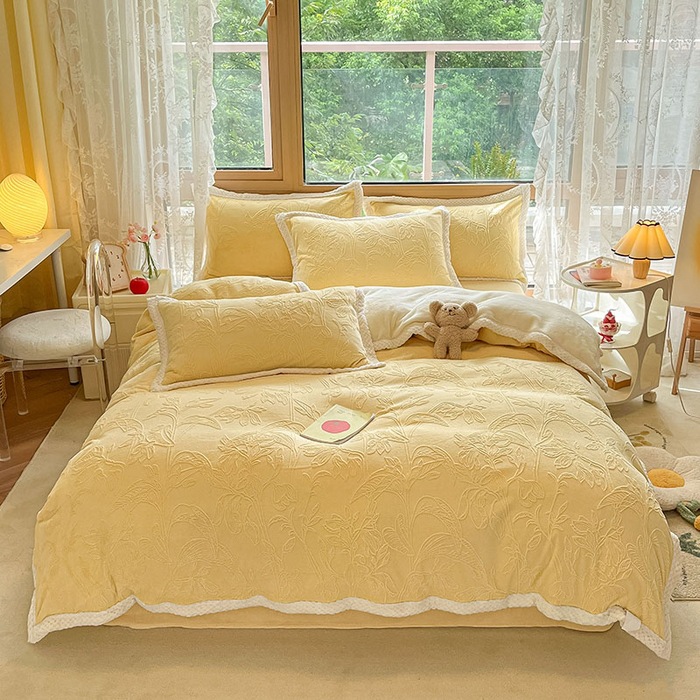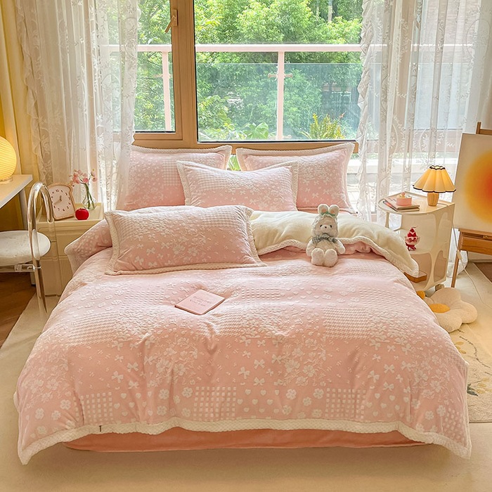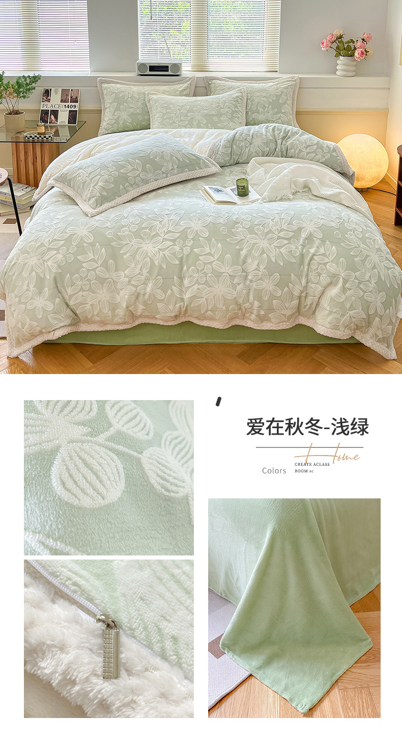2024 새로운 간단한 테두리 풀 멸종 조각 우유 벨벳 토끼 벨벳 4 피스 세트스토어 가기
