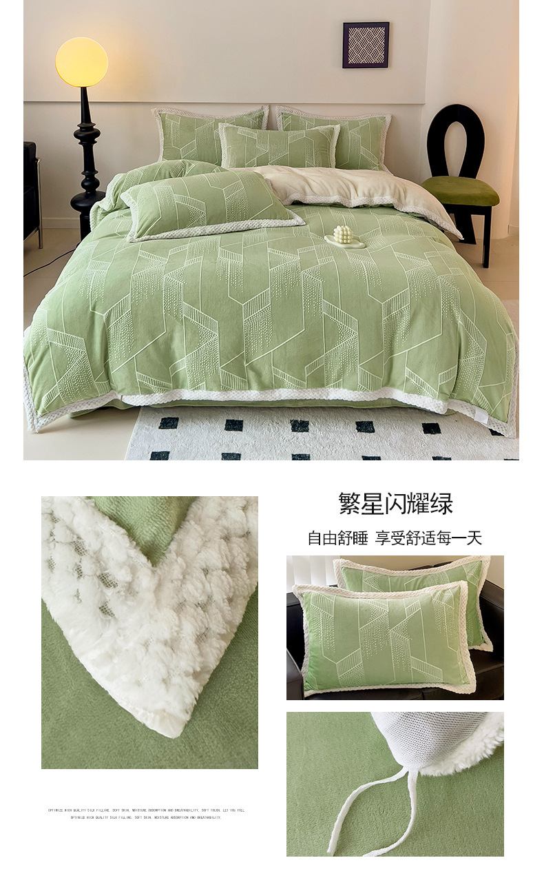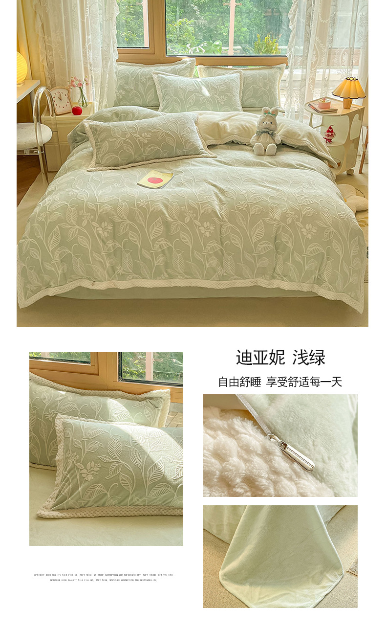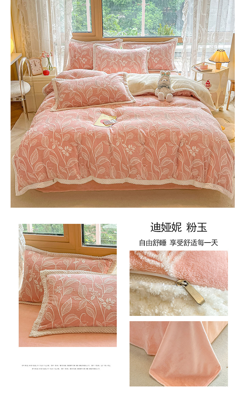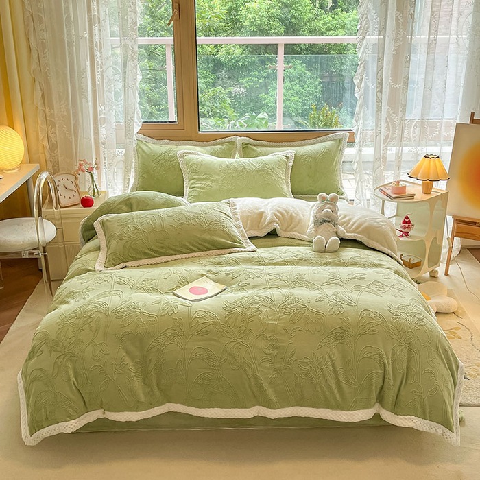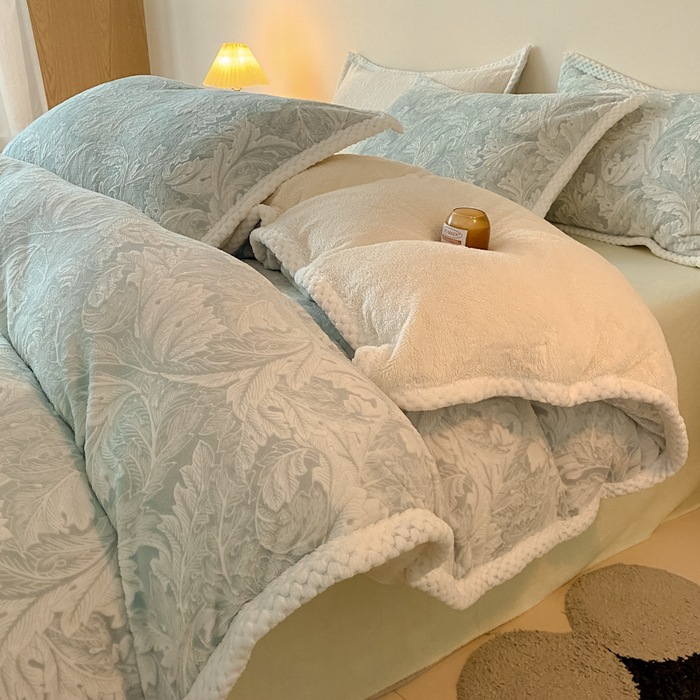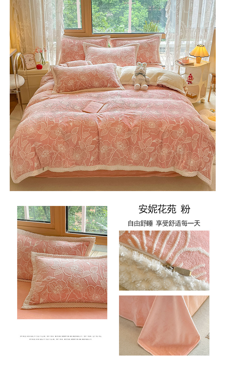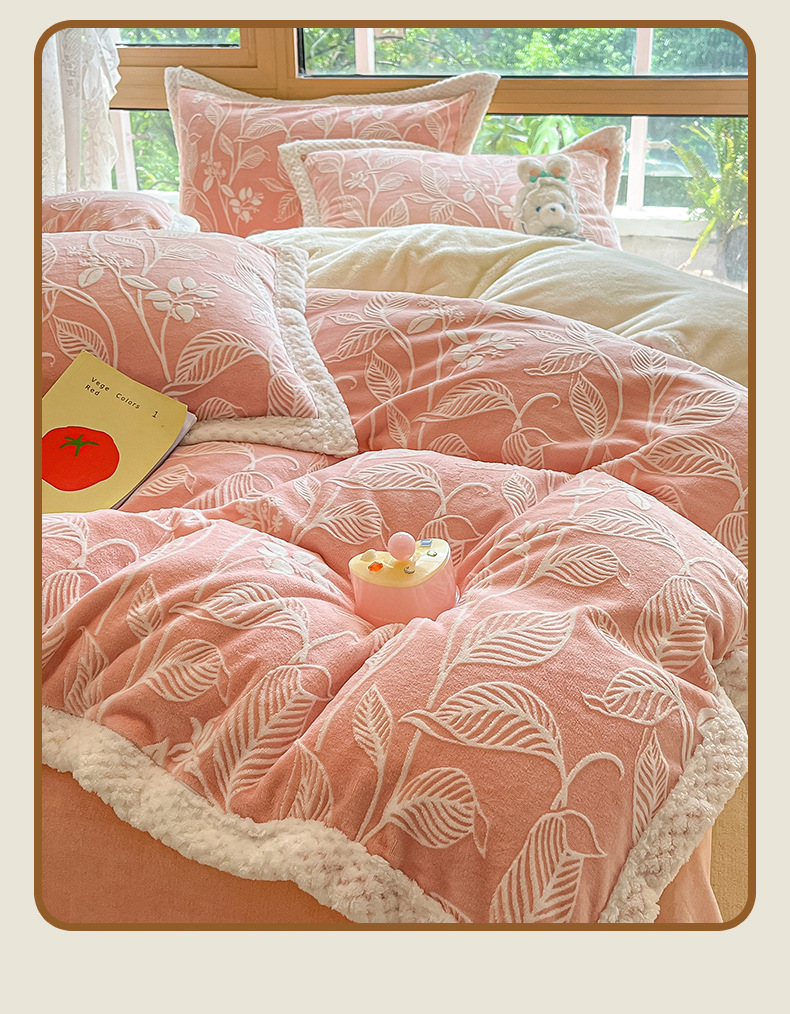 2024 새로운 간단한 테두리 풀 멸종 조각 우유 벨벳 토끼 벨벳 4 피스 세트스토어 가기