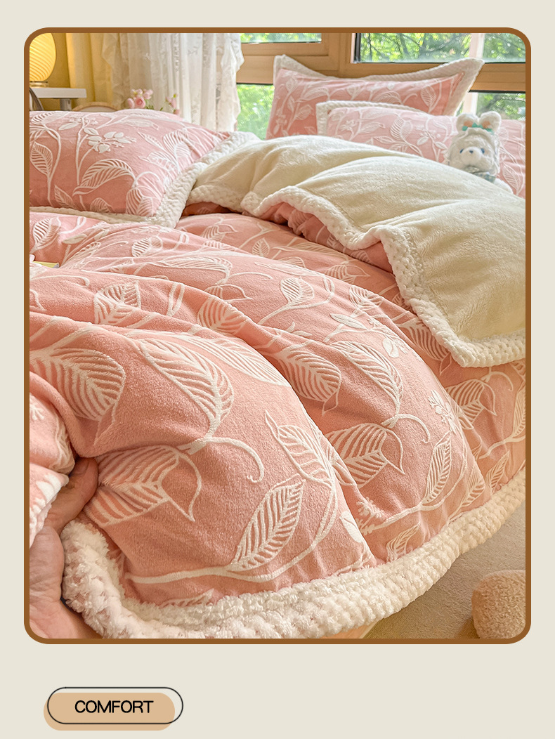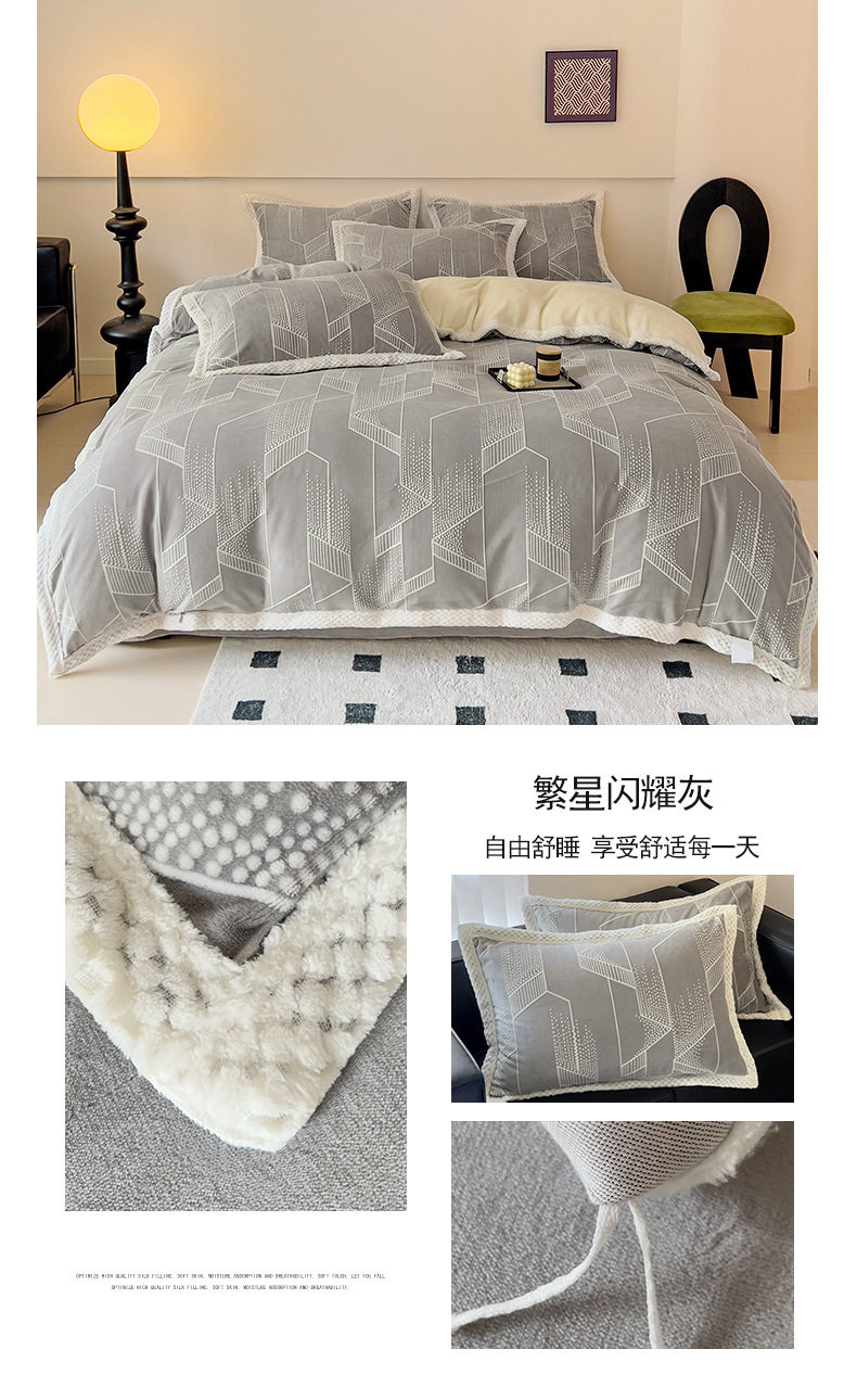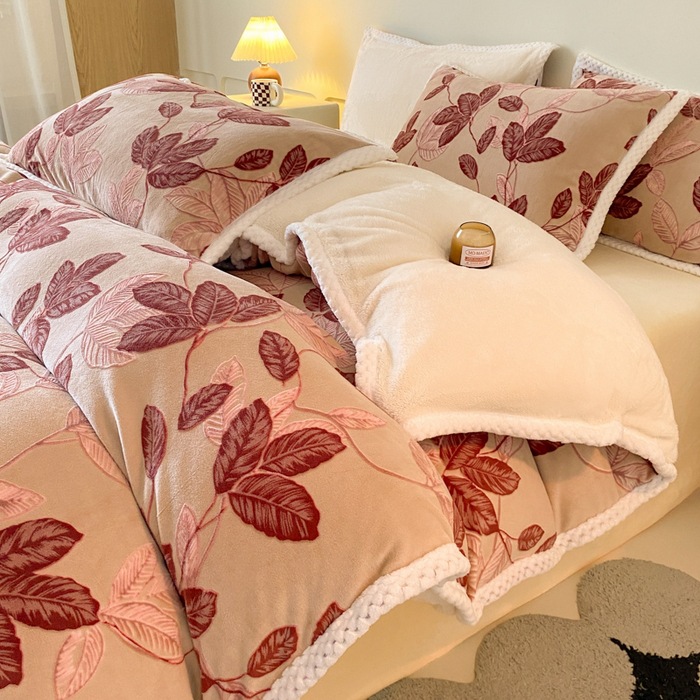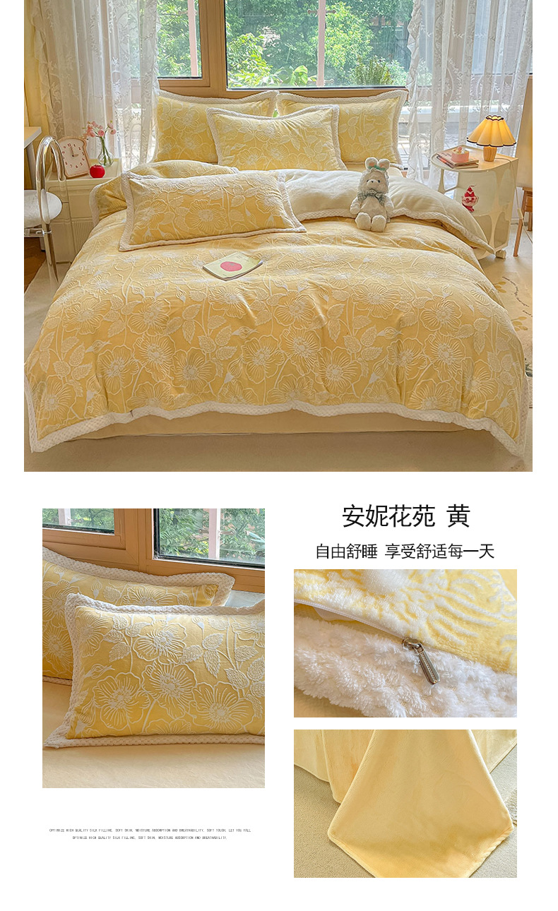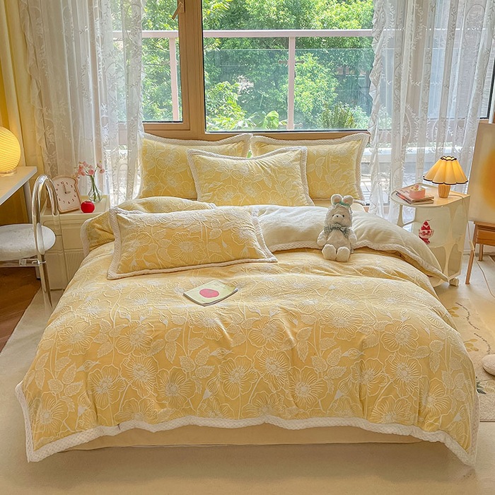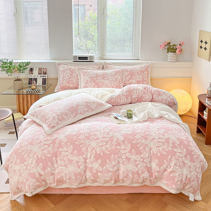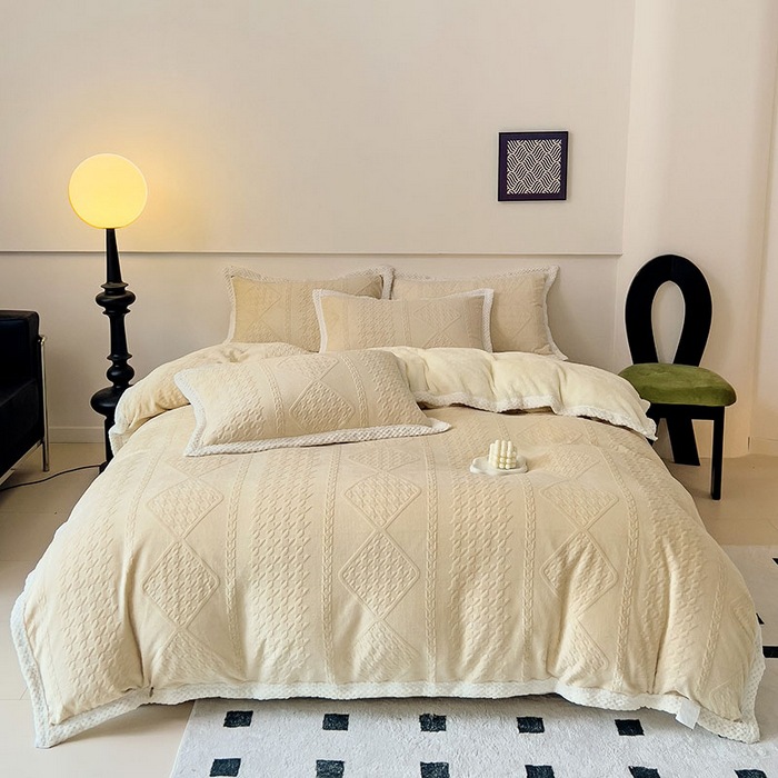 2024 새로운 간단한 테두리 풀 멸종 조각 우유 벨벳 토끼 벨벳 4 피스 세트스토어 가기