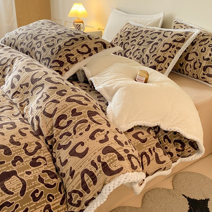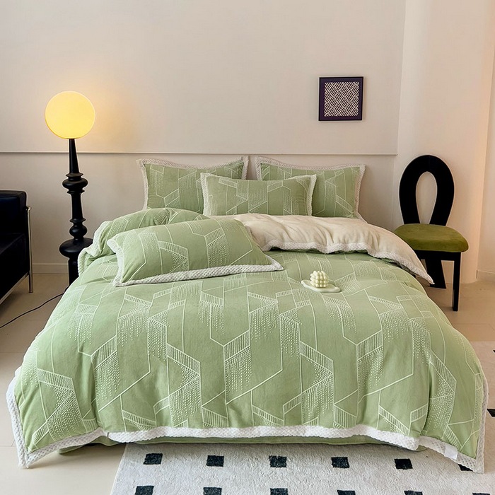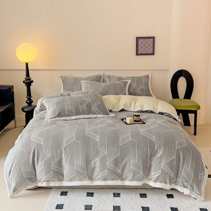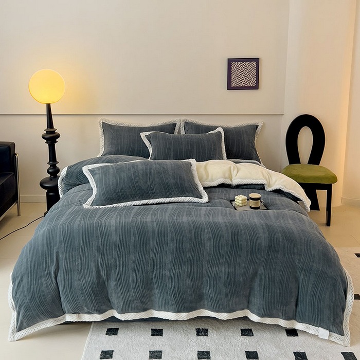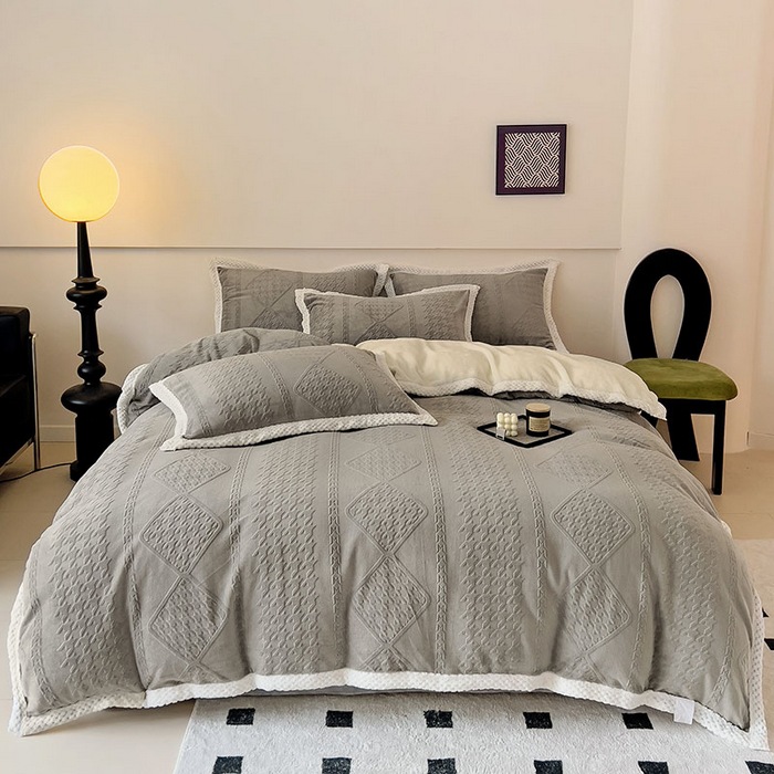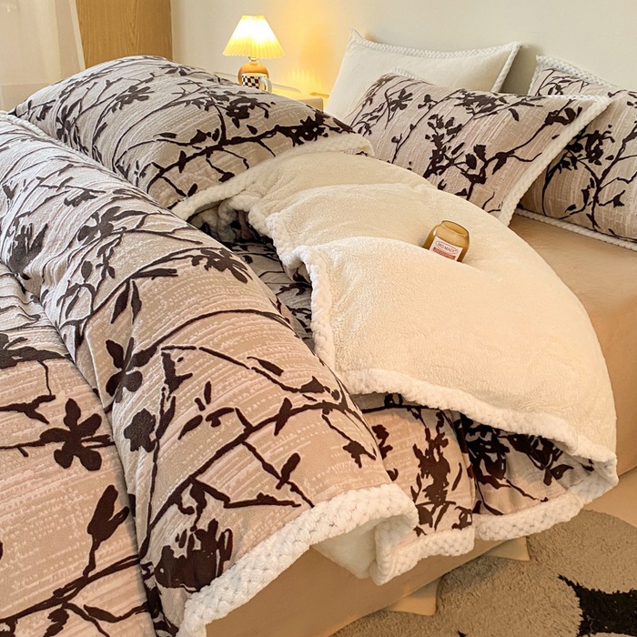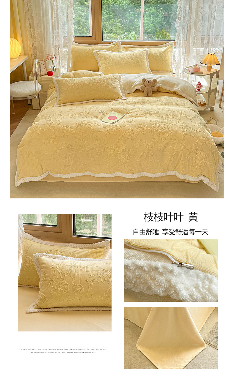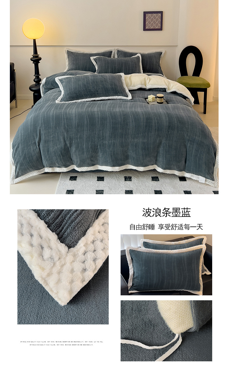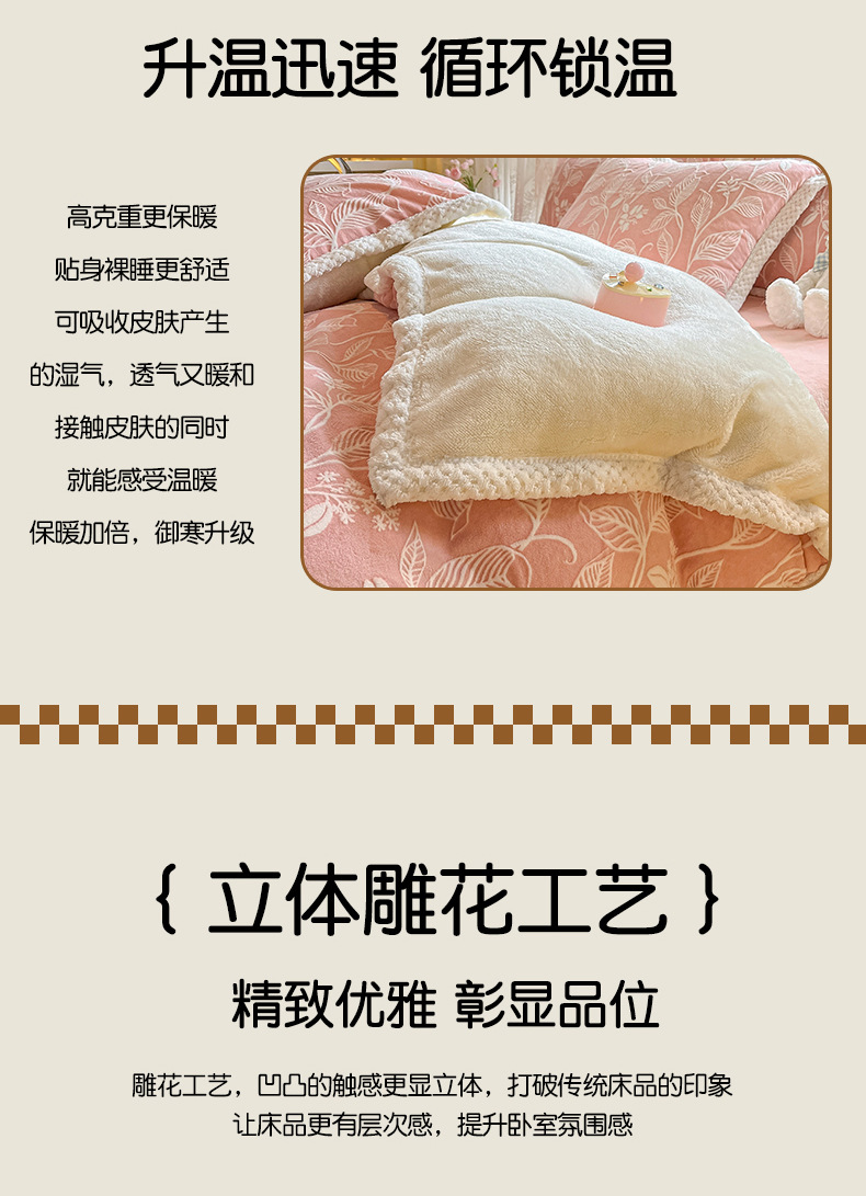 2024 새로운 간단한 테두리 풀 멸종 조각 우유 벨벳 토끼 벨벳 4 피스 세트스토어 가기