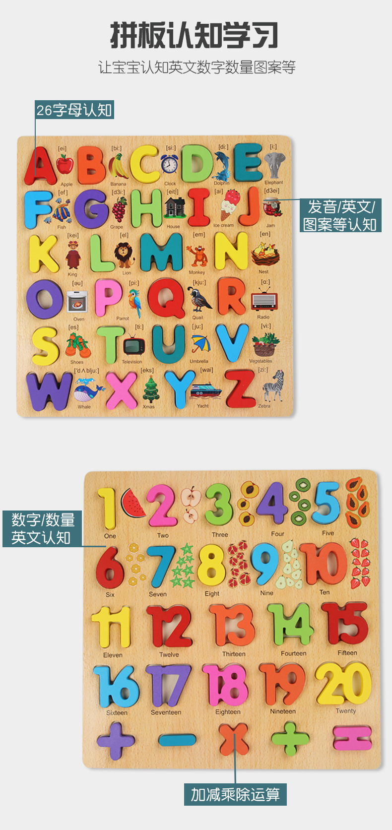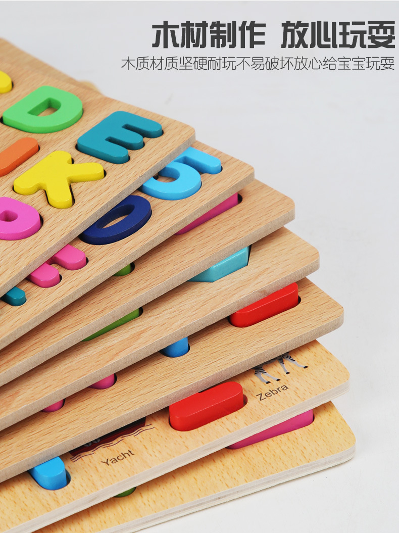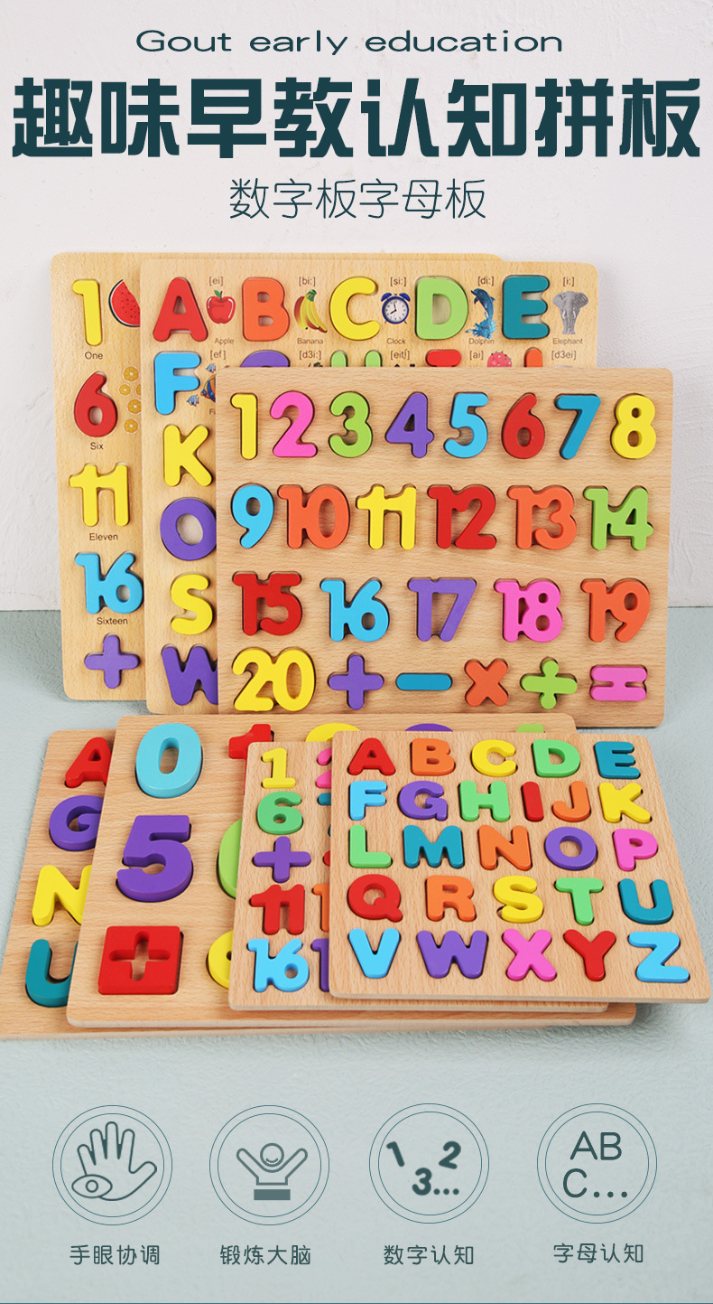 디지털 퍼즐 알파벳 보드 스테레오 수학적 조작 매치 보드 3 세 어린이 나무 조기 교육 장난감 핸드 헬드 보드 공장스토어 가기
