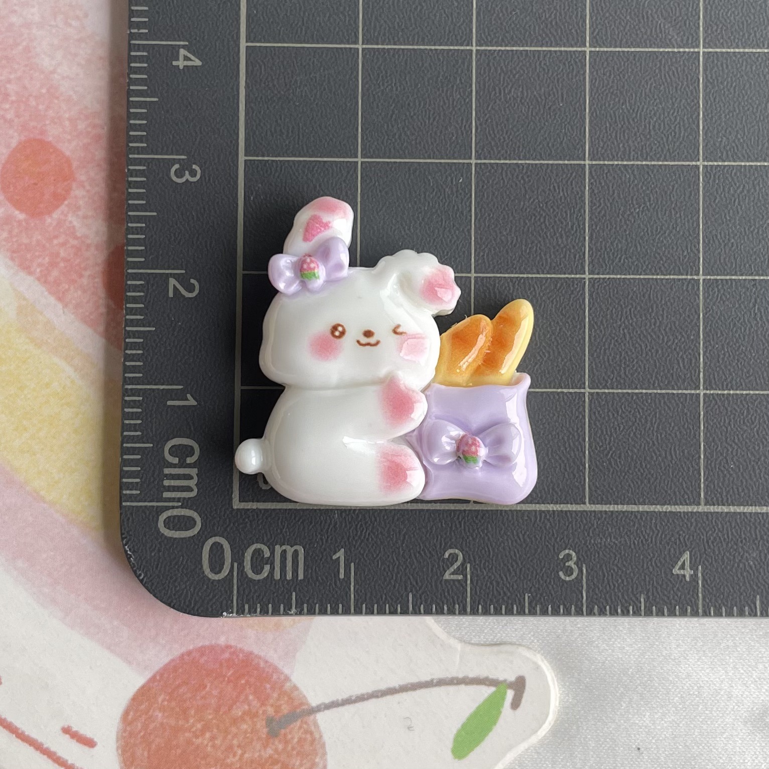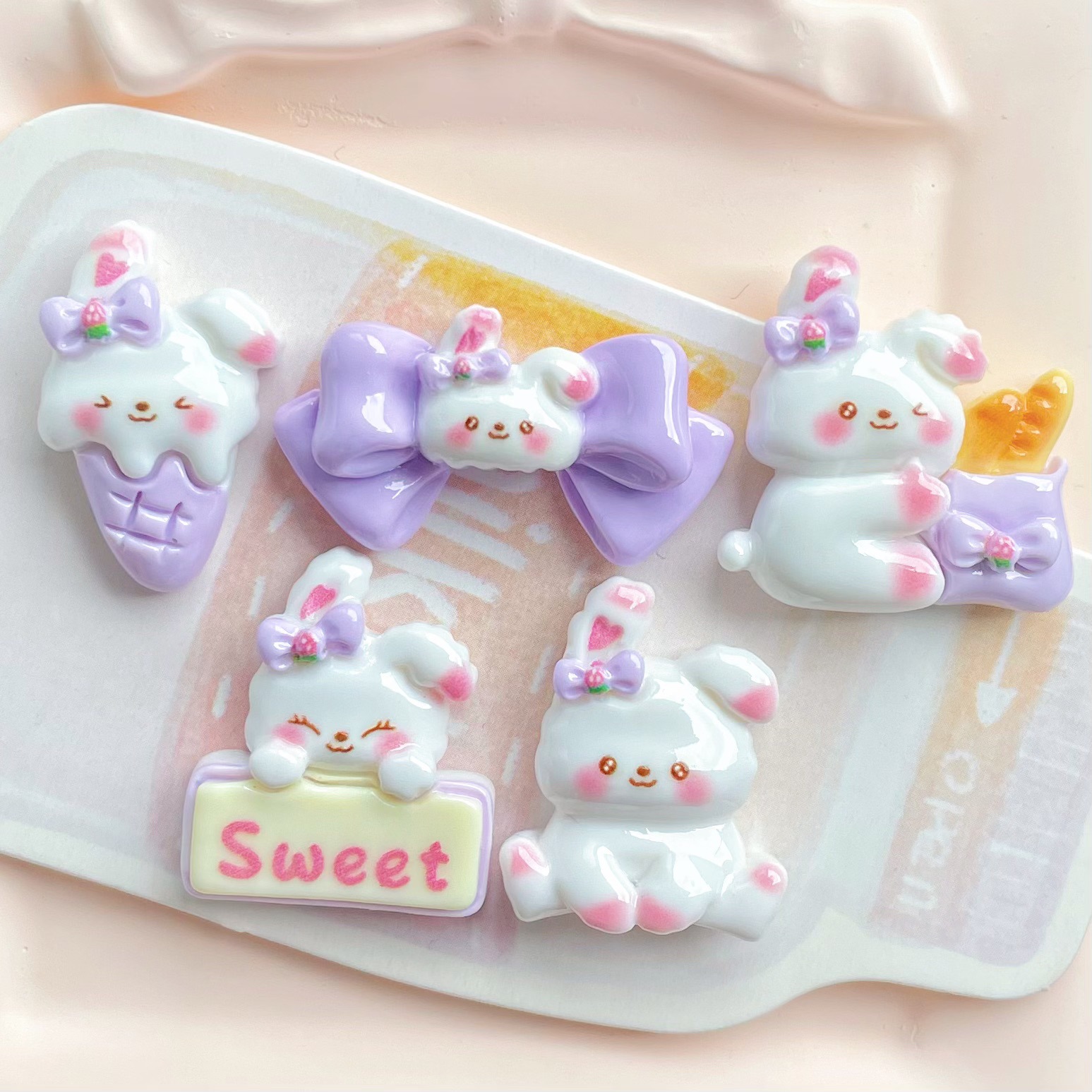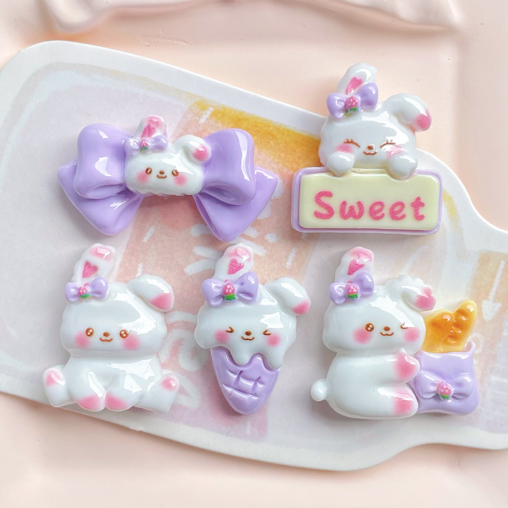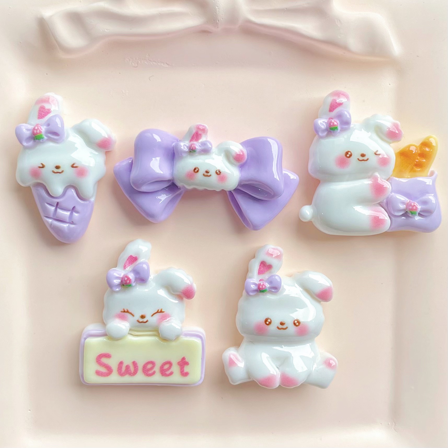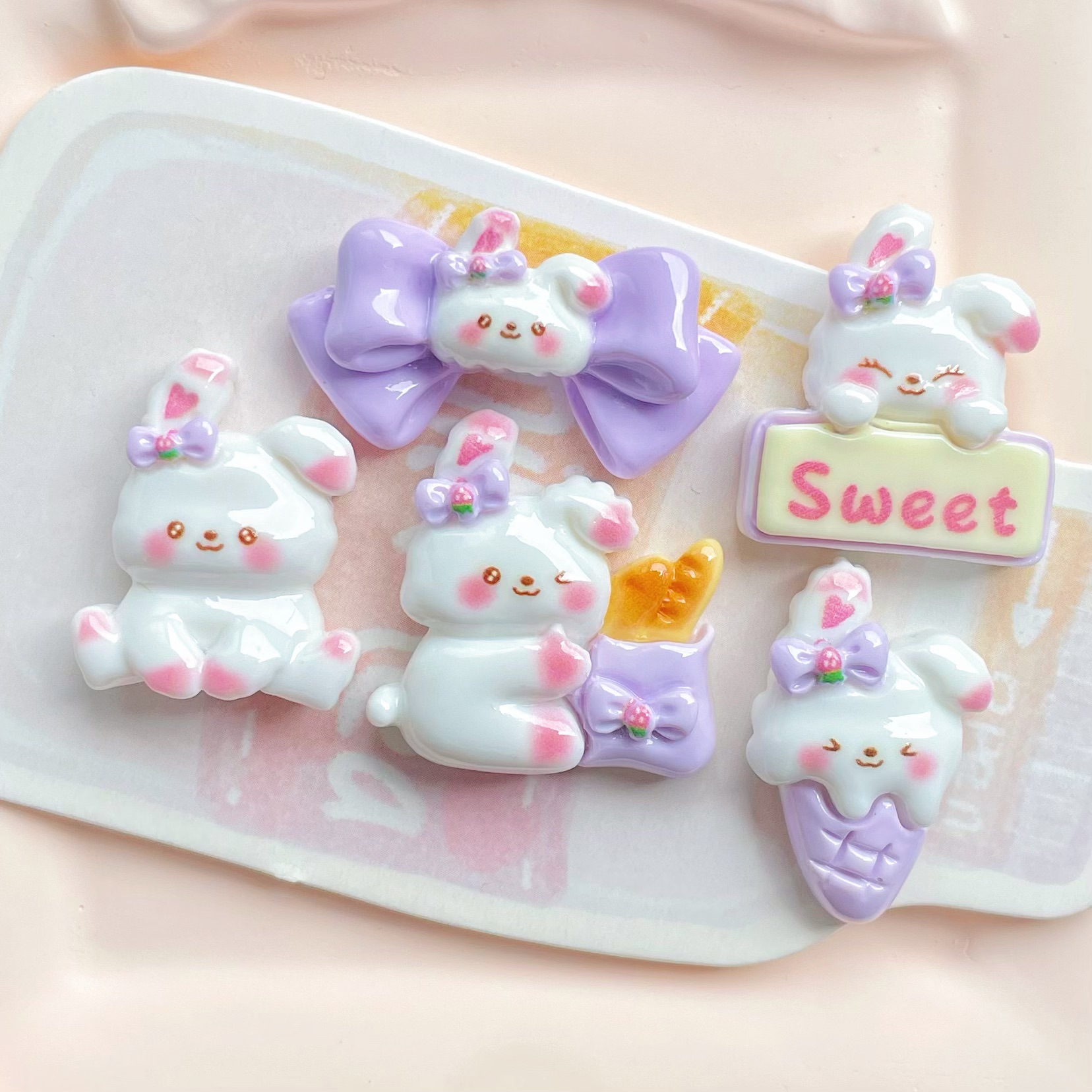 보라색 활 흰 토끼 수지 액세서리 아이스크림 빵 토끼 머리핀 전화 케이스 키 체인 액세서리 소재