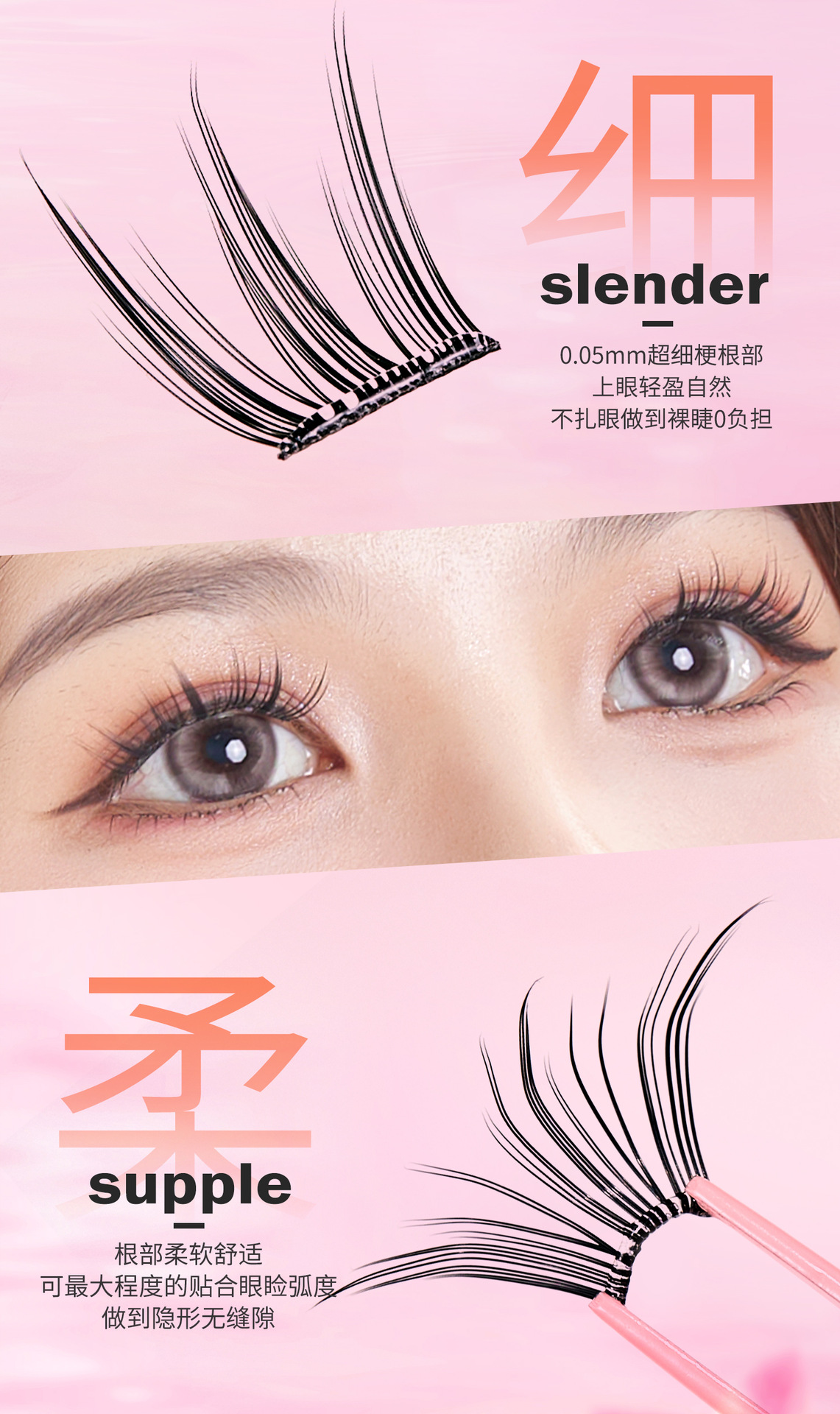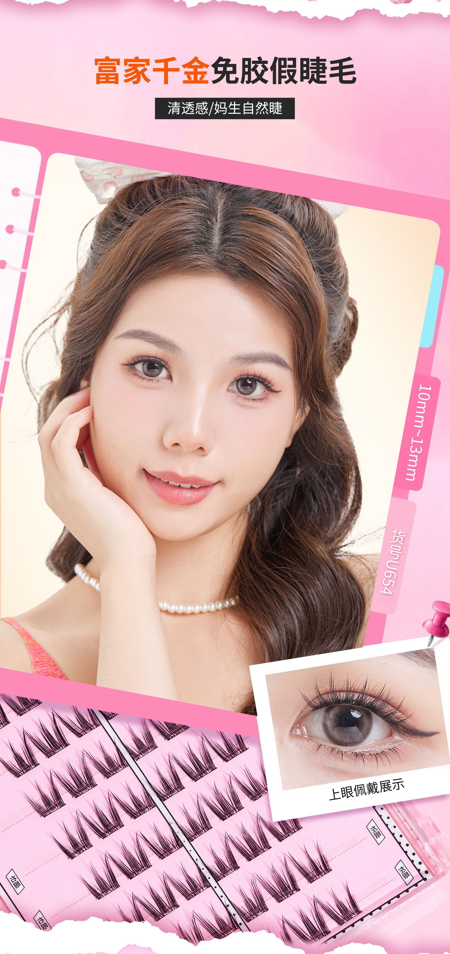 UWN 접착제없는 거짓 속눈썹 자연 시뮬레이션 작은 바람 벨 얇은 줄기 순수한 껌없는 큰 눈 거짓 속눈썹스토어 가기