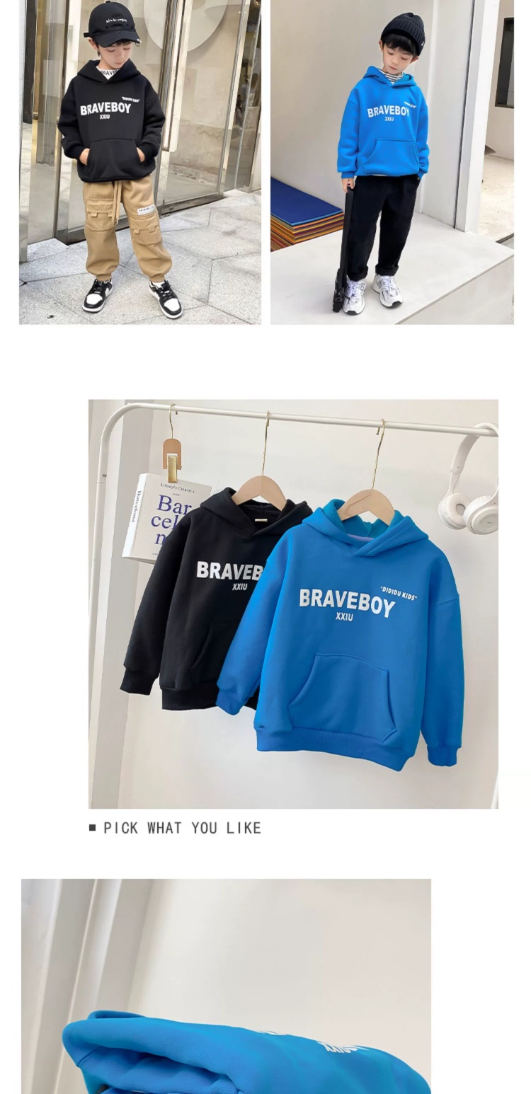 [속보] 남아용 후드 스웨트셔츠 두꺼운 2022 신작 아동복 솔리드 컬러 벨벳 재킷 아동 한국어 버전