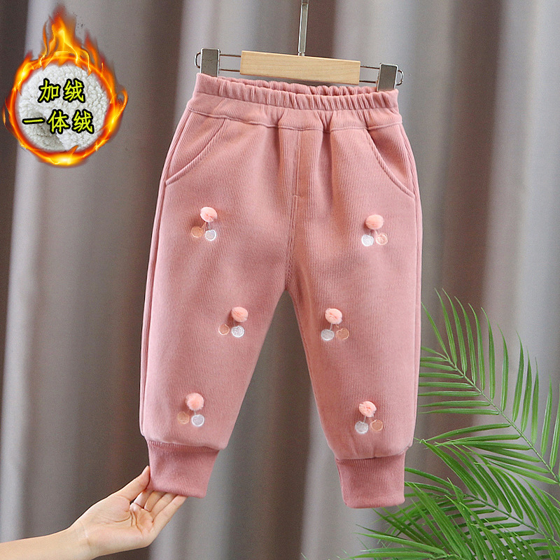 여자 기모 캐주얼 바지 가을과 겨울 한 벨벳 아기 소녀 패딩 바지 바지 바지 겨울에 머리카락을 착용스토어 가기