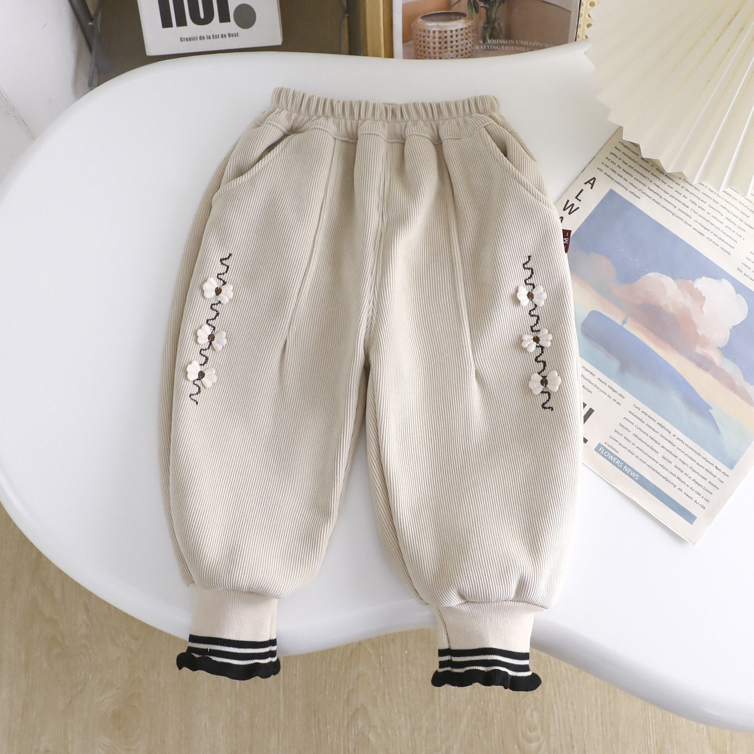여자 기모 두꺼운 바지 2024 가을/겨울 새로운 캐주얼 서양식 어린 소녀 따뜻한 바지를 입고 6스토어 가기