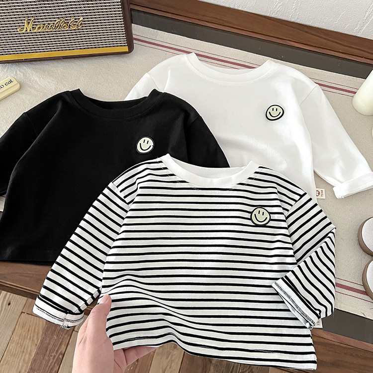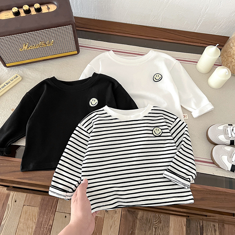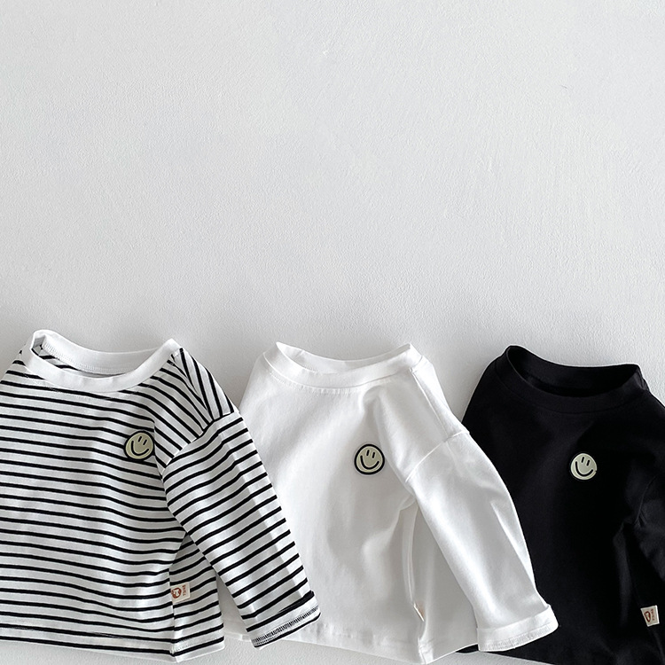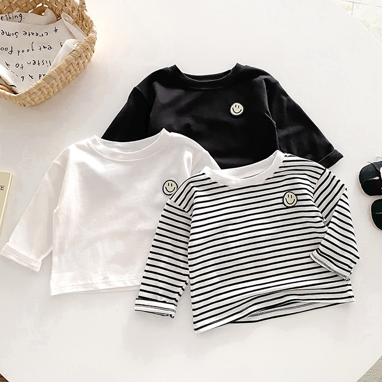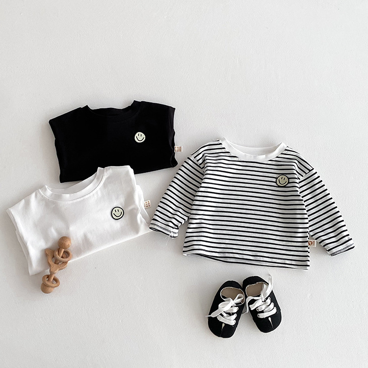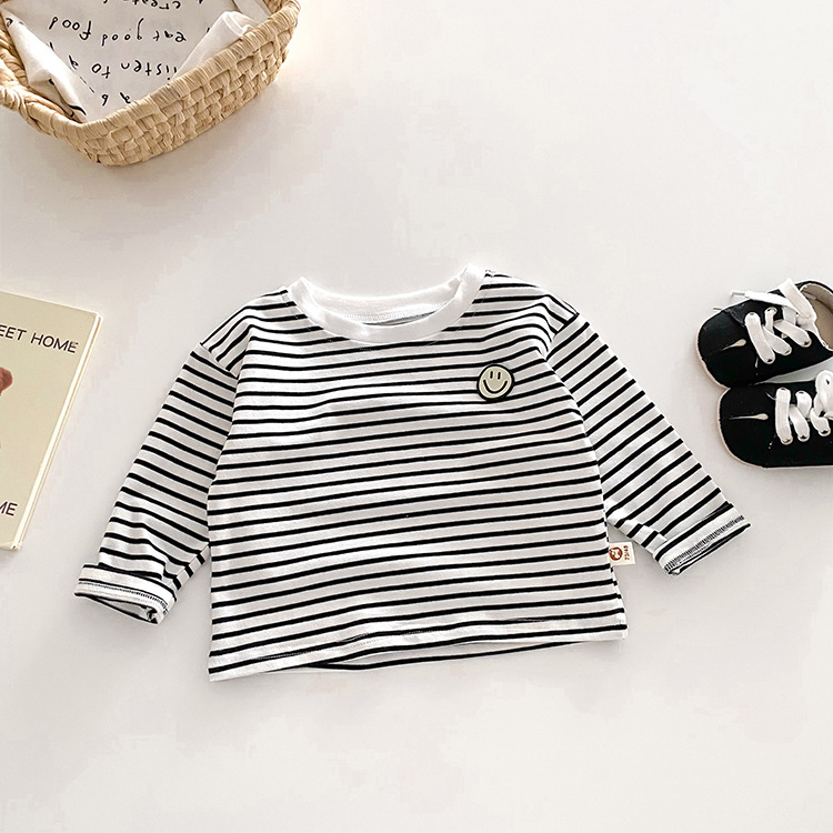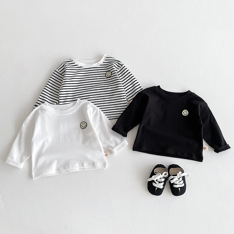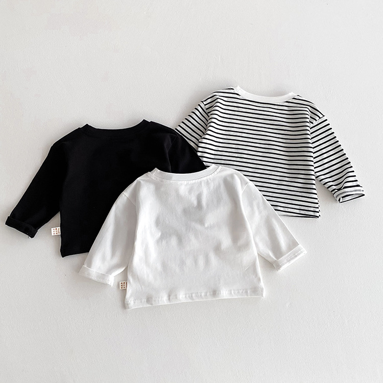 아동베이스 셔츠 봄과 가을 긴팔 티셔츠 소년 소녀 한국베이스 셔츠 아기 캐주얼 스트라이프 탑
