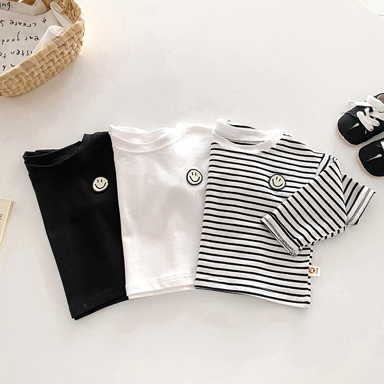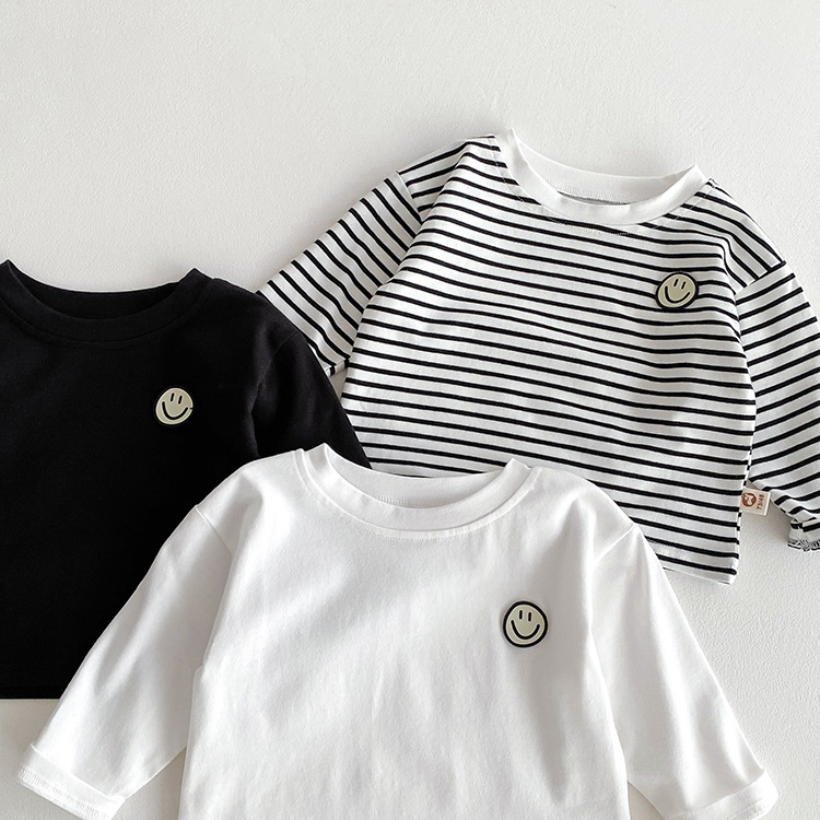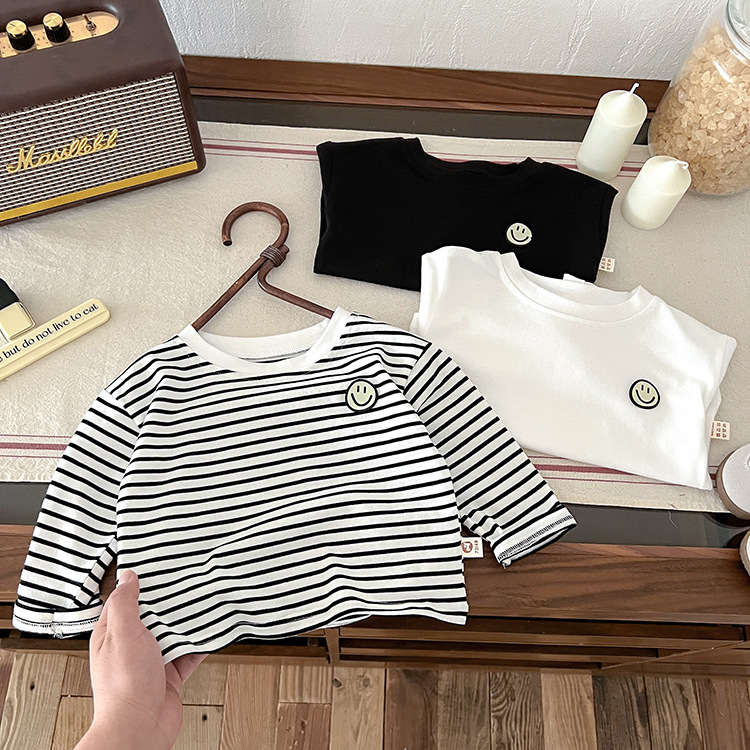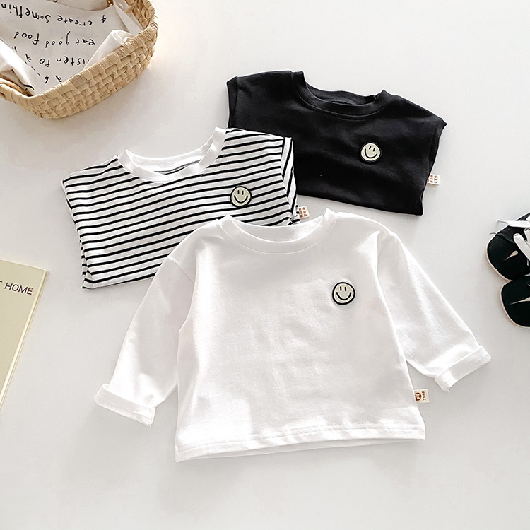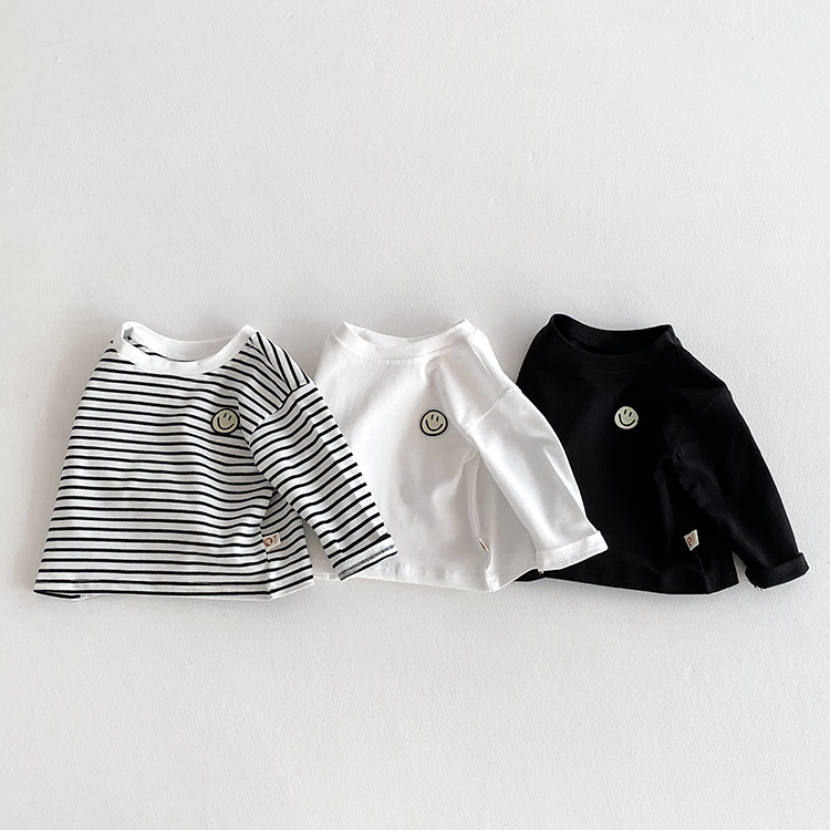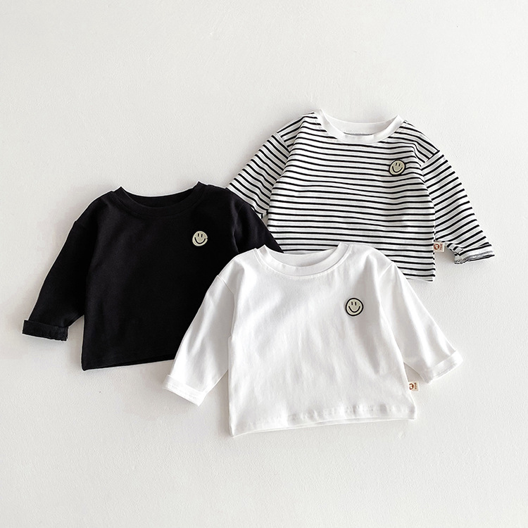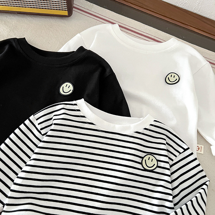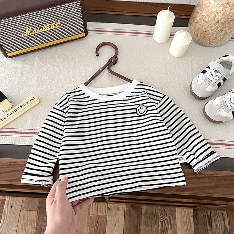 아동베이스 셔츠 봄과 가을 긴팔 티셔츠 소년 소녀 한국베이스 셔츠 아기 캐주얼 스트라이프 탑