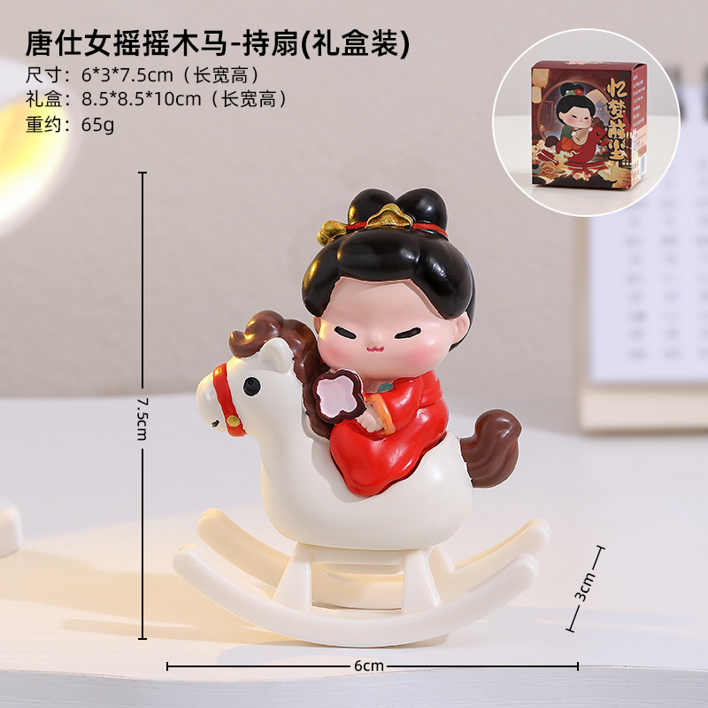 • 당나라 여성 흔들 목마가 부채를 들고 있다