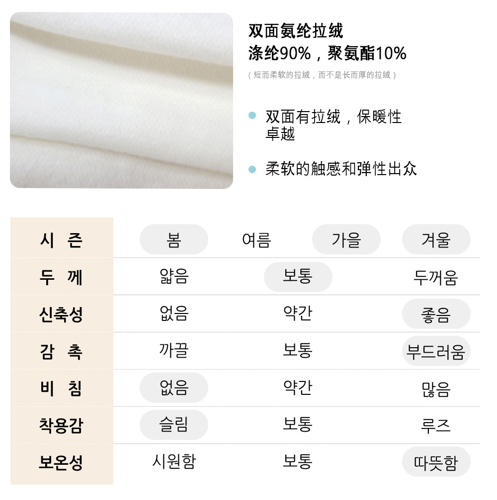 面料成分:双面拉绒 90%聚酯纤维+10%聚氨酯