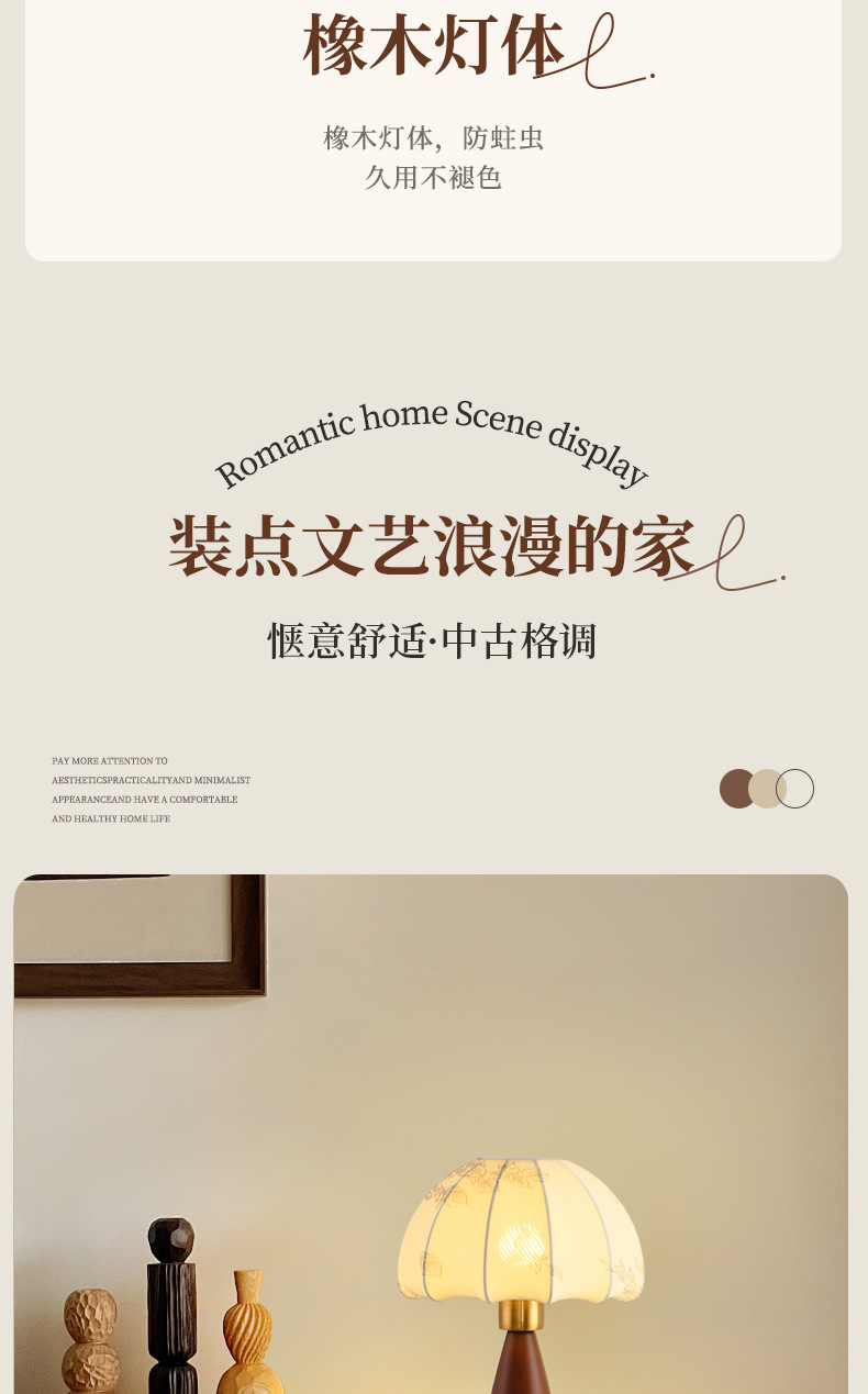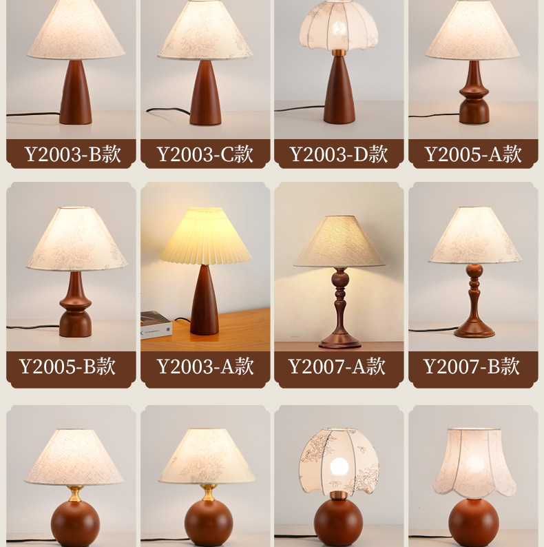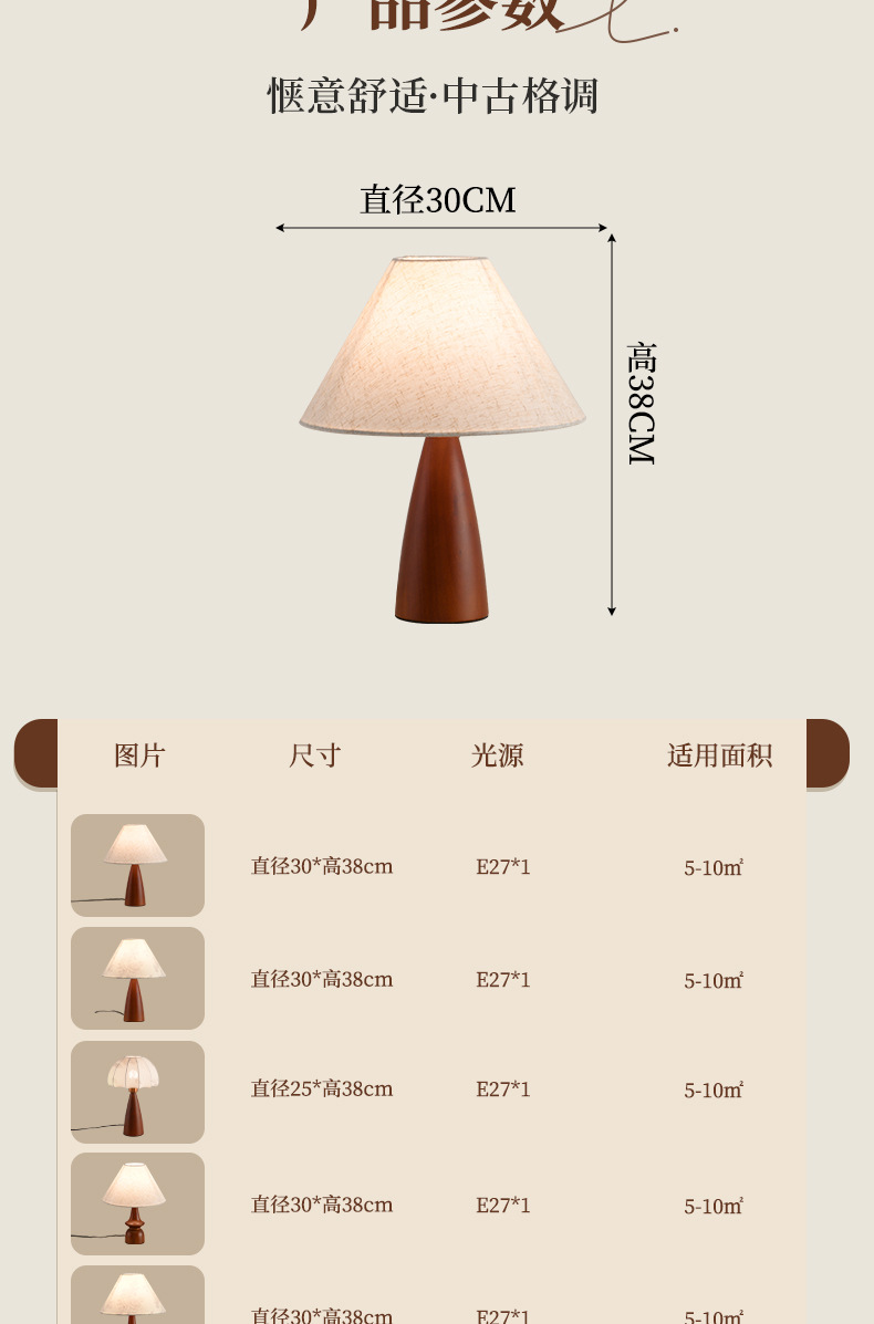 조용한 스타일의 단단한 나무 테이블 램프 거실 침실 침실 램프 복고풍 일본 스타일의 홈스테이 분위기 램프 중간 고대 연구 장식 램프스토어 가기