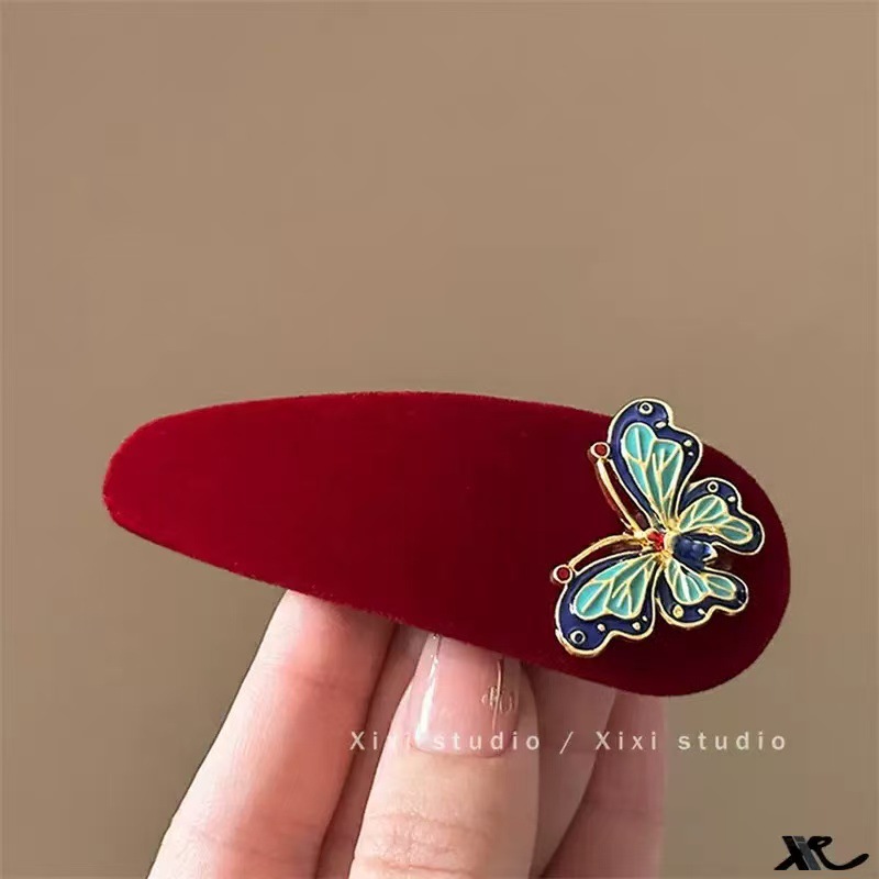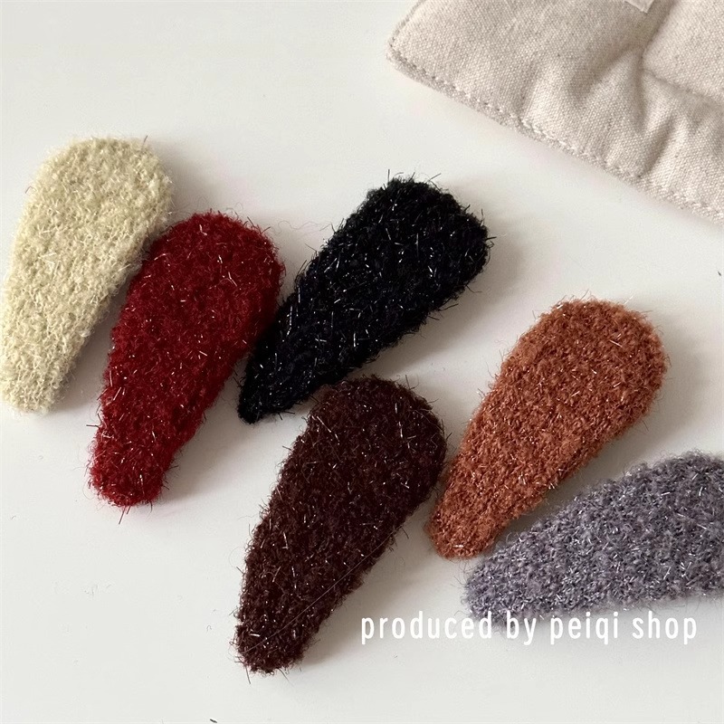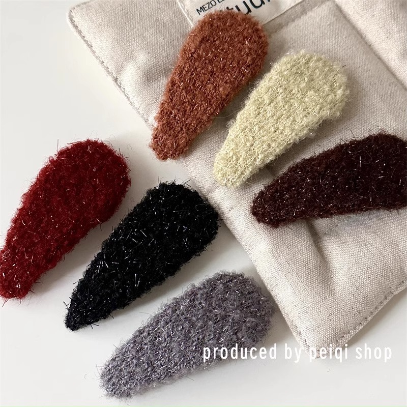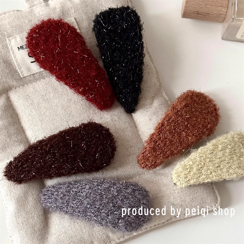 가을과 겨울 새로운 한국 달콤한 소녀 봉제 고급 플래시 시리즈 삼각형 헤어핀 뱅이 사이드 클립 깨진 헤어핀 헤드웨어