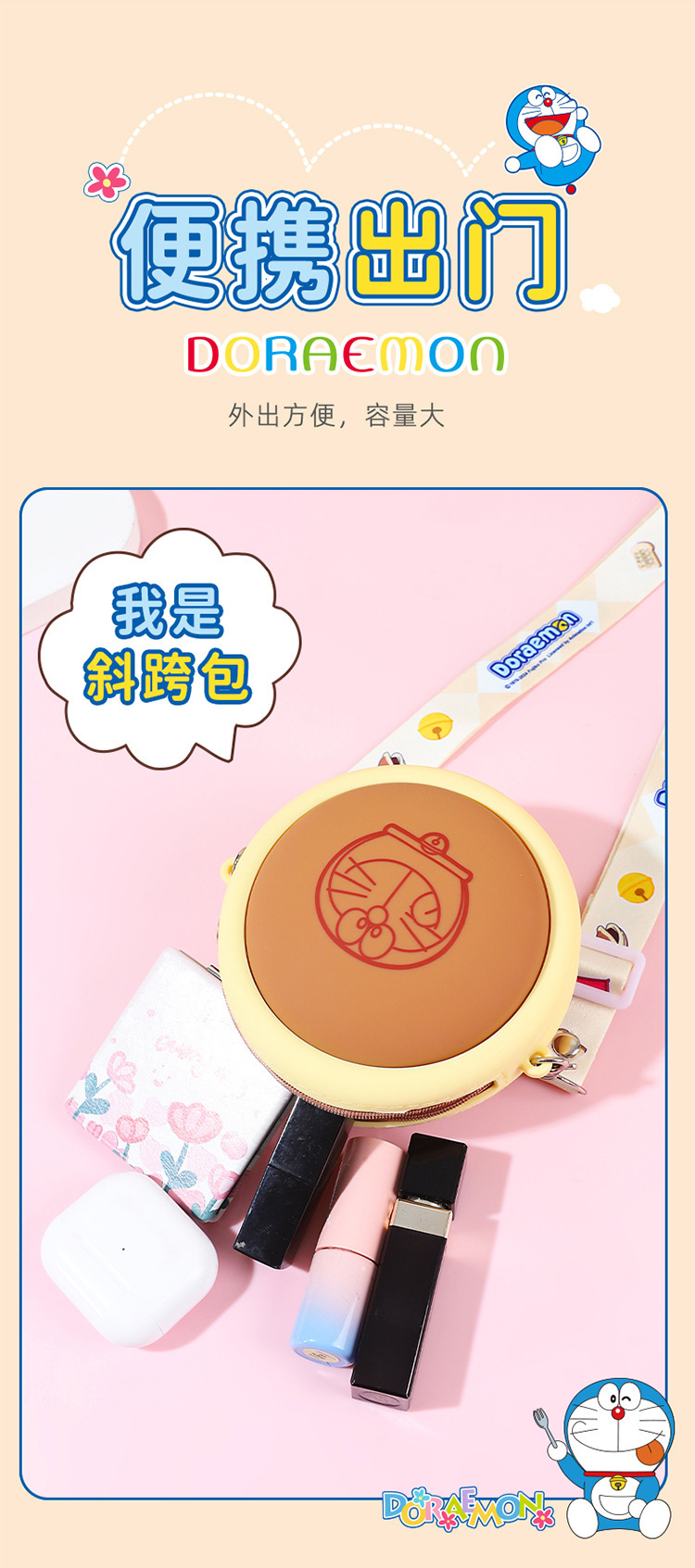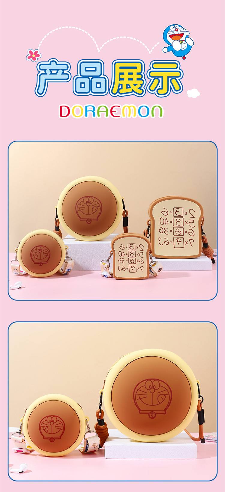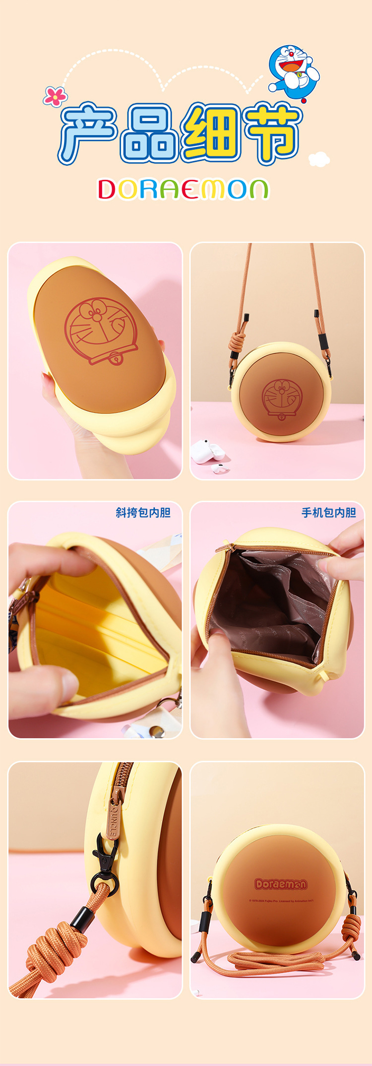 정품 공인 도라에몽 스테레오 코즈웨이 버닝 메모리 빵 휴대 전화 가방 어린이 귀여운 보관 어깨 가방스토어 가기