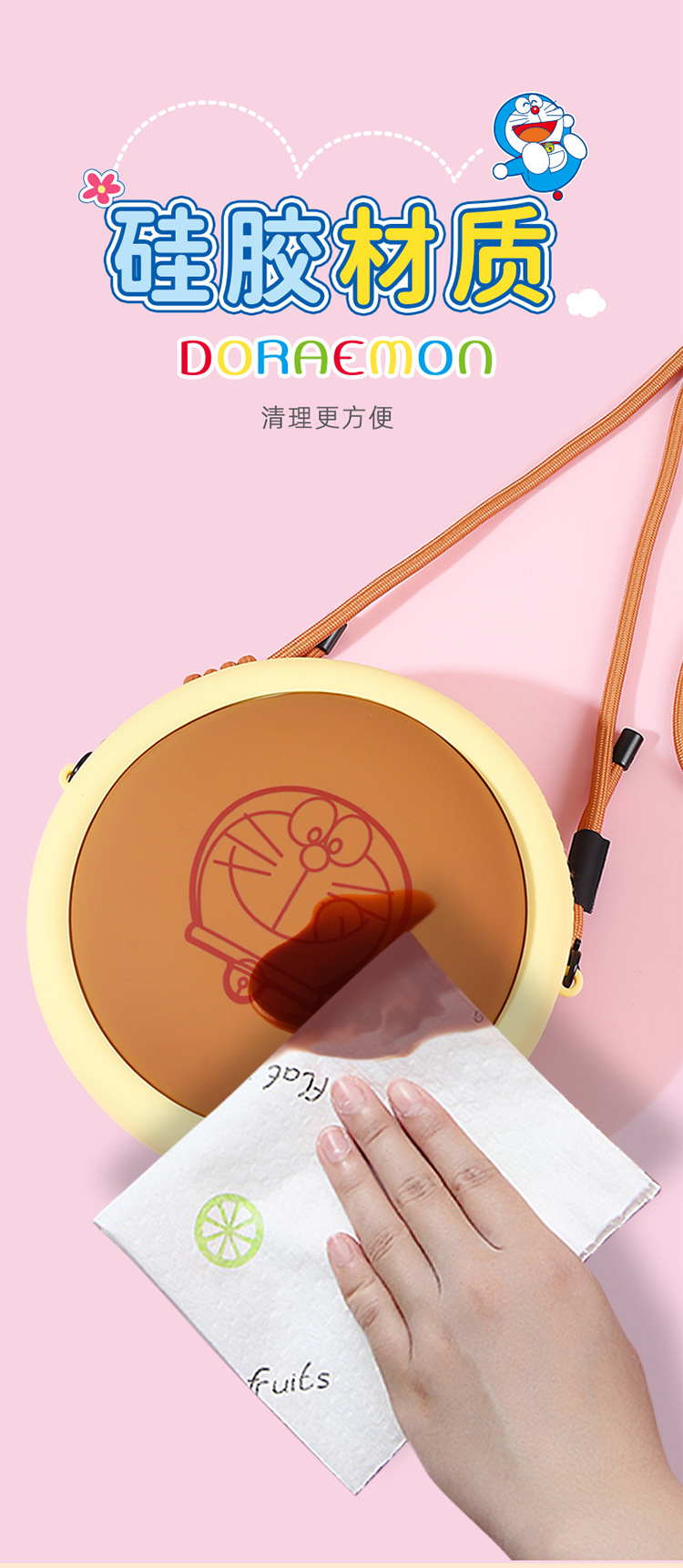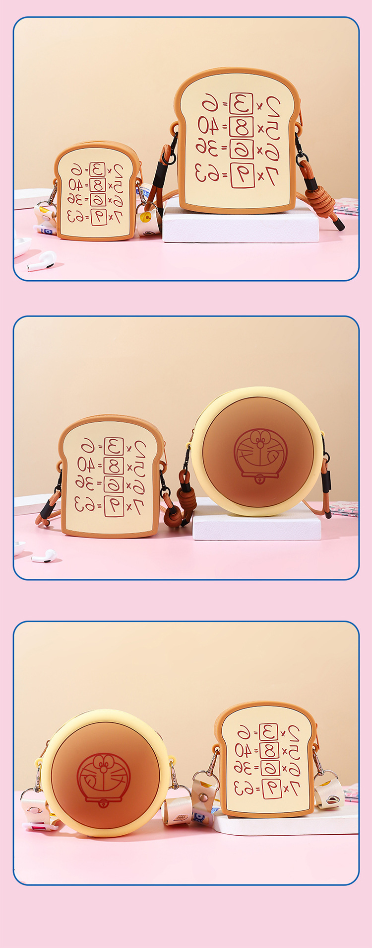 정품 공인 도라에몽 스테레오 코즈웨이 버닝 메모리 빵 휴대 전화 가방 어린이 귀여운 보관 어깨 가방