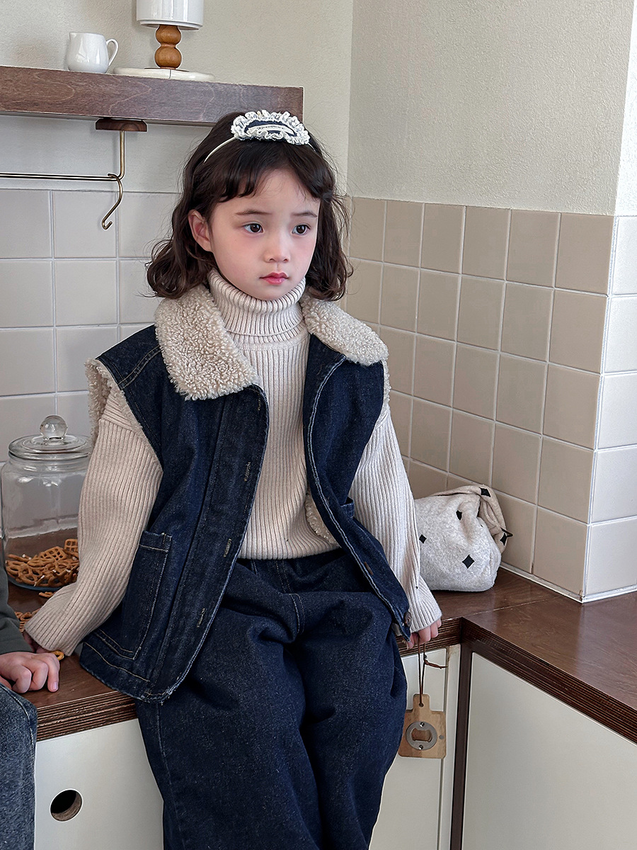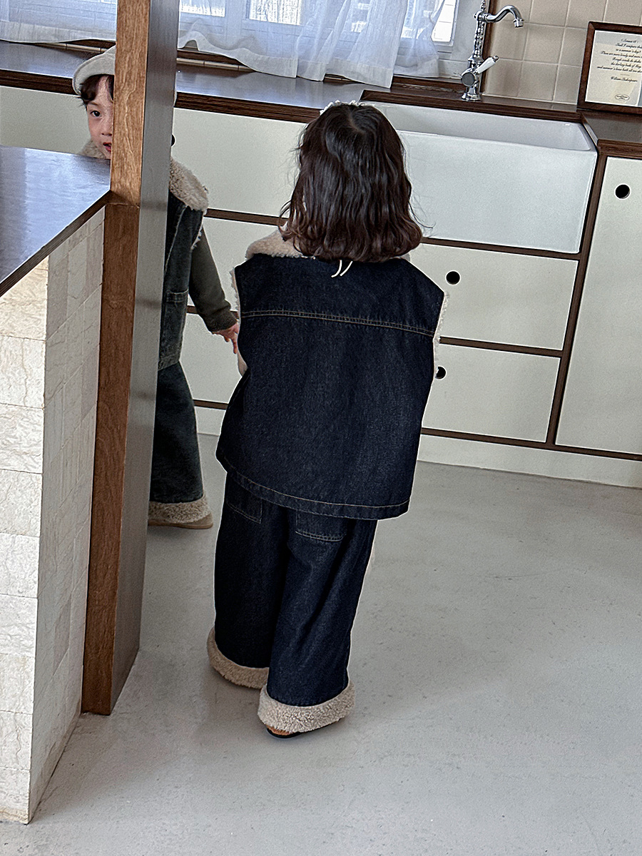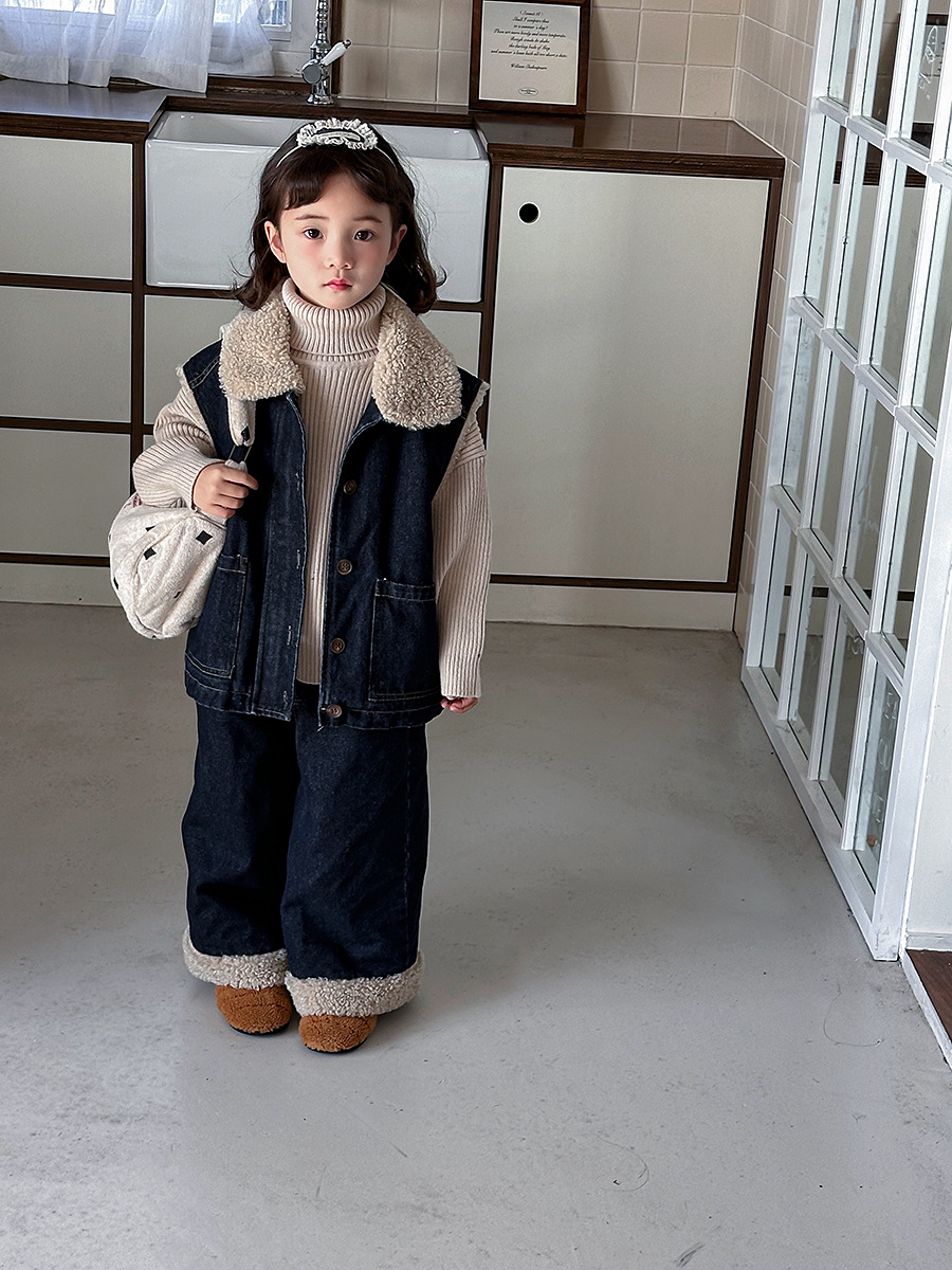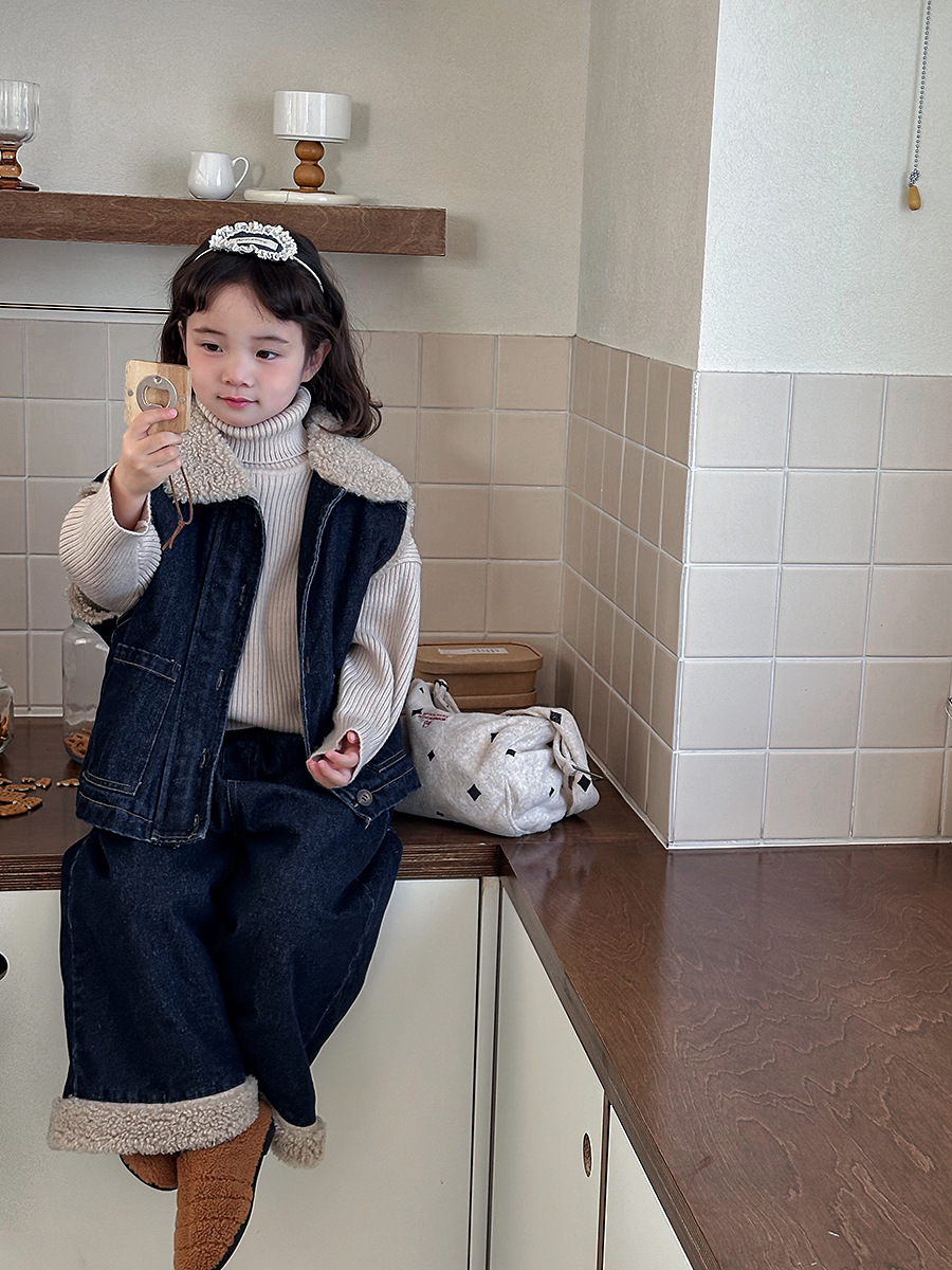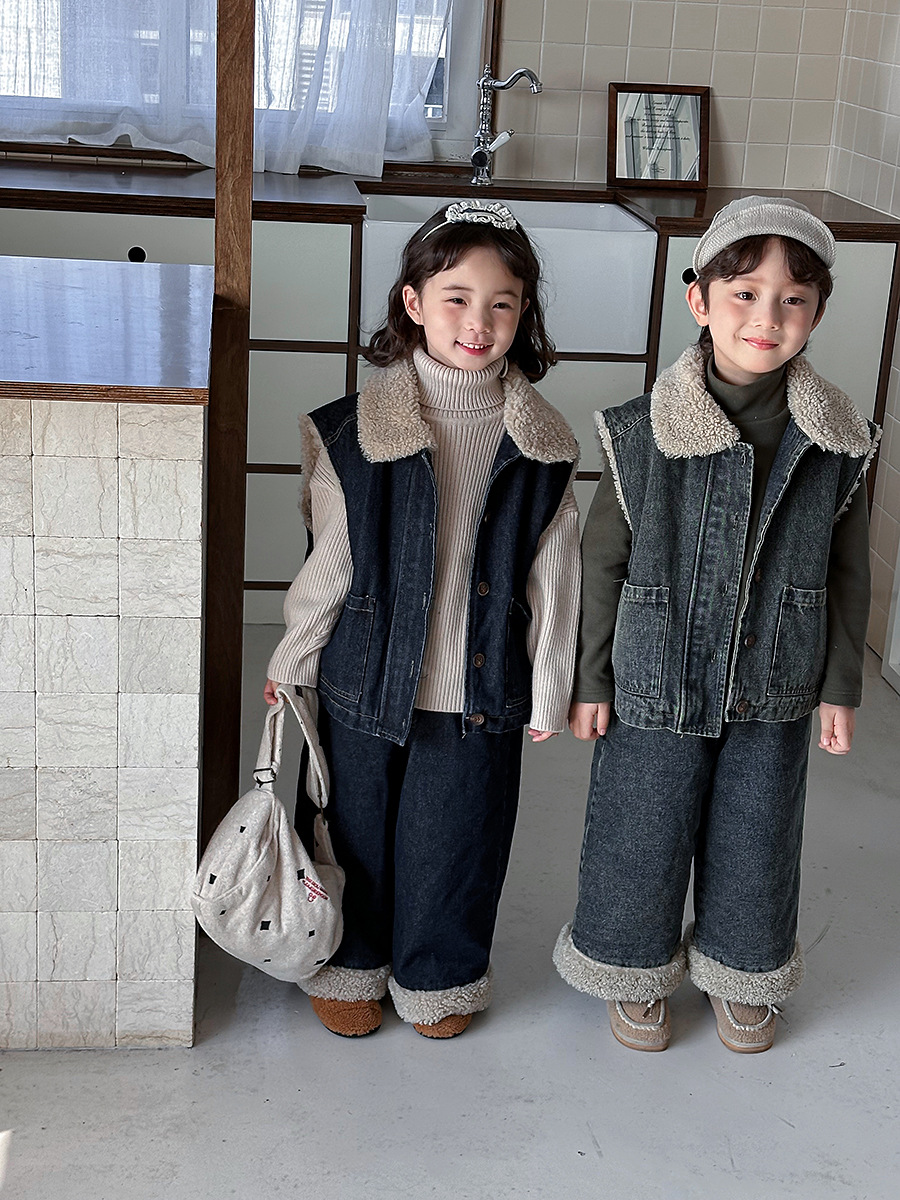 지아예 어린이 제품 2025 남아용 겨울 양털 데님 조끼 코트 중소형 어린이용 두꺼운 와이드 팬츠 투피스 세트스토어 가기