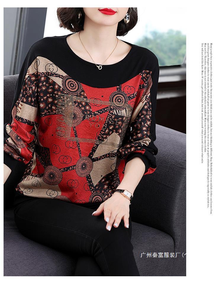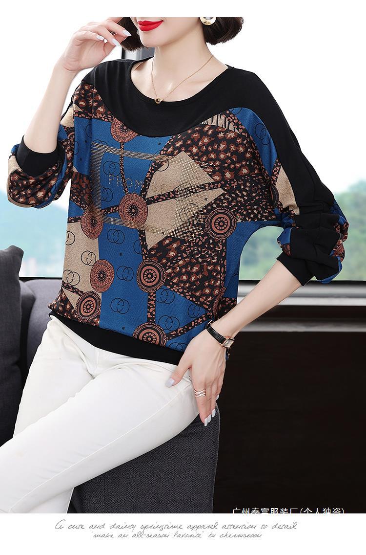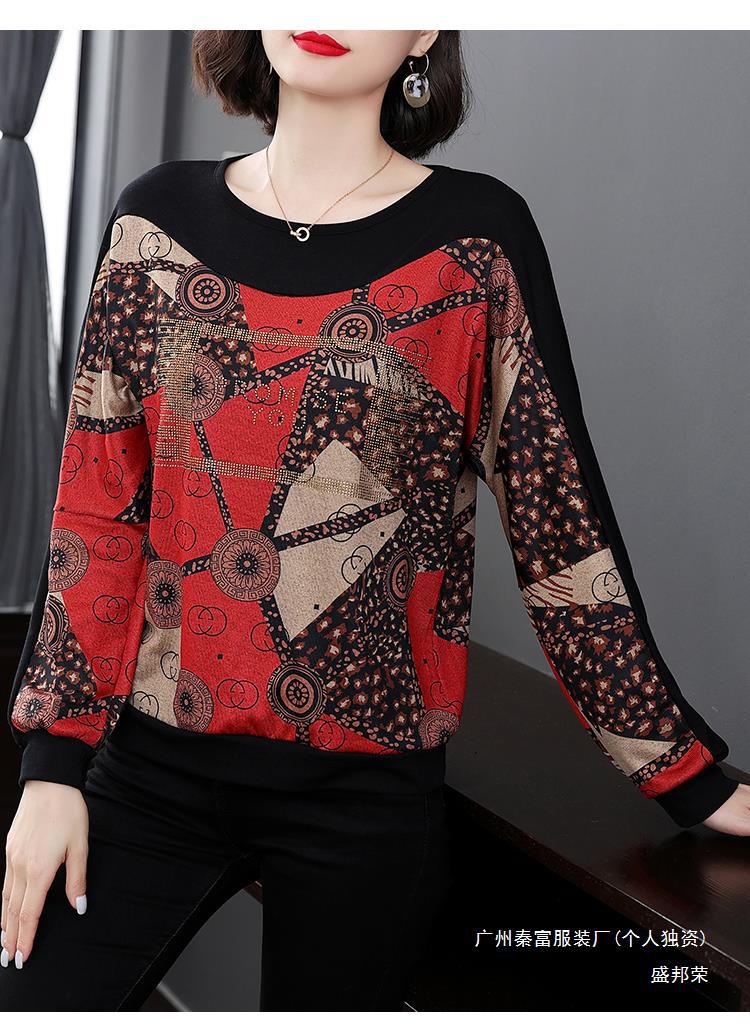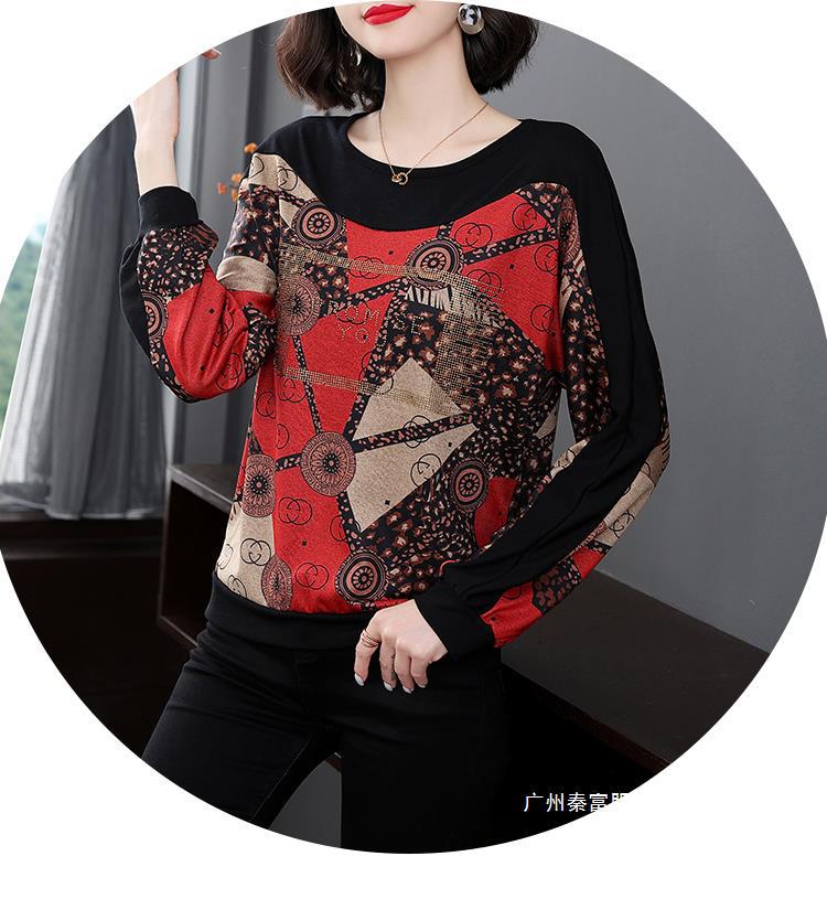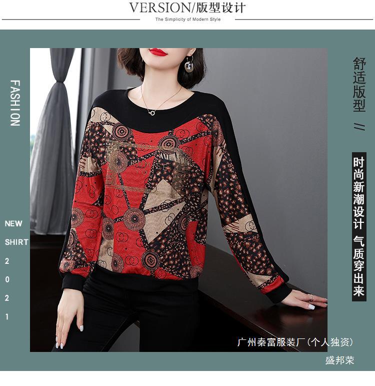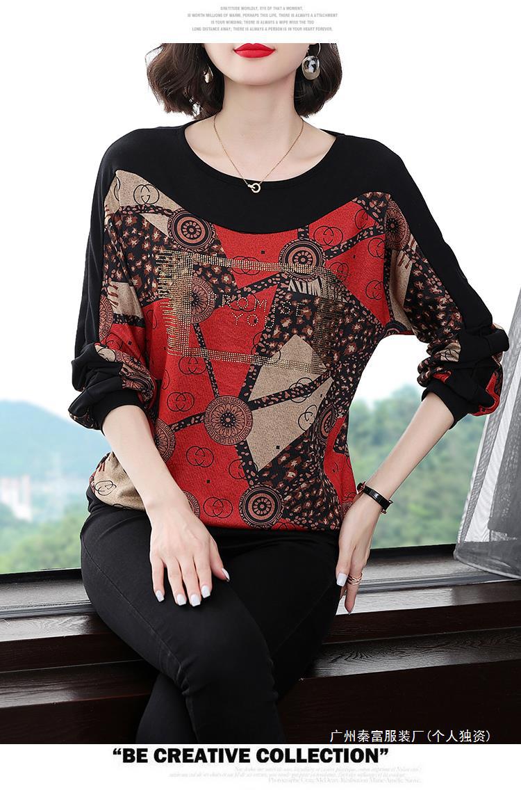 벨리 커버 티셔츠 여성 어머니의 긴 소매 플러스 사이즈 베이스 셔츠 봄과 가을 서양식 새 느슨한 해 버건디 탑스토어 가기
