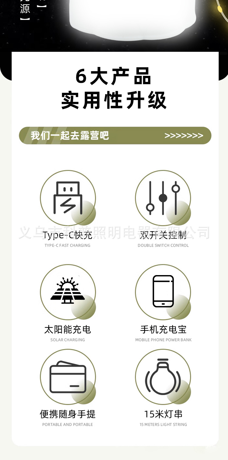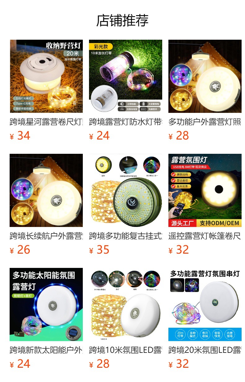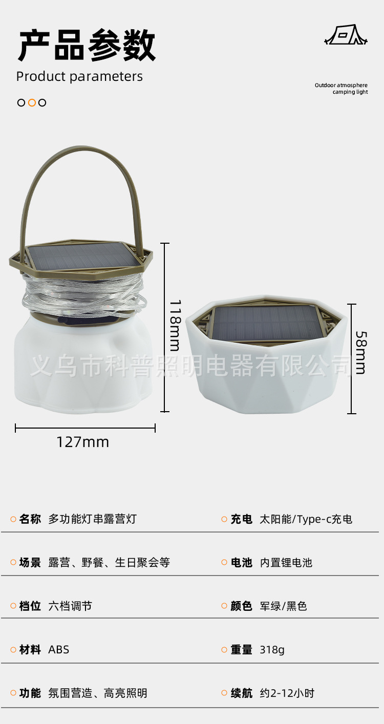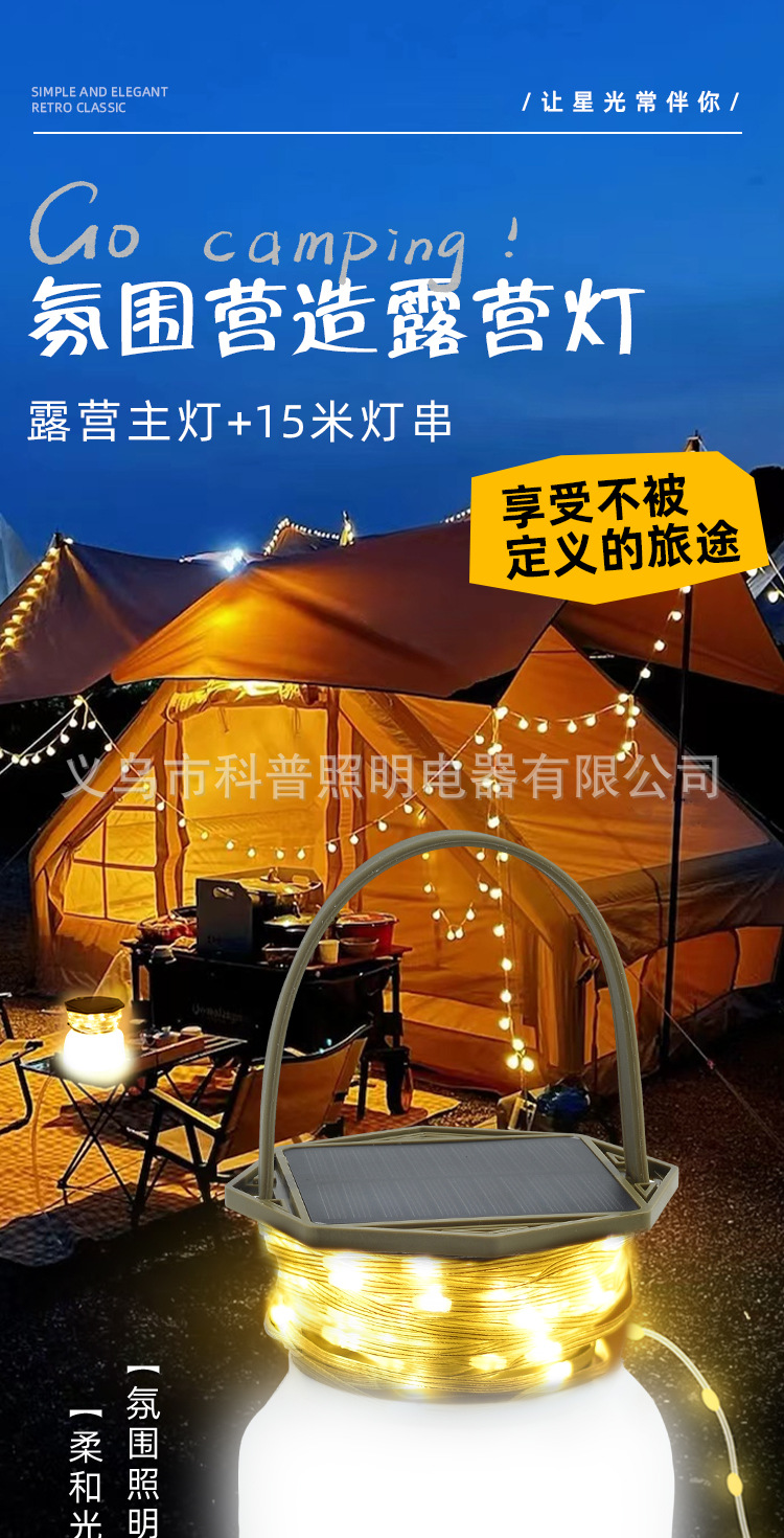 국경 간 새로운 태양 야외 조명 캠핑 조명 테이프 측정 저장 LED 캠핑 조명 텐트 비상 분위기스토어 가기