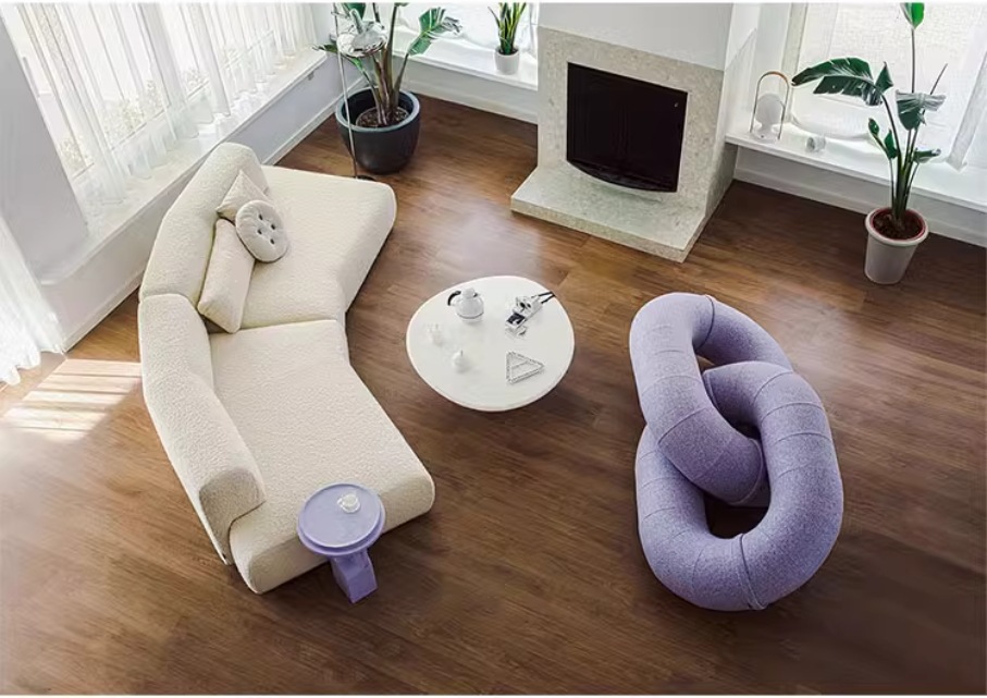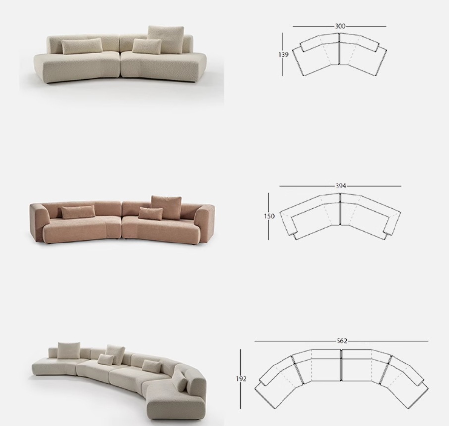 스페인에서 수입된 곡선형 소파 Sancal Duo 시리즈 모듈형 조합 소파는 다양한 패브릭으로 제공됩니다.