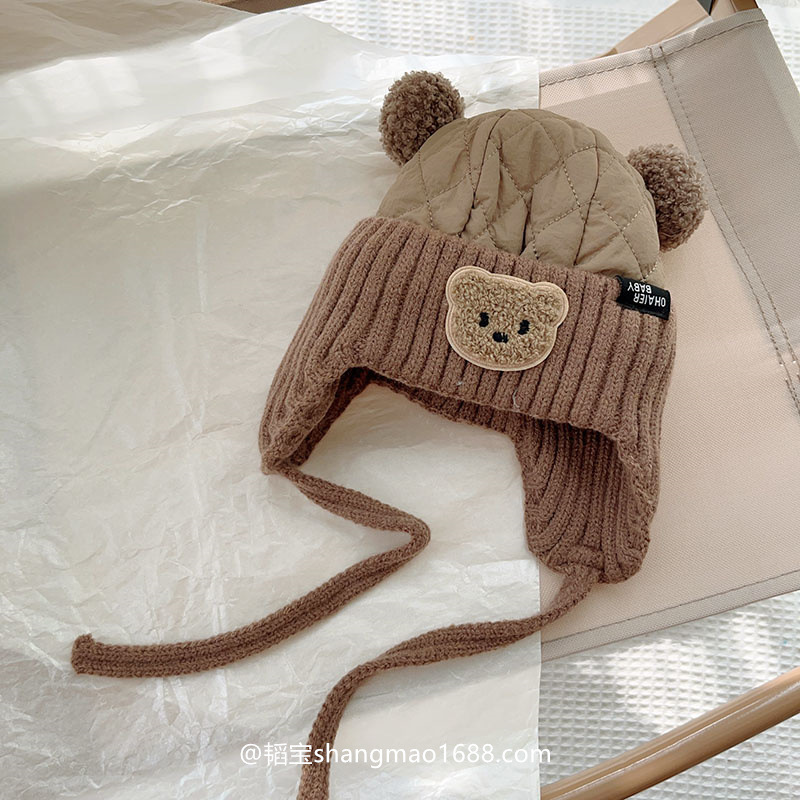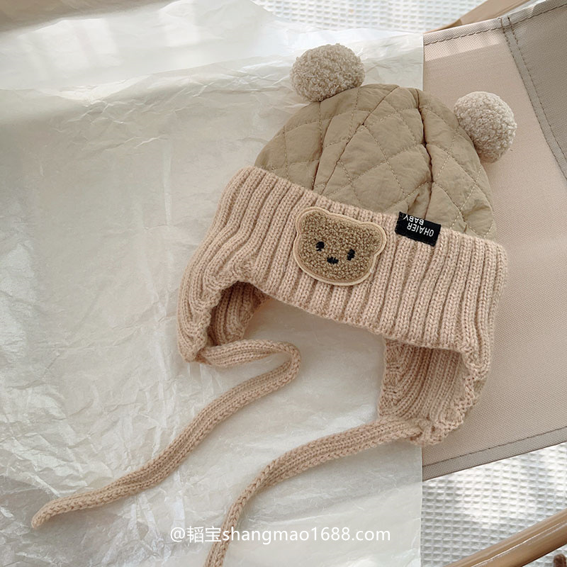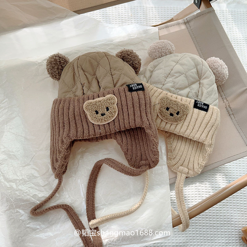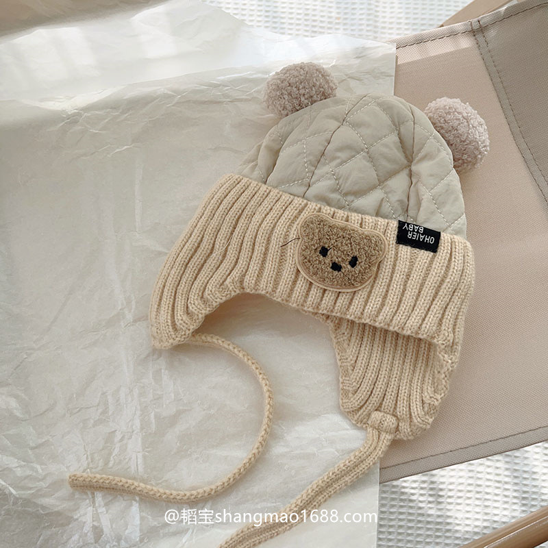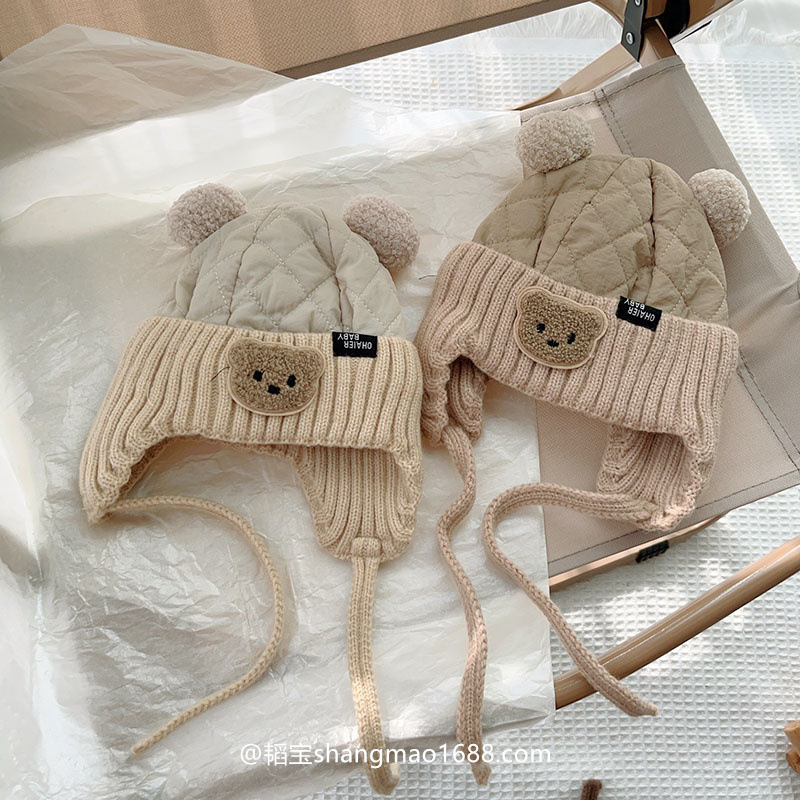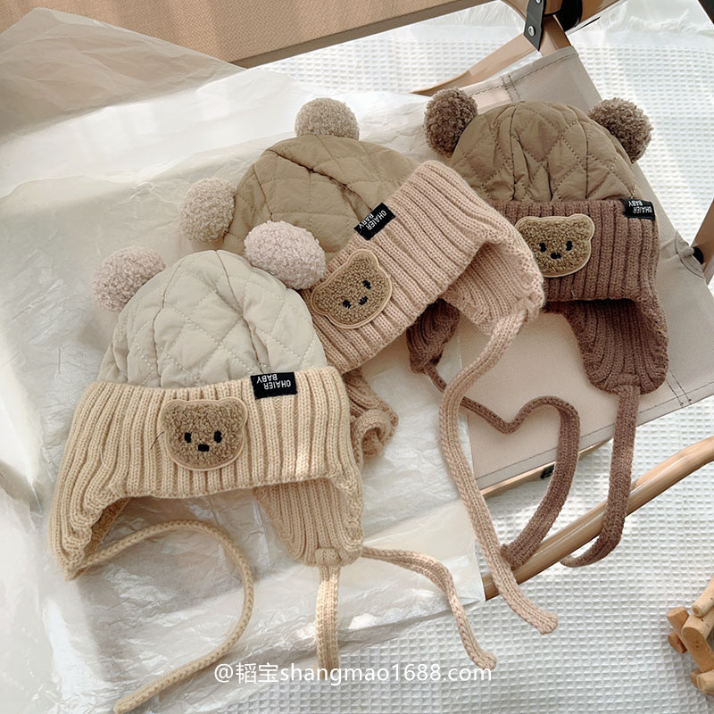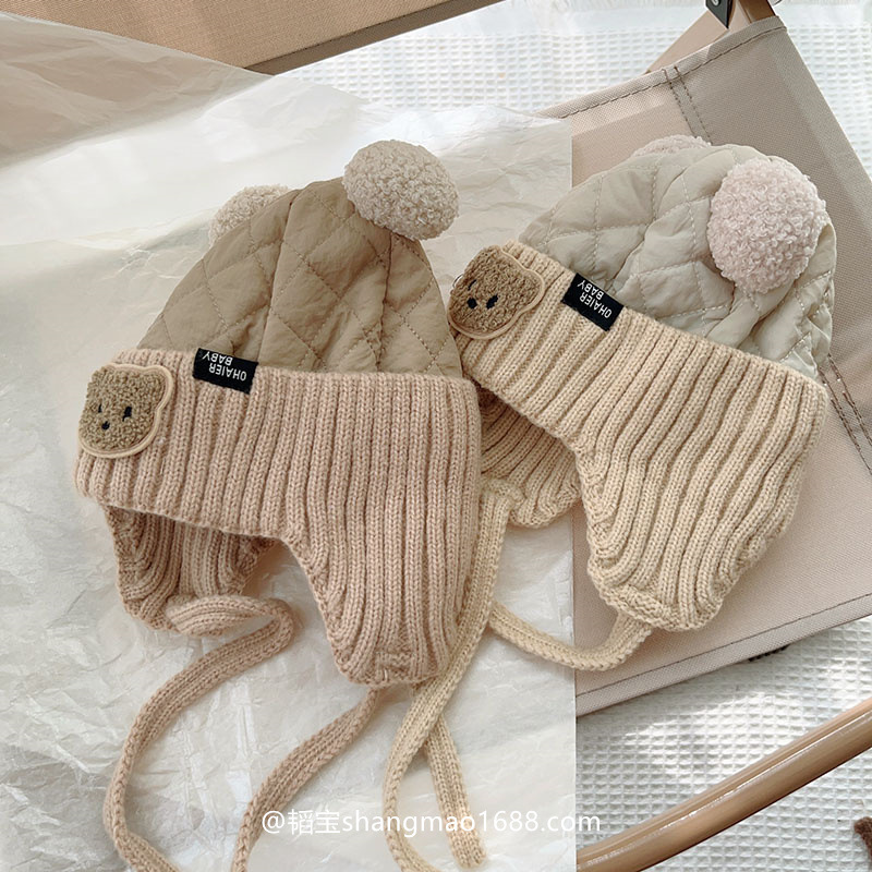 아기의 귀여운 더블 볼면 패딩 된 가을과 겨울 두꺼운 아기 모자 남자와 여자의 겨울 따뜻한 방풍 레이 펑 모자 한국어스토어 가기