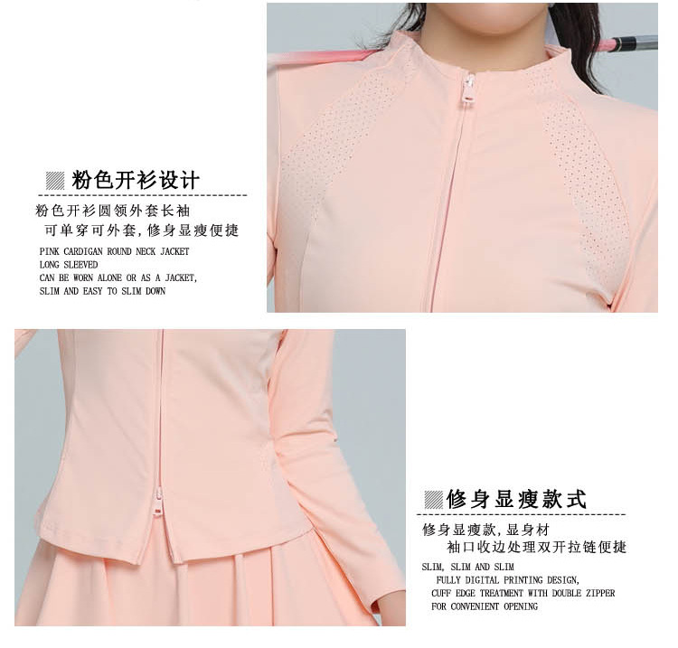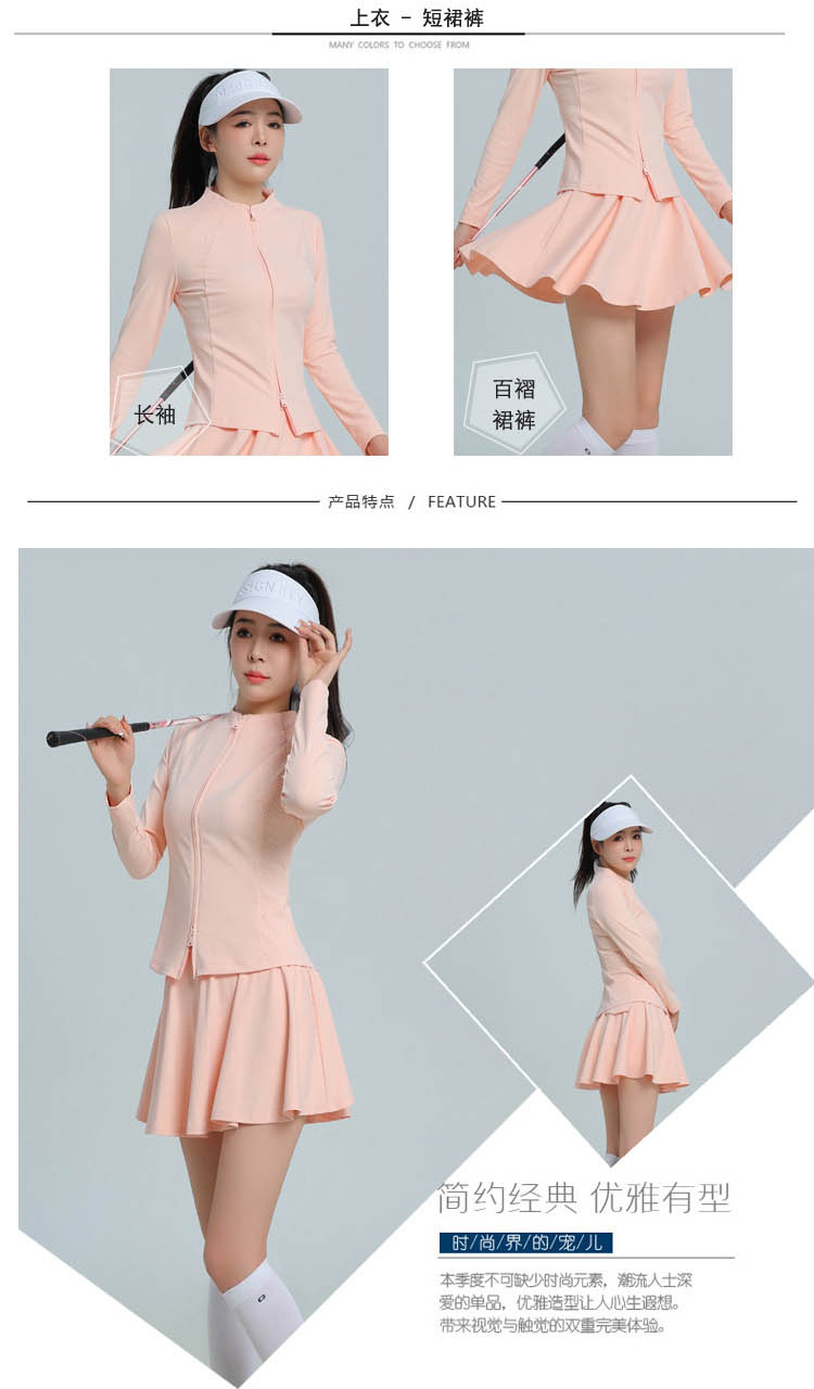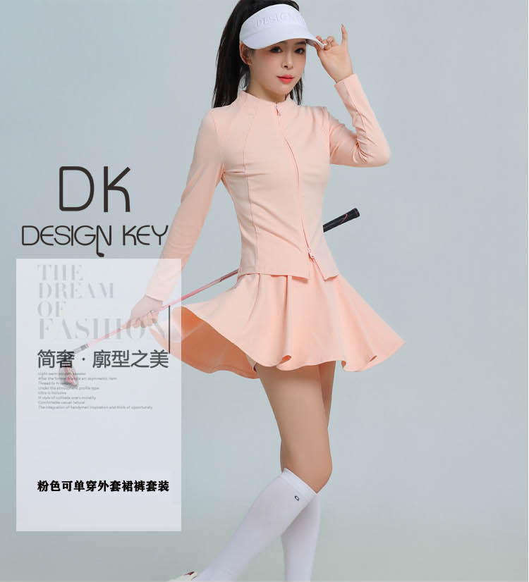 가을과 겨울 새로운 골프 여성 의류는 싱글 코트 방풍 스포츠 탑 의류 세트 옷 긴 소매 볼 의류를 착용 할 수 있습니다.