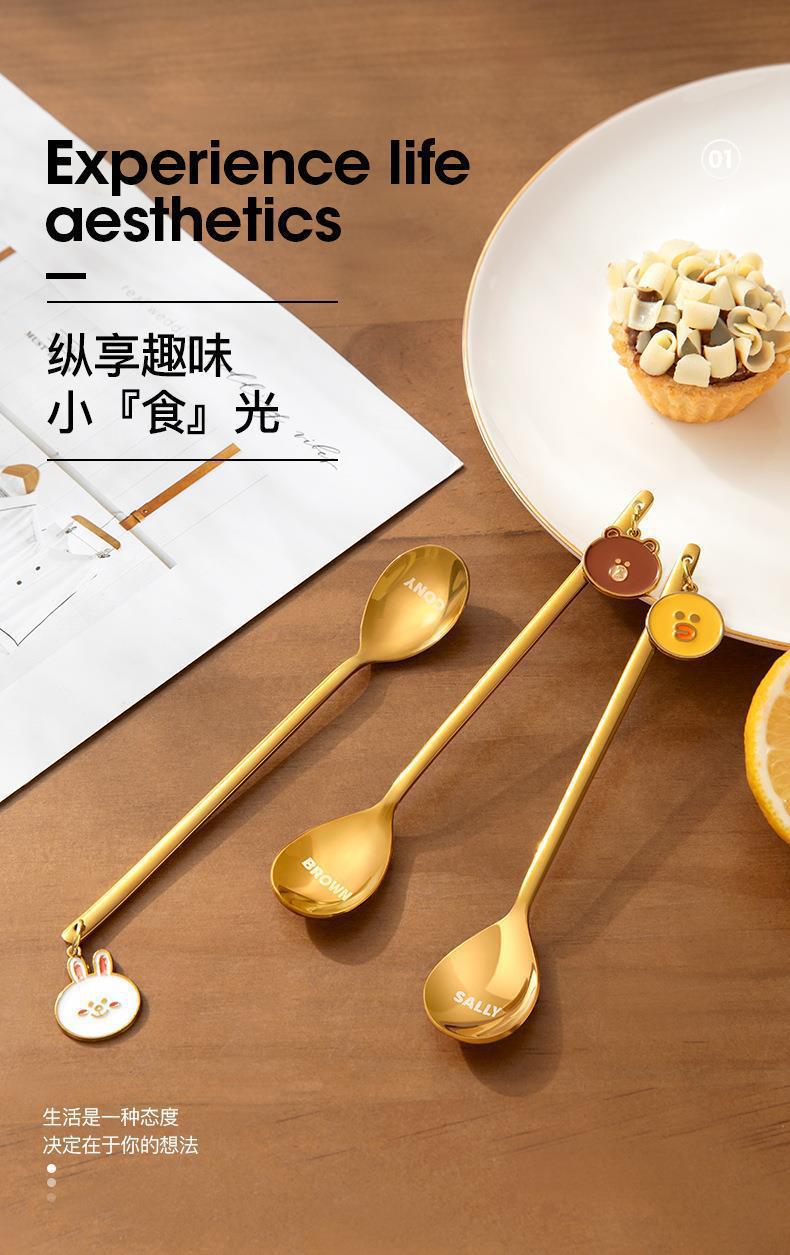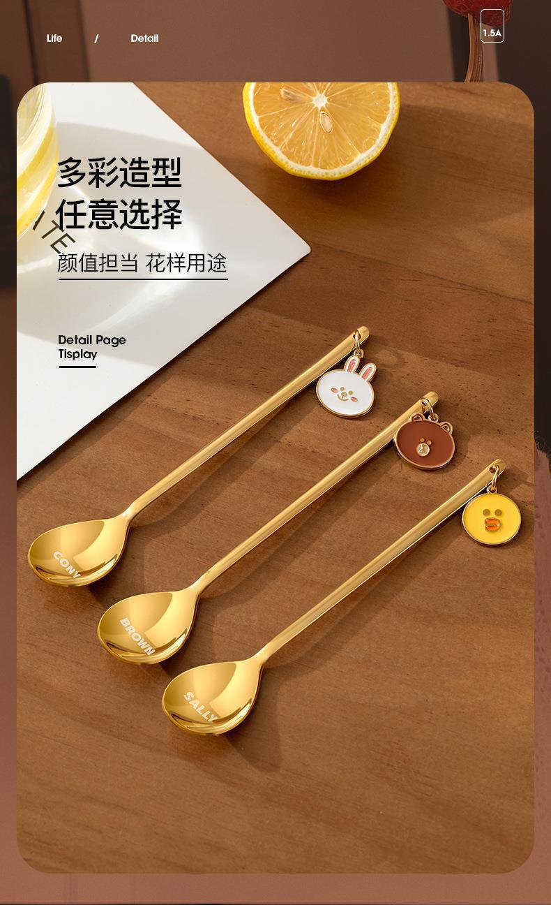 새로운 커피 스푼 304 스테인레스 스틸 스푼 가정용 절묘한 긴 핸들 스푼 오후 차 디저트 스푼 만화 혼합 숟가락