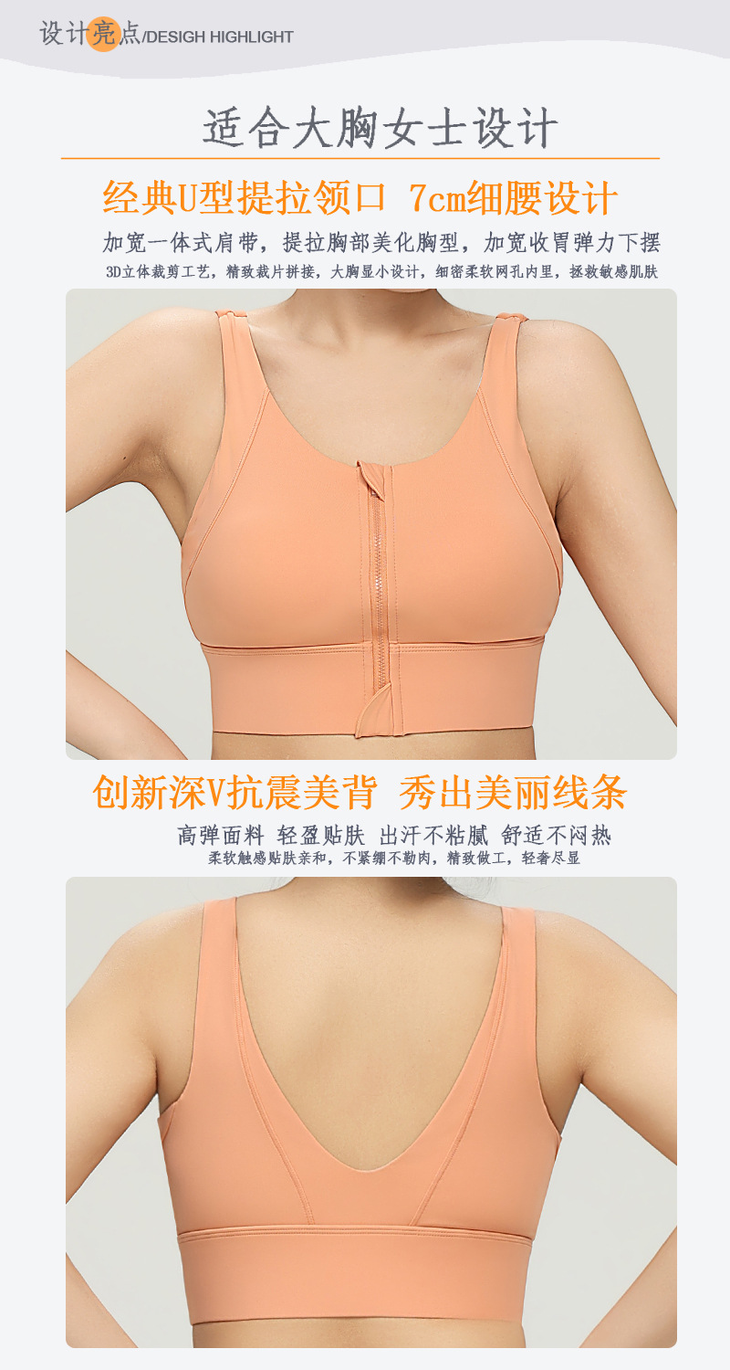 V-백 스포츠 속옷 고정 컵 Lengthen 요가 조끼 전면 지퍼 충격 방지 Auxilum 피트니스 브라스토어 가기