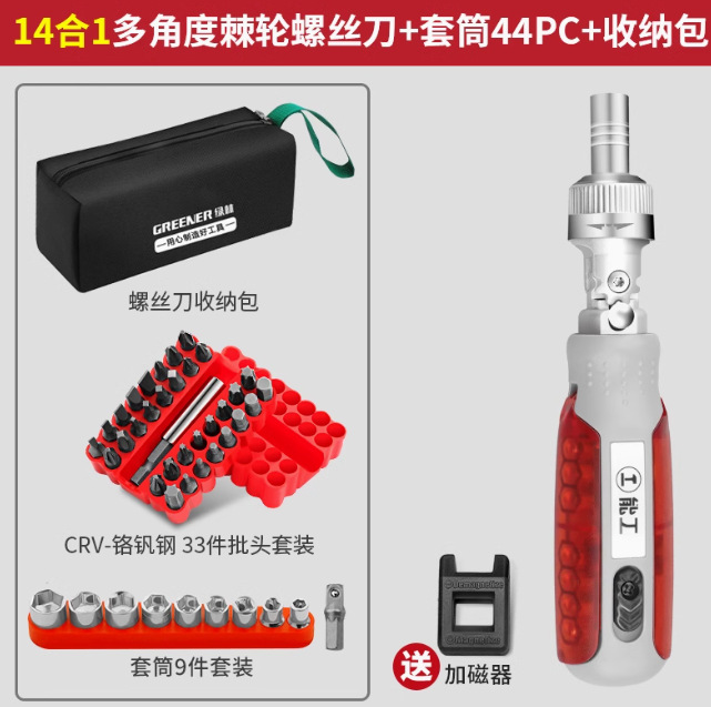 • [14-in-1 업그레이드된 항공기 모델] 멀티 앵글 래칫 + 소켓 비트 44pc(자석 포함)