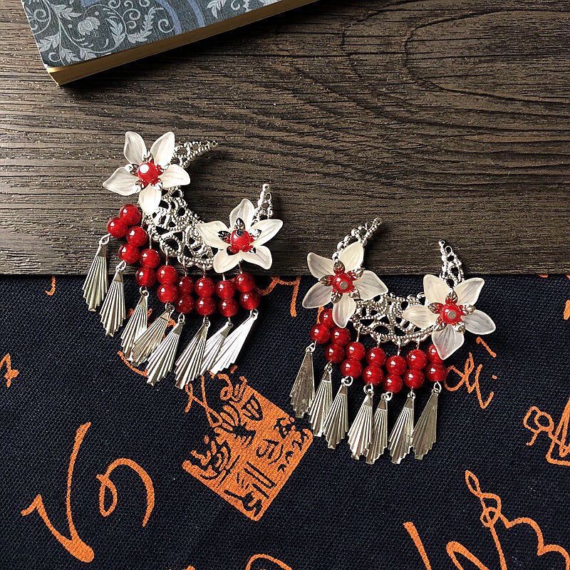 귀여운 골동품 귀걸이 민족 헤어 액세서리 실버 액세서리 술 머리 머리 꽃 초승달 댄스 헤어 액세서리스토어 가기