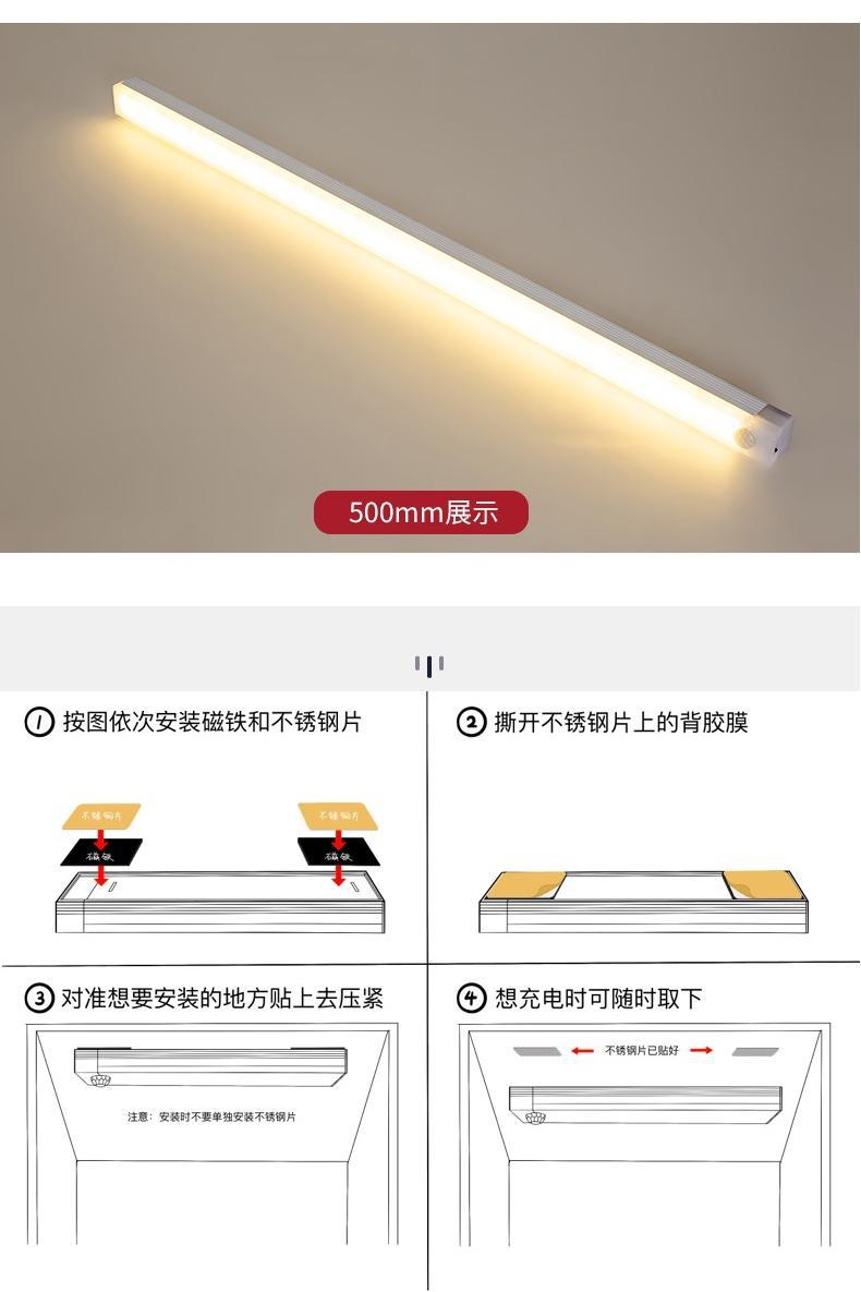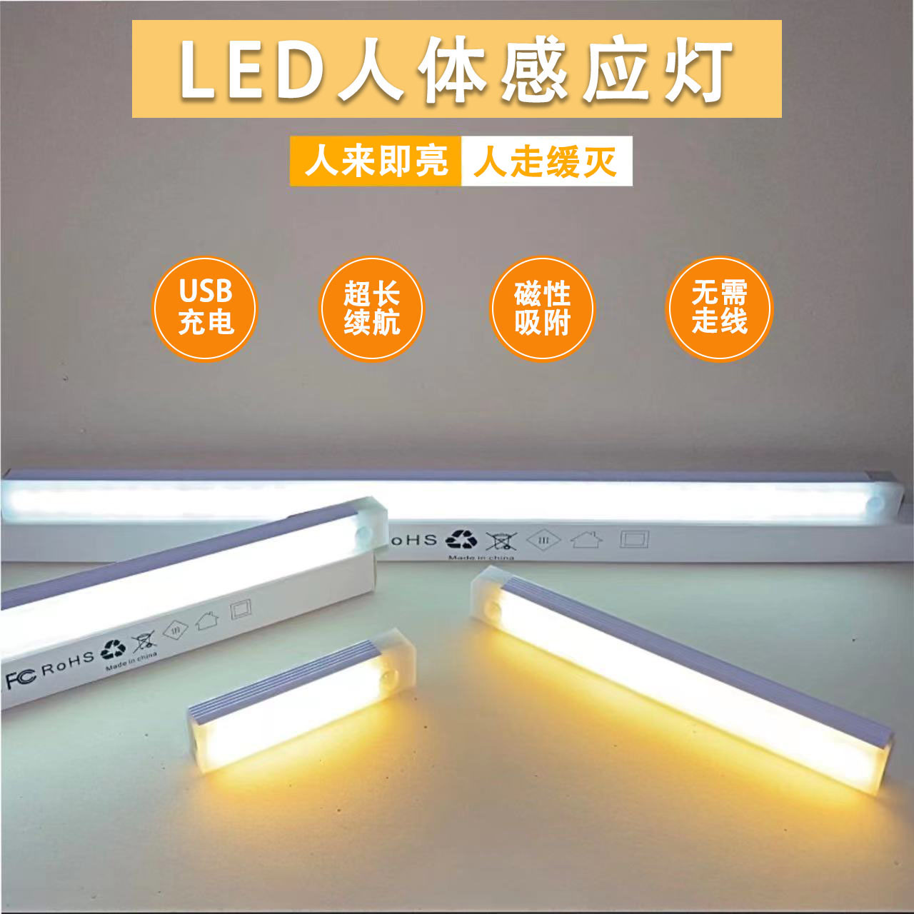 스마트 led 인체 유도 램프 긴 자기 옷장 와인 캐비닛 신발 캐비닛 통로 침대 옆 램프 usb 충전 야간 조명