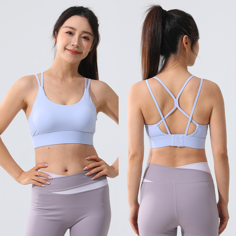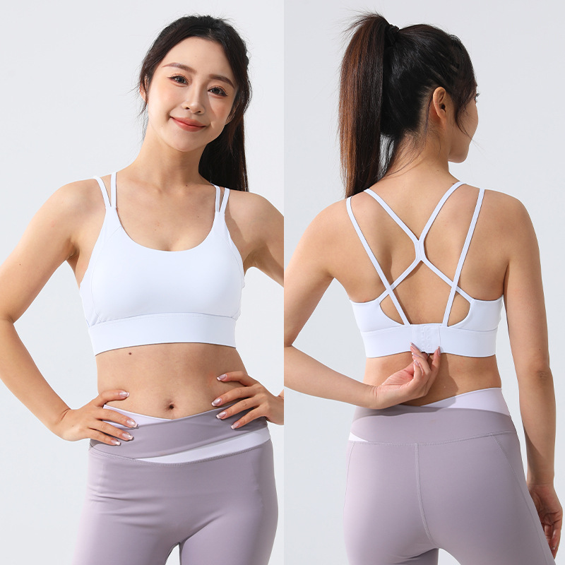 크로스 뷰티 백 스포츠 속옷 충격 방지 요가 스포츠 브라 피트니스 조끼 세미 고정 컵 원피스스토어 가기