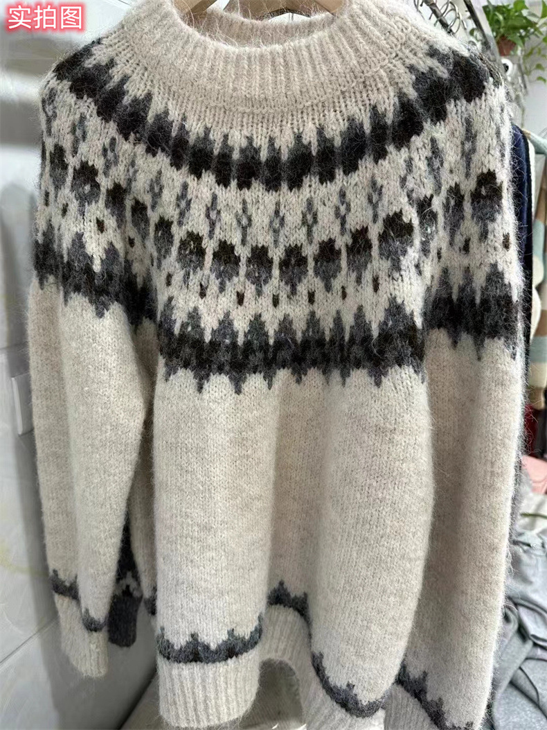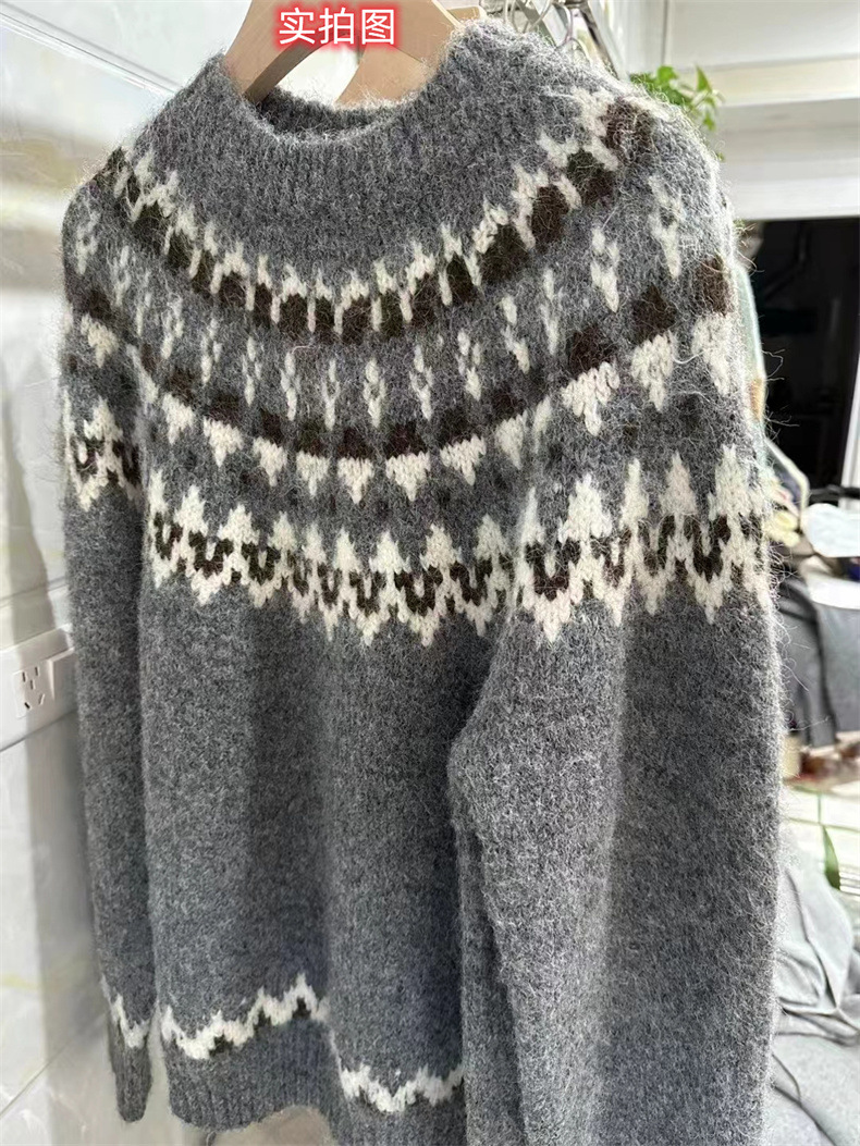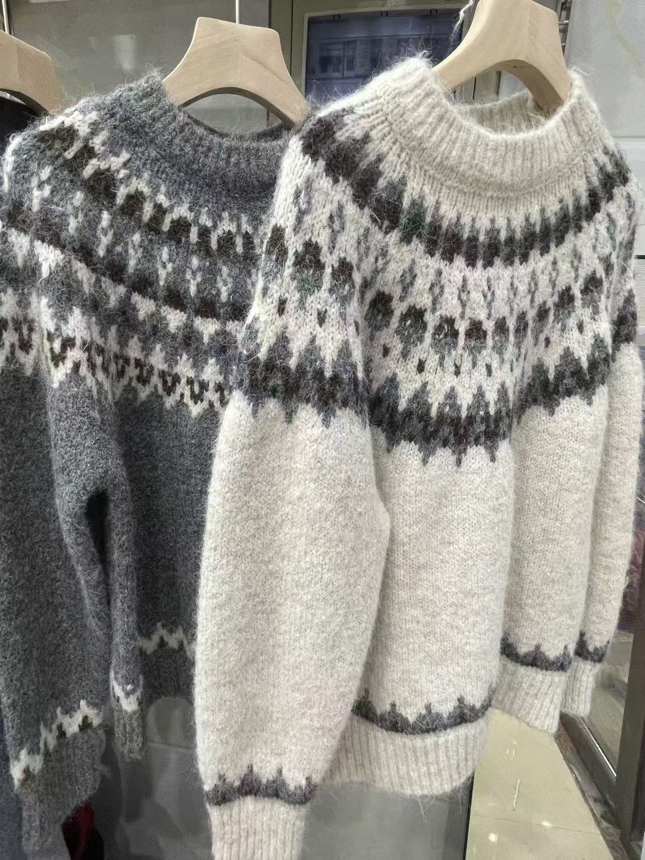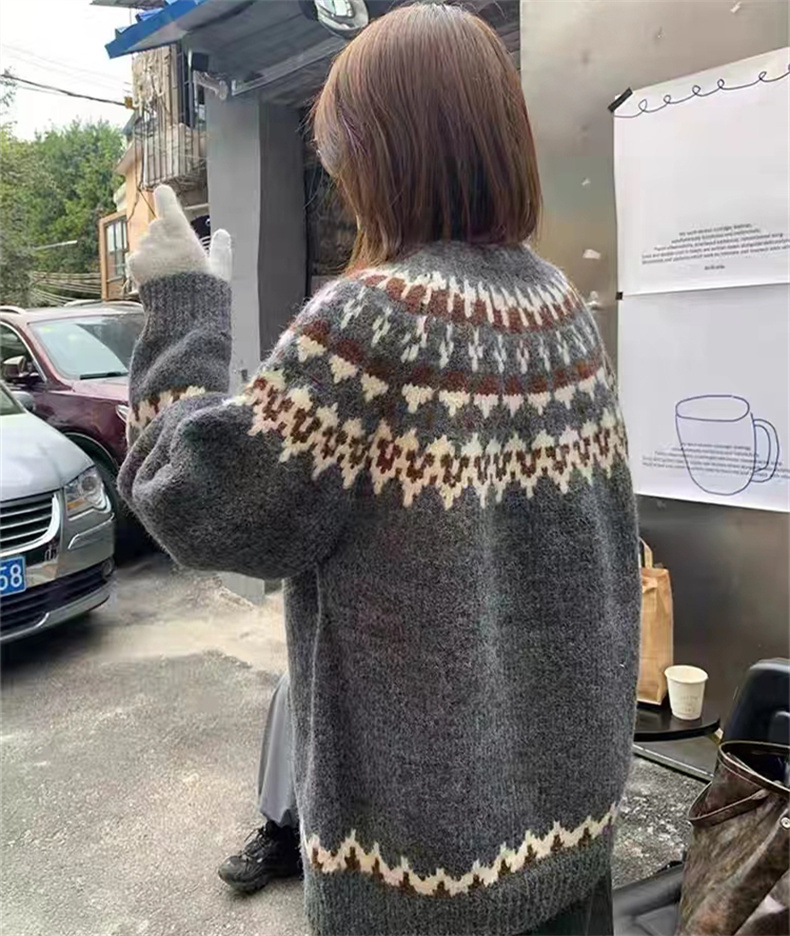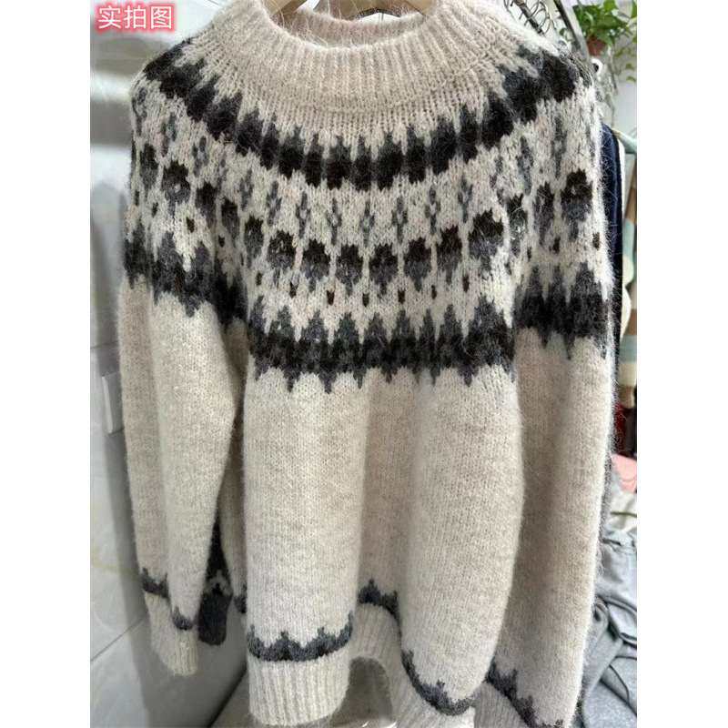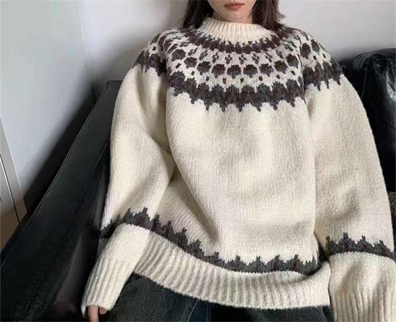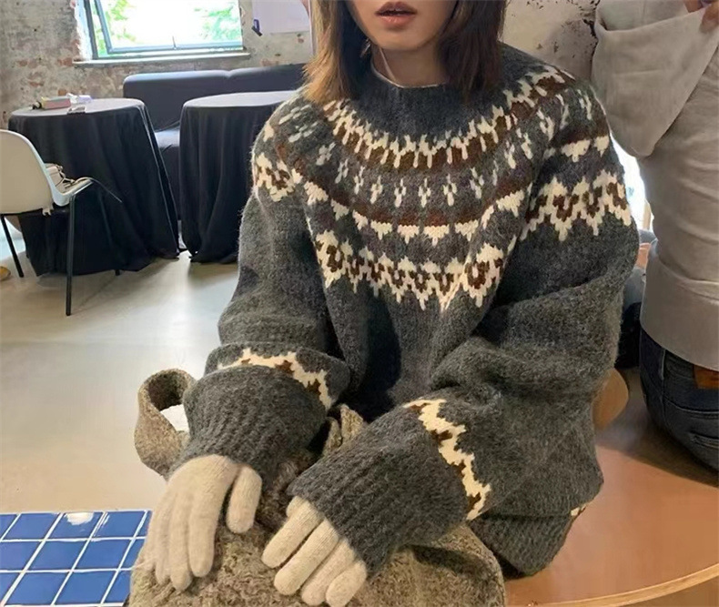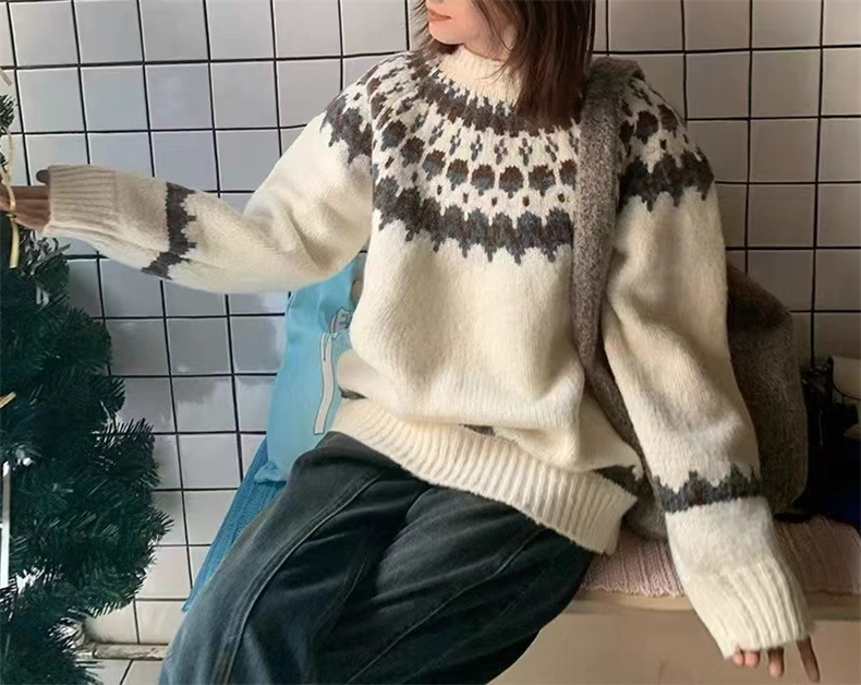 YUNSHU Fair Isle 부드럽고 밀랍 같은 느슨한 캐주얼 스웨터 여성 가을, 겨울 게으른 스타일 두꺼운 알파카 콘트라스트 컬러 스웨터스토어 가기