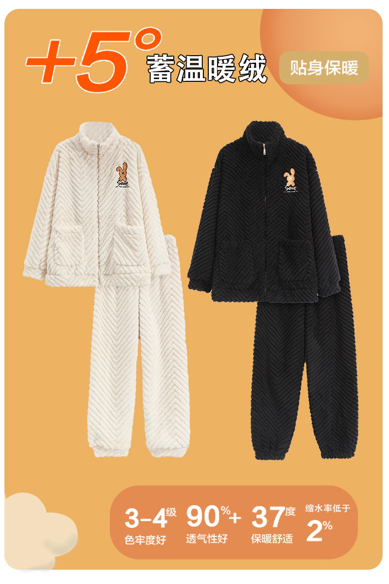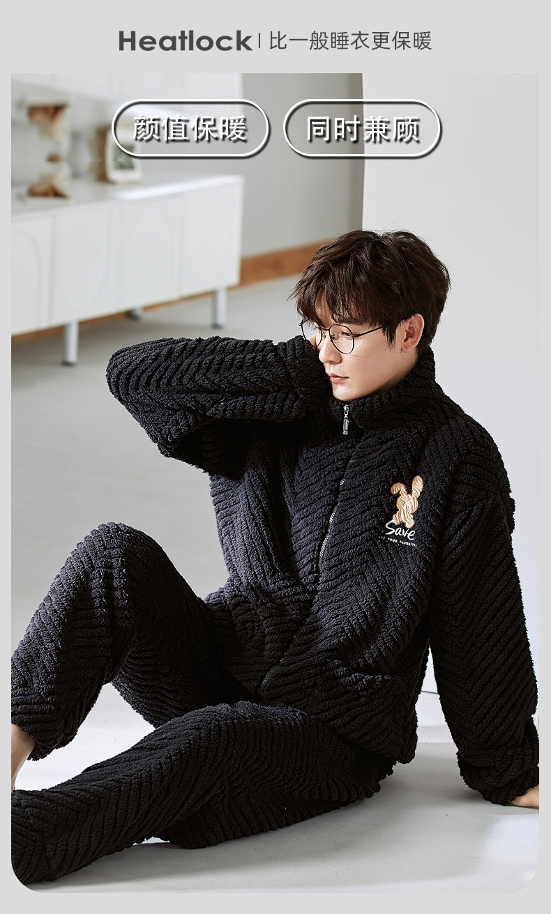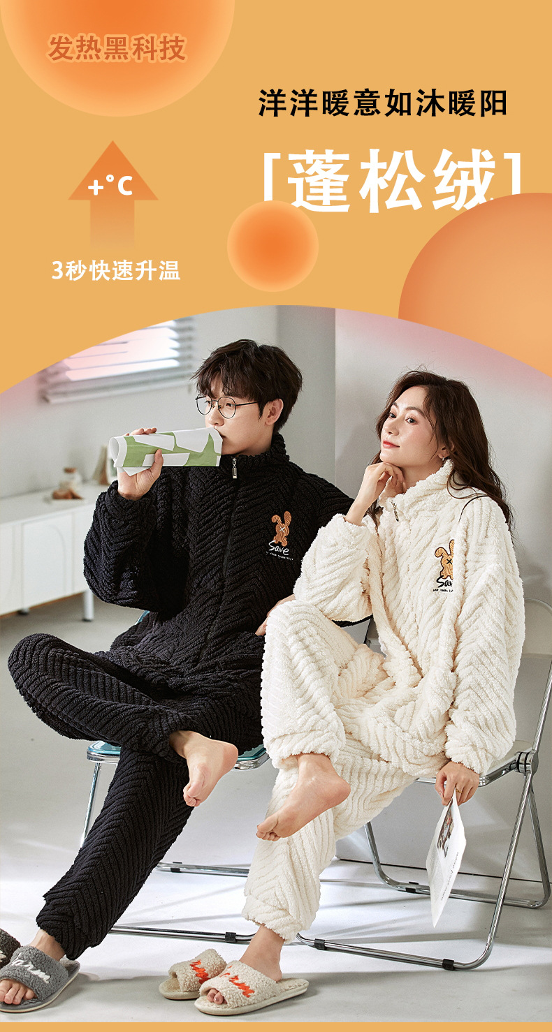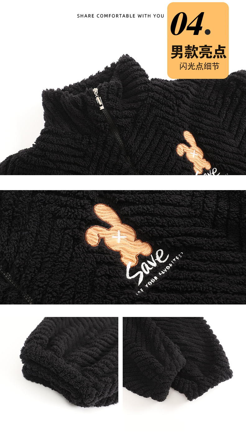 커플 잠옷 산호 양털 가을과 겨울 두꺼운 기모 홈 옷 남녀 플란넬 지퍼 세트