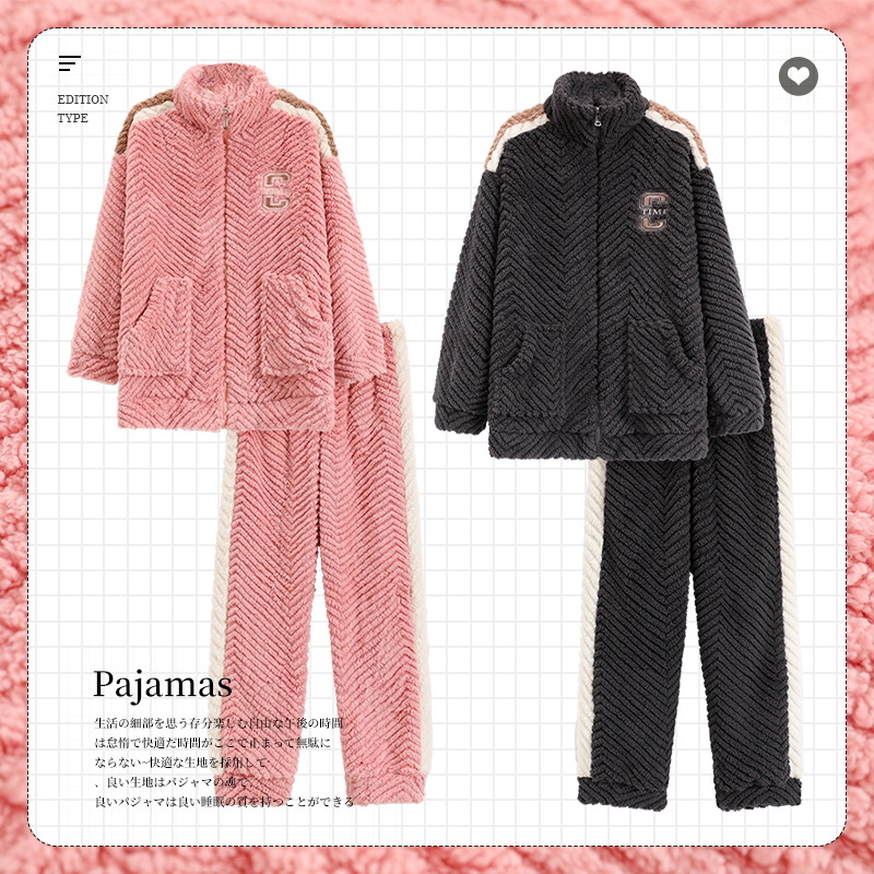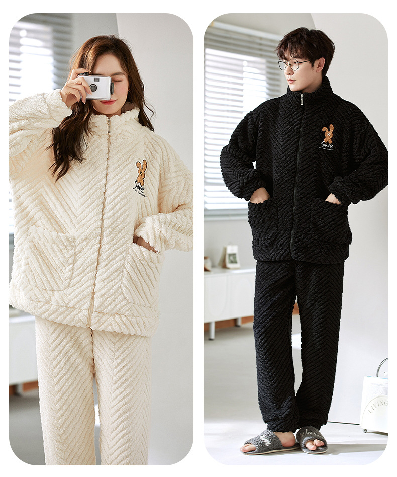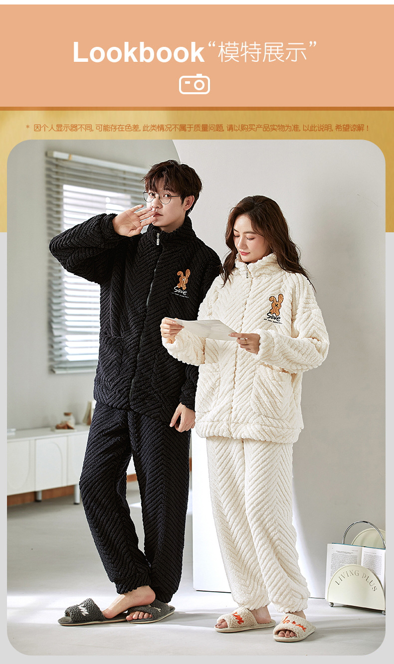 커플 잠옷 산호 양털 가을과 겨울 두꺼운 기모 홈 옷 남녀 플란넬 지퍼 세트스토어 가기