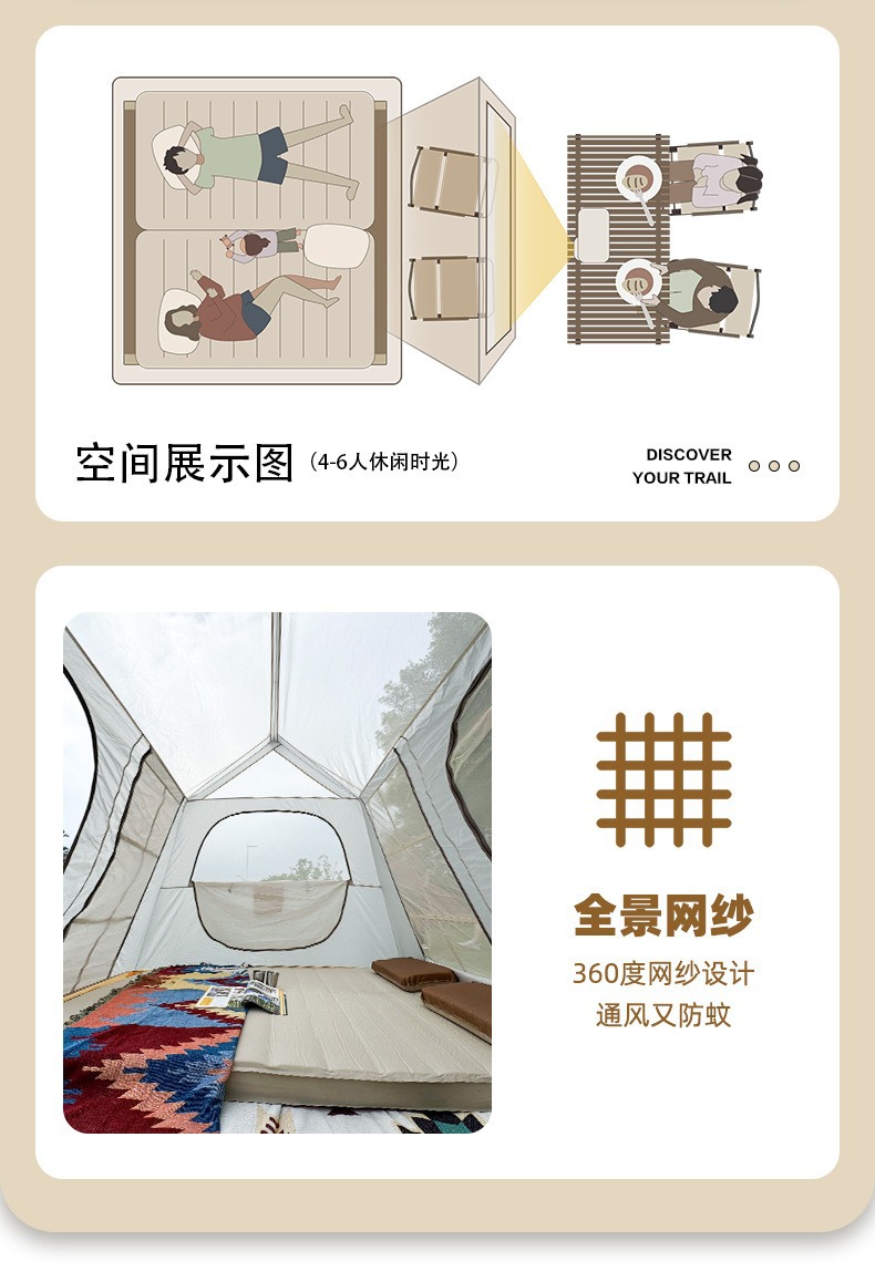 3-4 명을위한 동일한 6.0 능선 텐트 캠핑 텐트는 완전 자동이며 빠른 열림 두꺼운 텐트를 예상 할 수 있습니다.스토어 가기