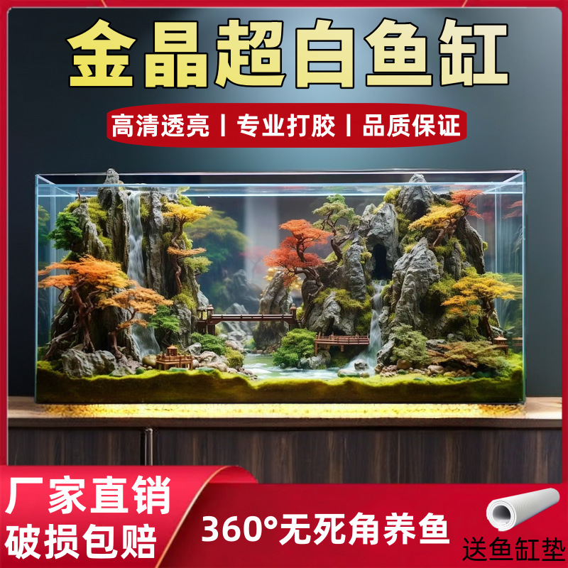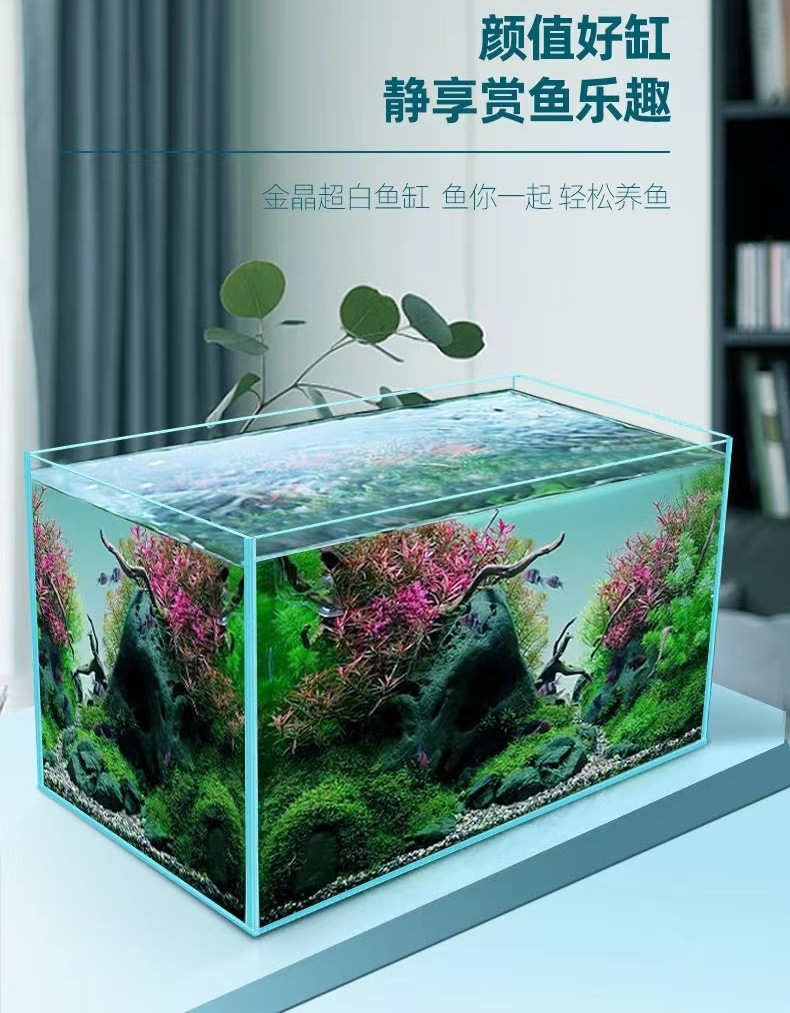 진징 슈퍼 화이트 유리 어항 거실 바탕 화면 직각 생태 조경 탱크 양동이 물고기 금붕어 거북이 투명한 물 공장 탱크스토어 가기