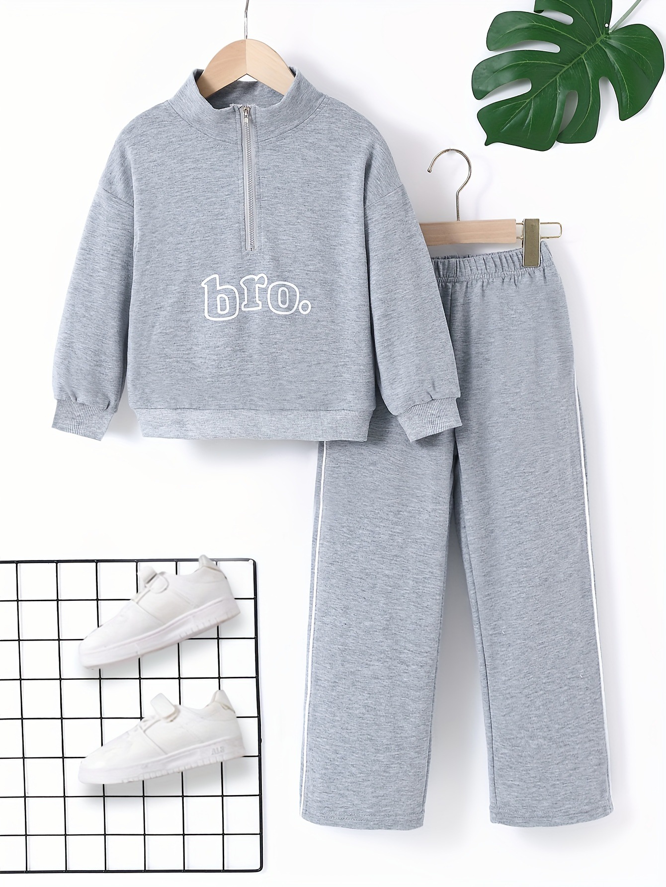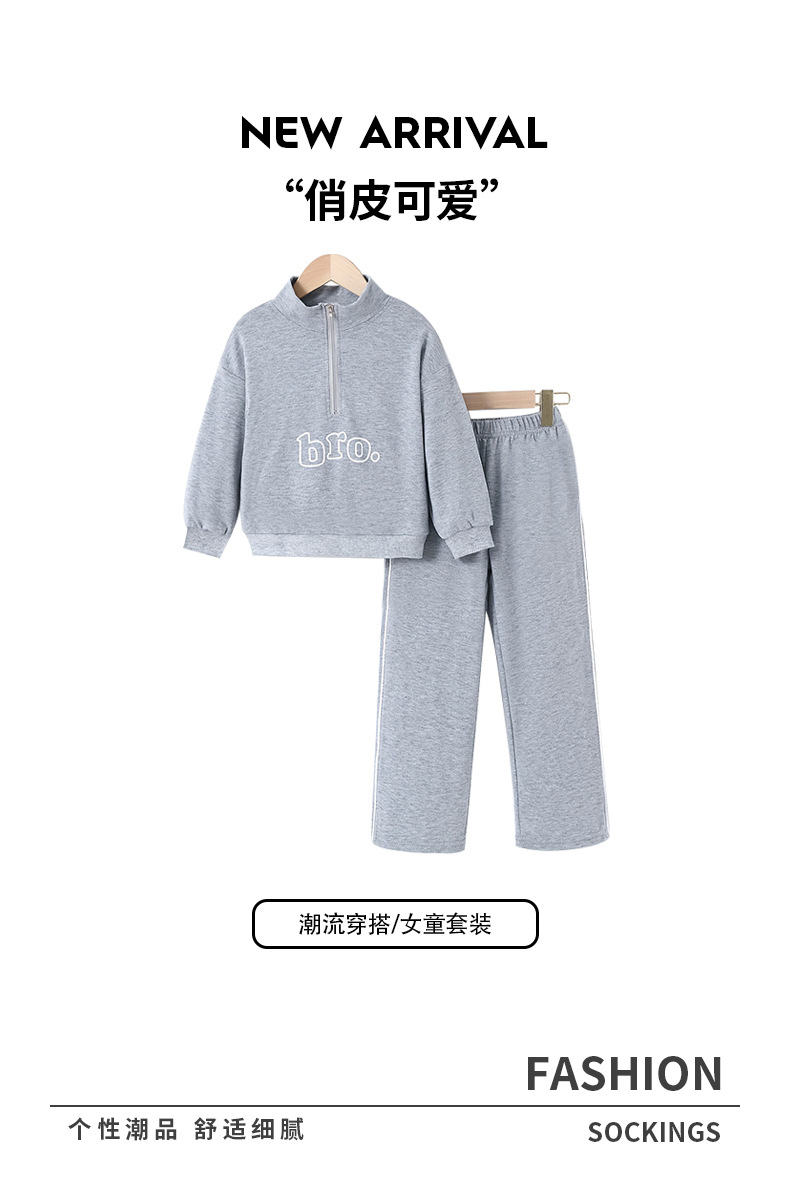 대외 무역 어린이 스웨터 세트 복고풍 지퍼 스탠드 칼라 회색 긴팔 최고 스포츠 바지 어린이 집 투피스 세트