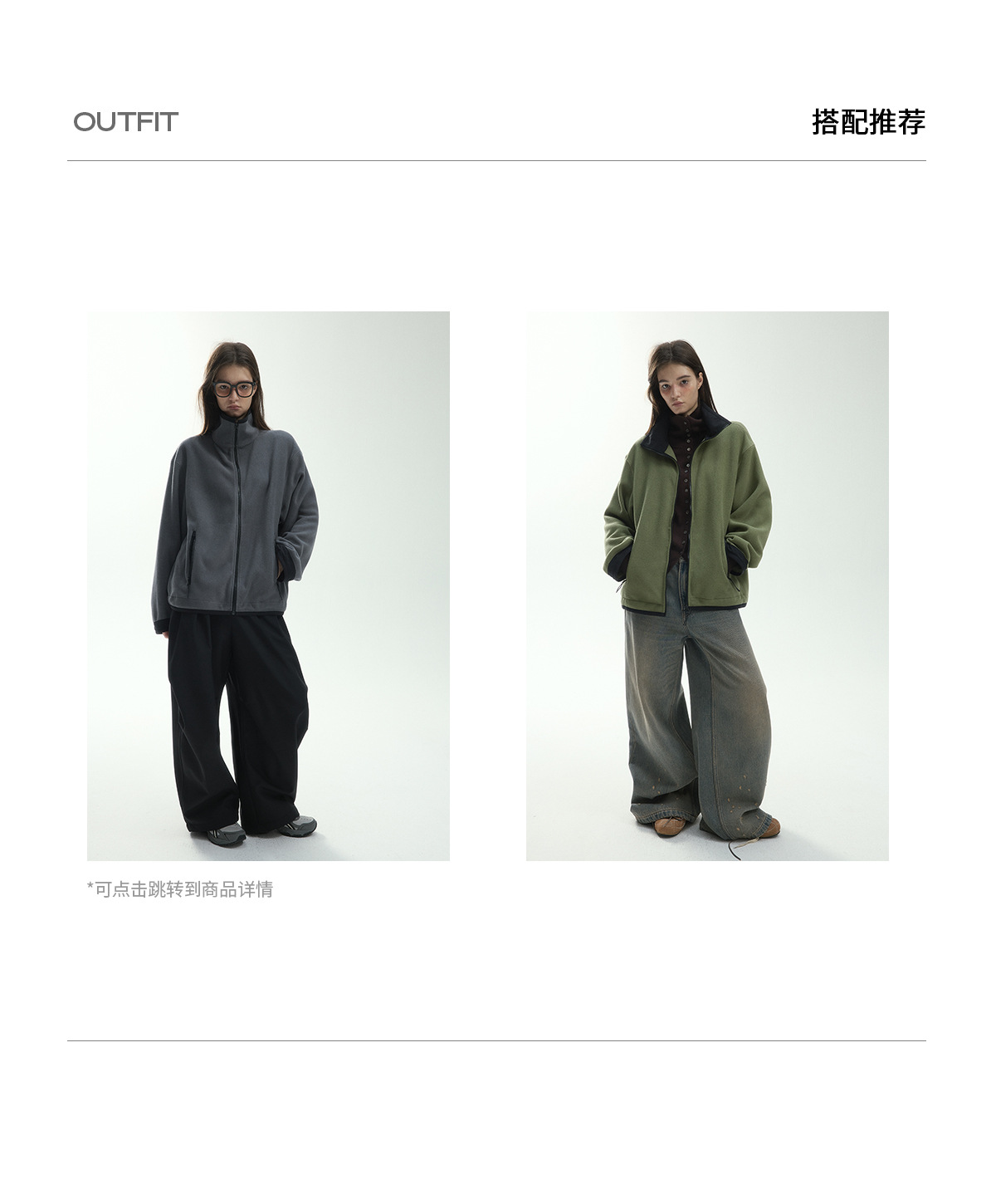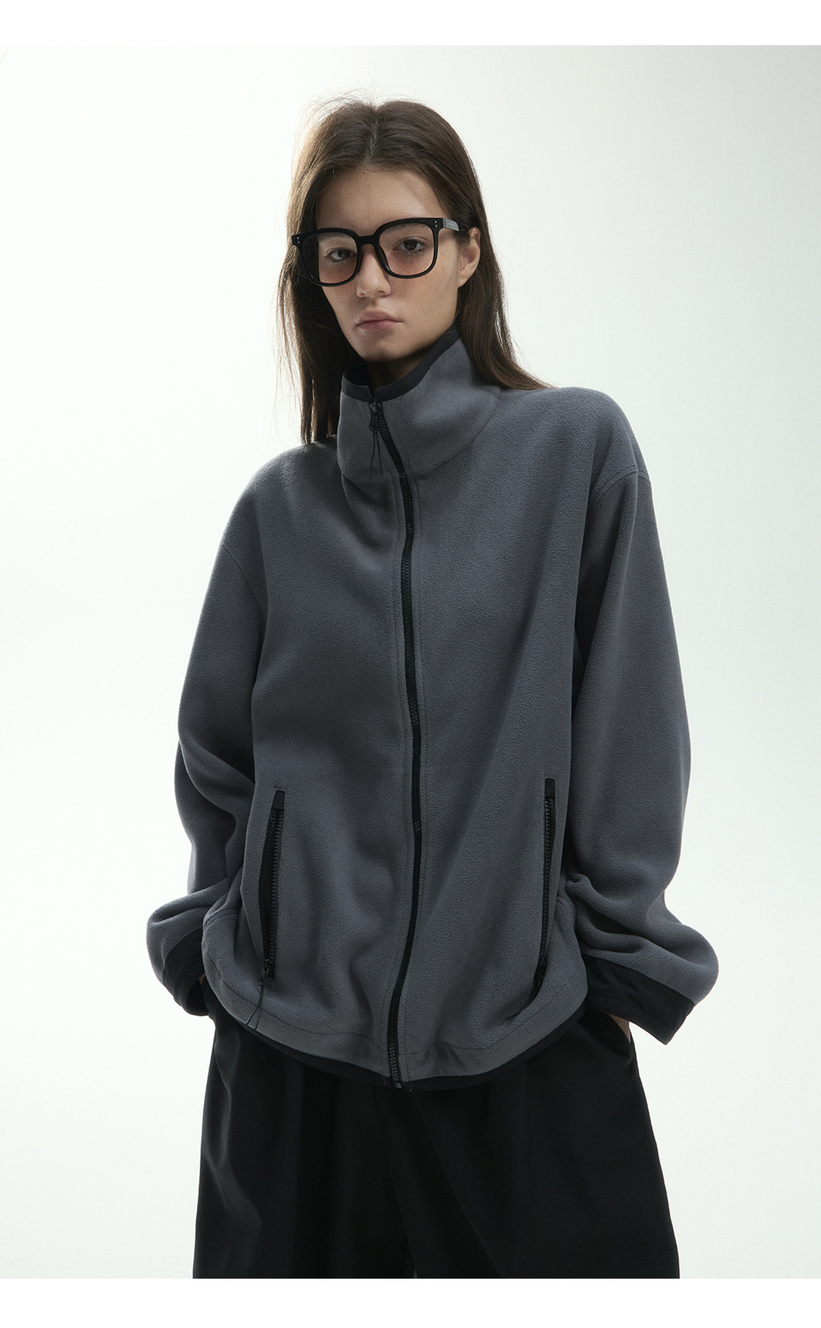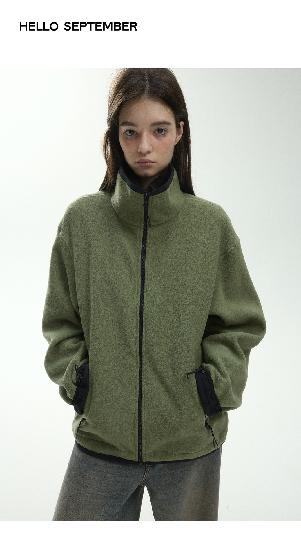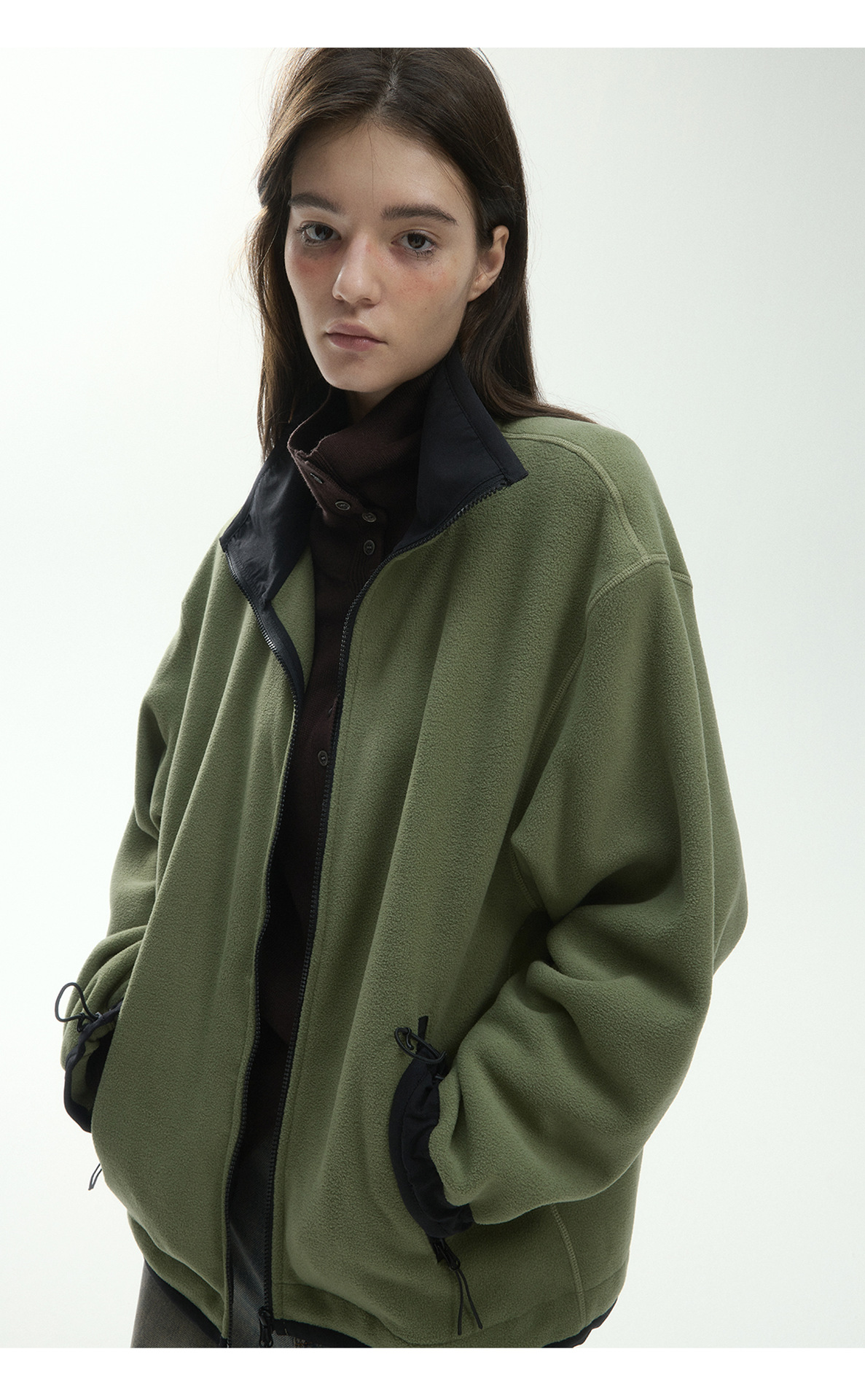 [시티] 여성용 신제품 코튼 드로스트링 핸드 슬리브 지퍼 포켓 폴라 플리스 라펠 긴팔 재킷 V7779