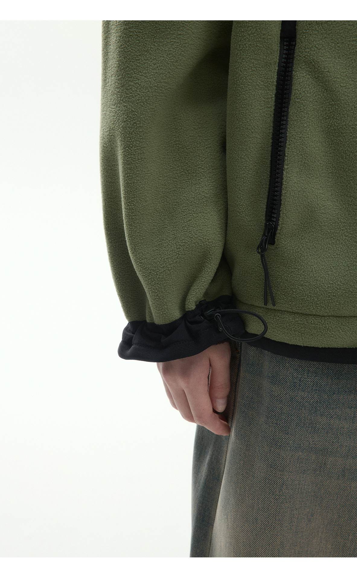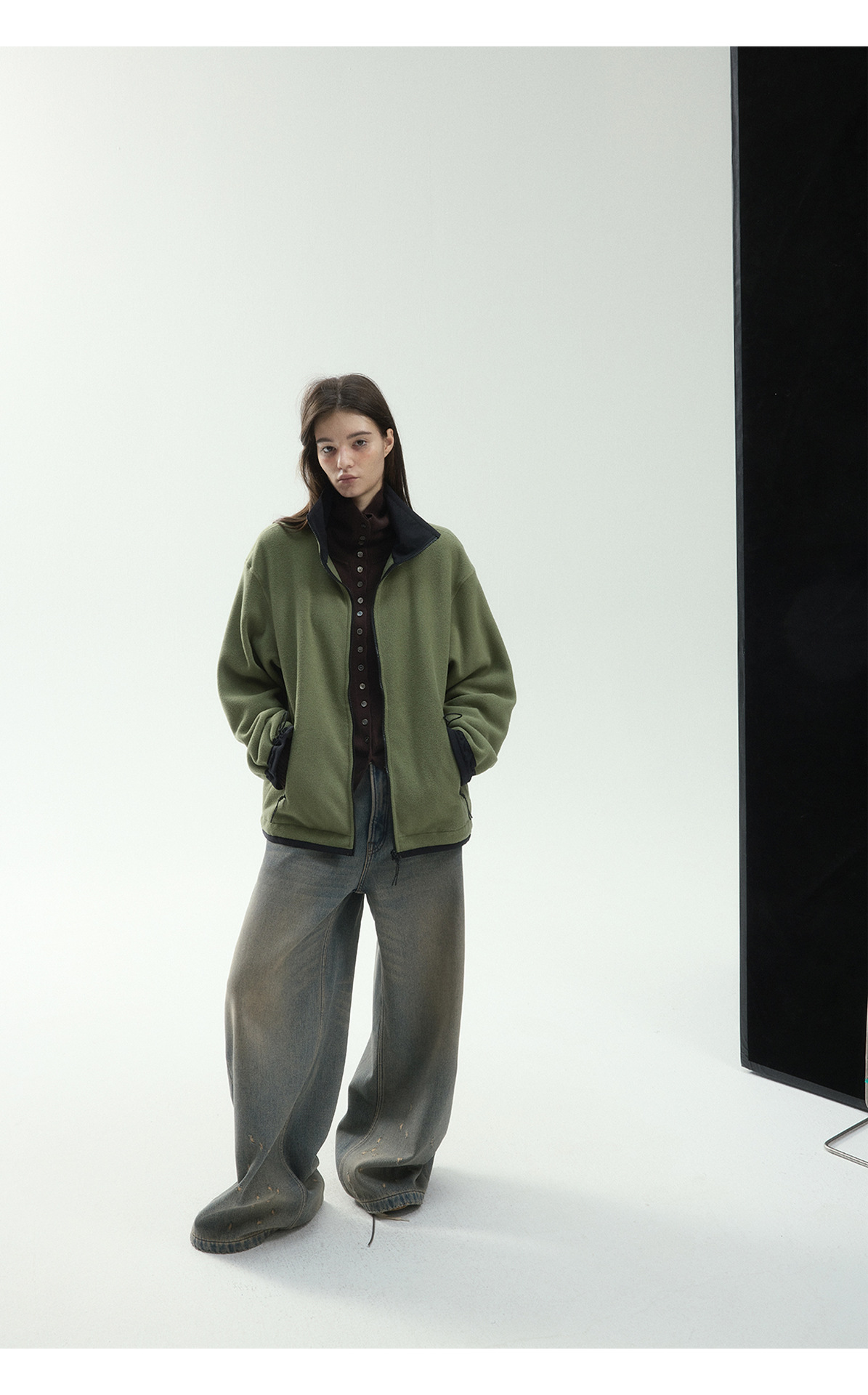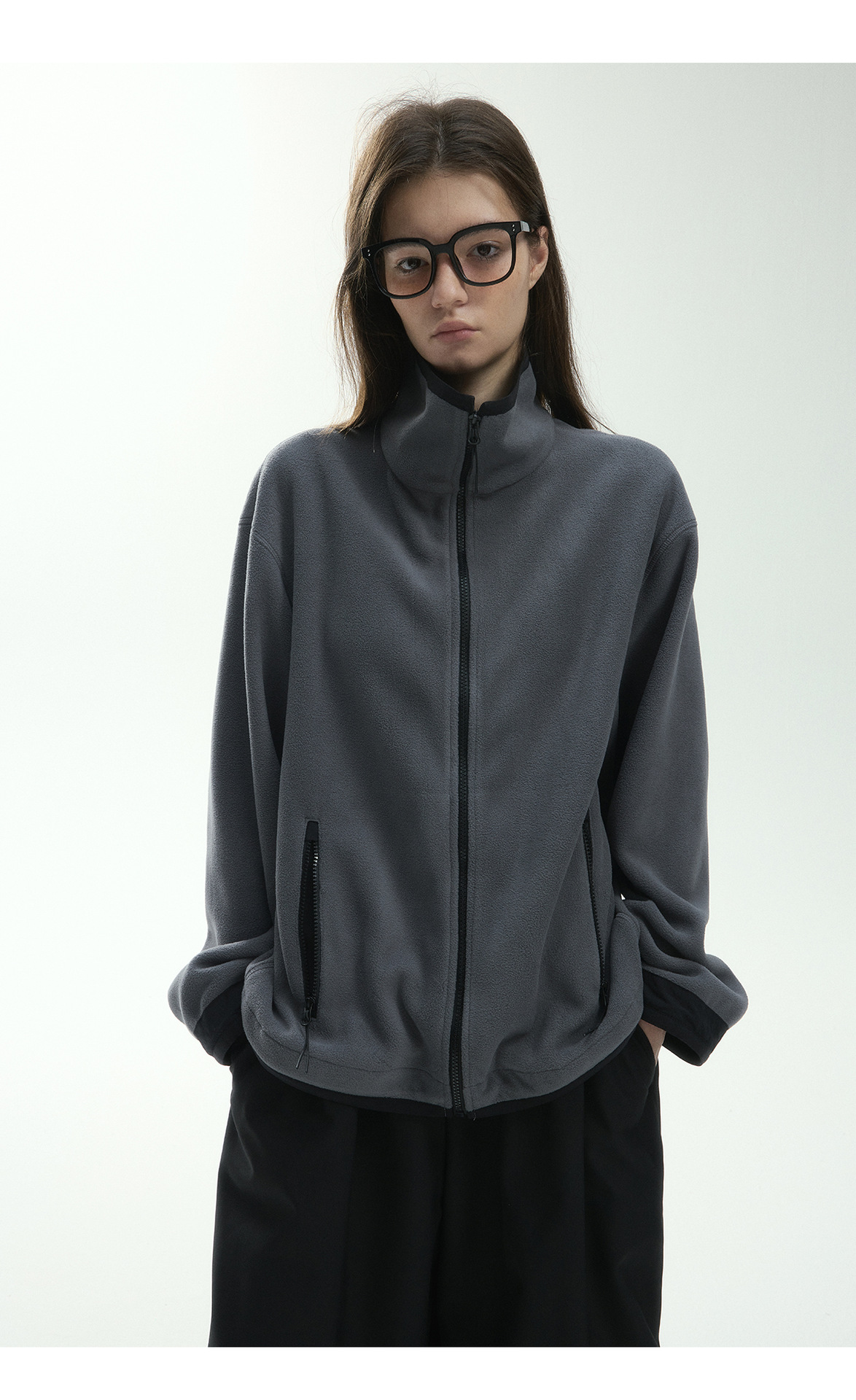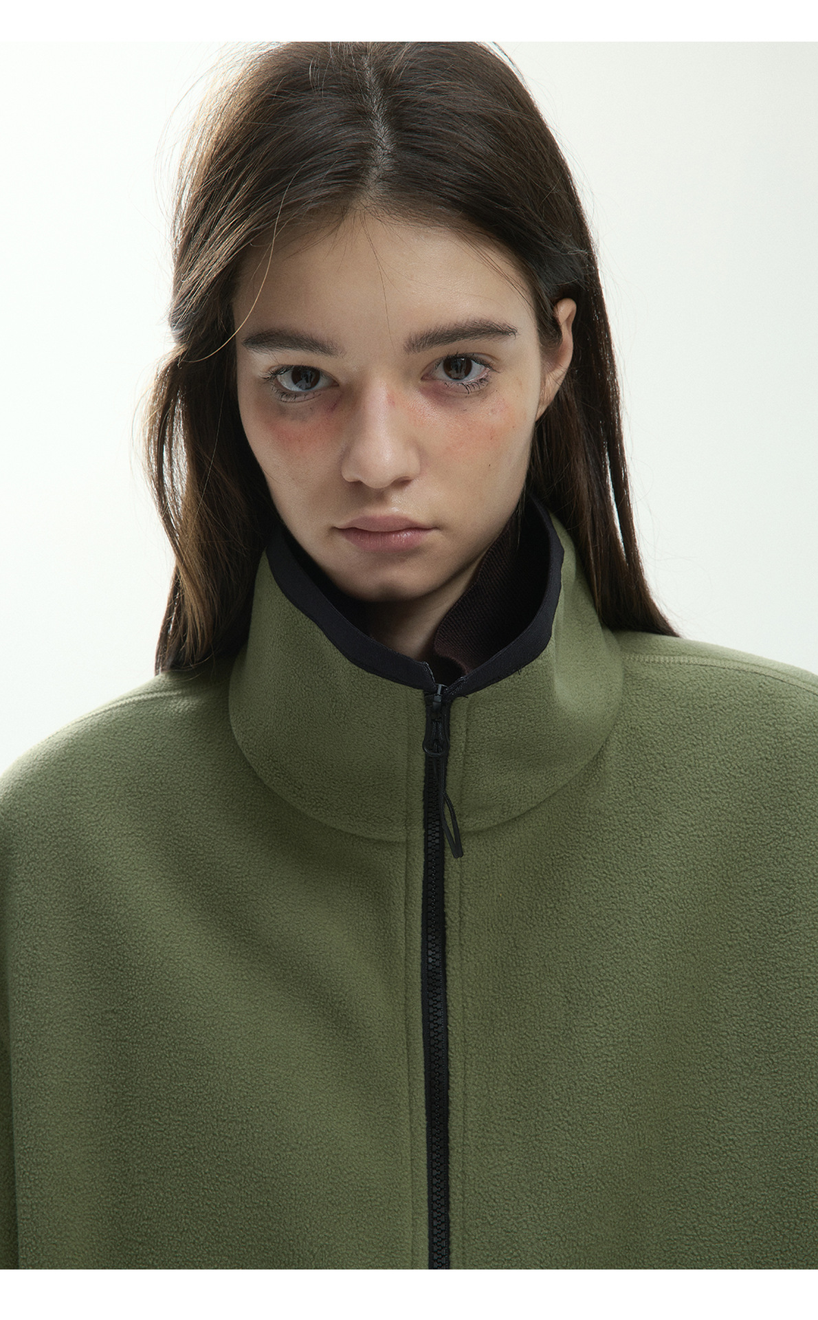 [시티] 여성용 신제품 코튼 드로스트링 핸드 슬리브 지퍼 포켓 폴라 플리스 라펠 긴팔 재킷 V7779