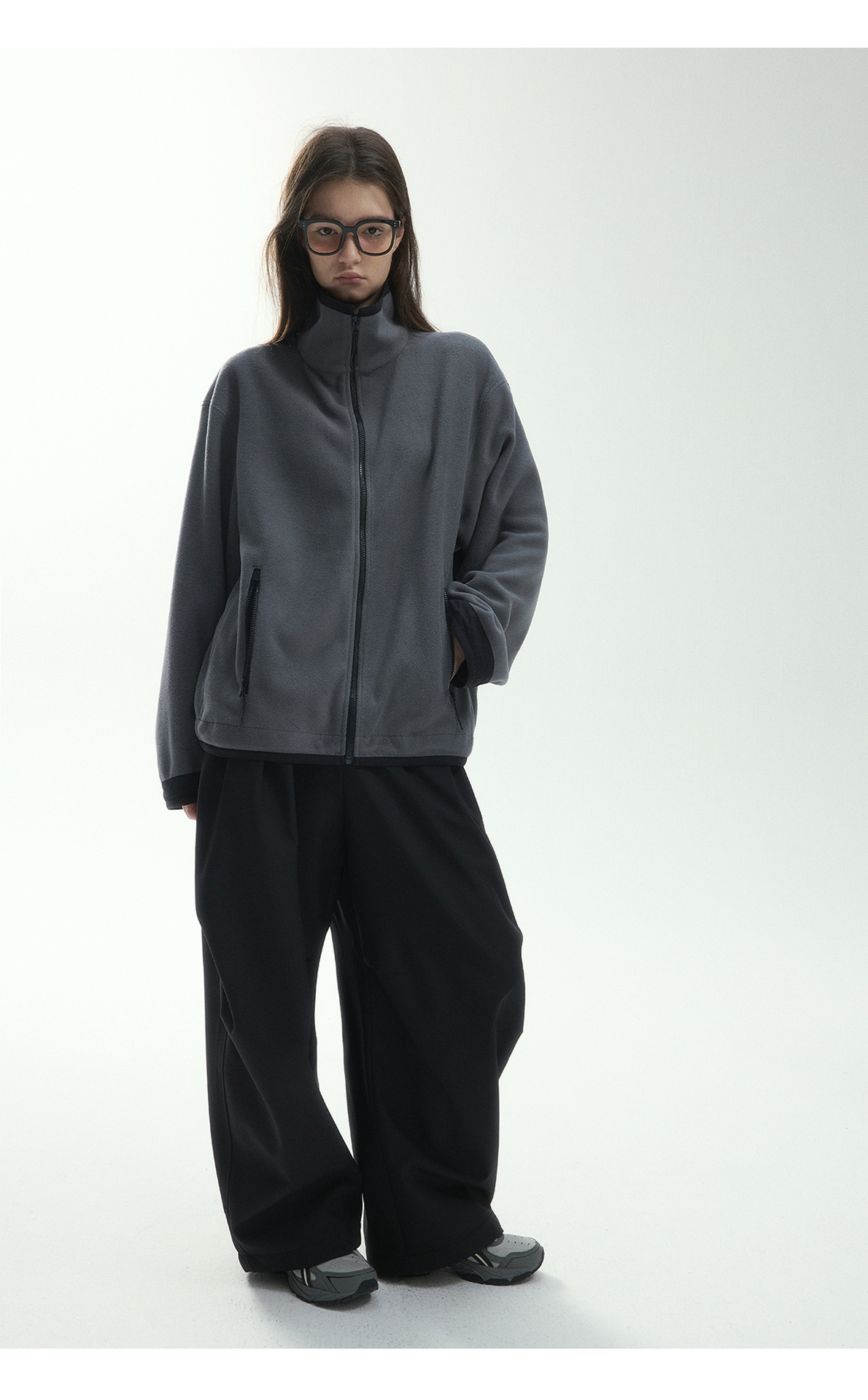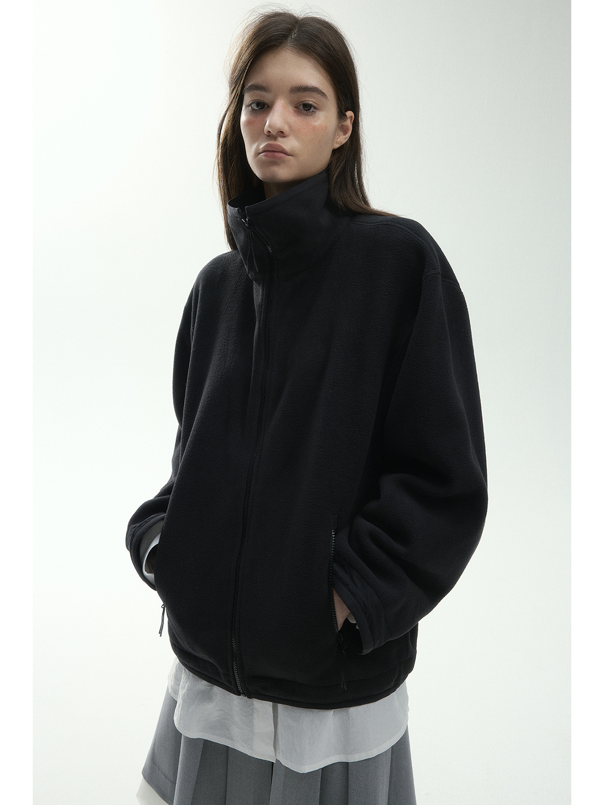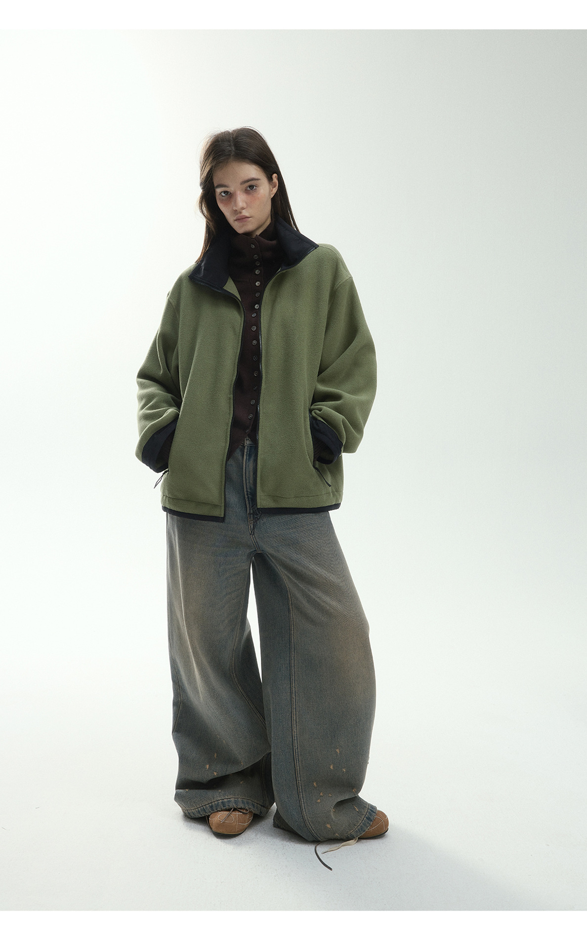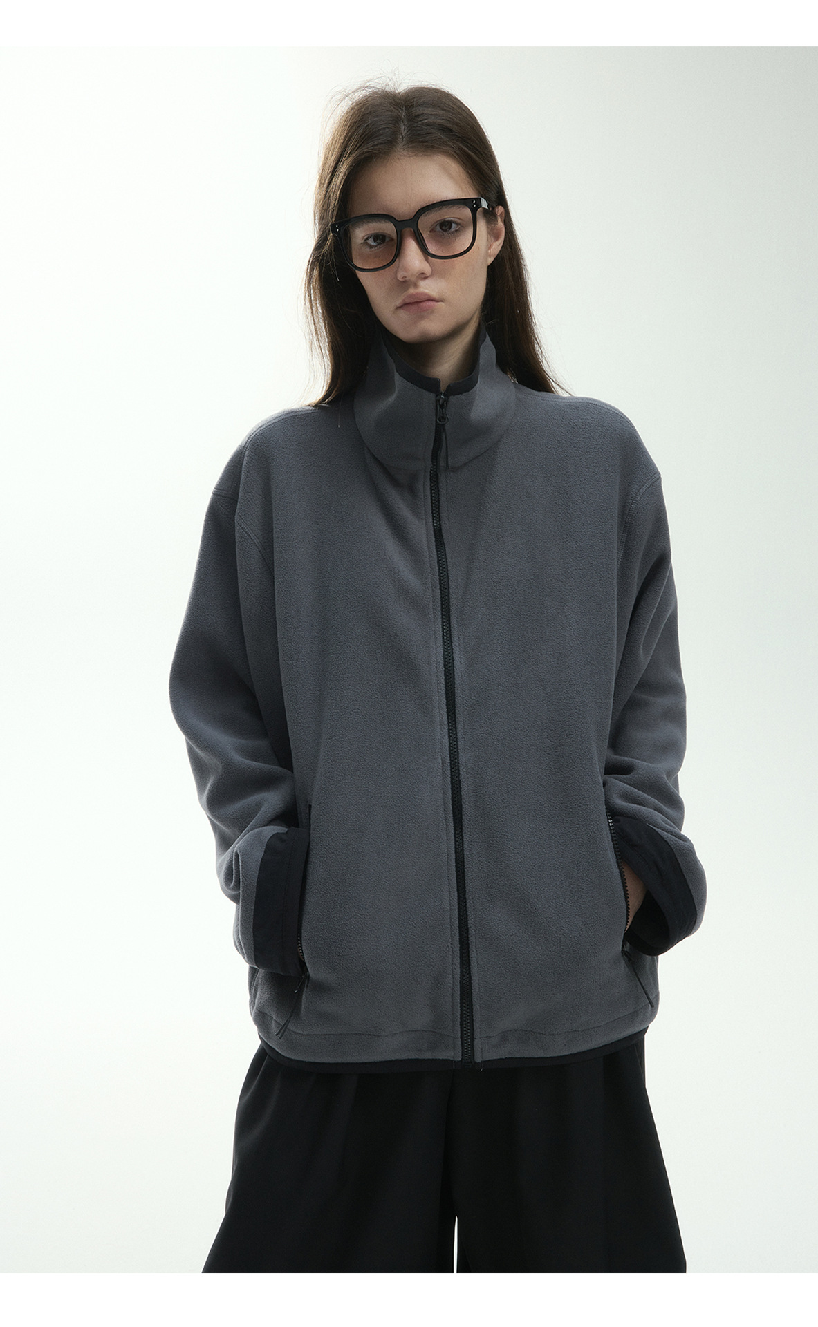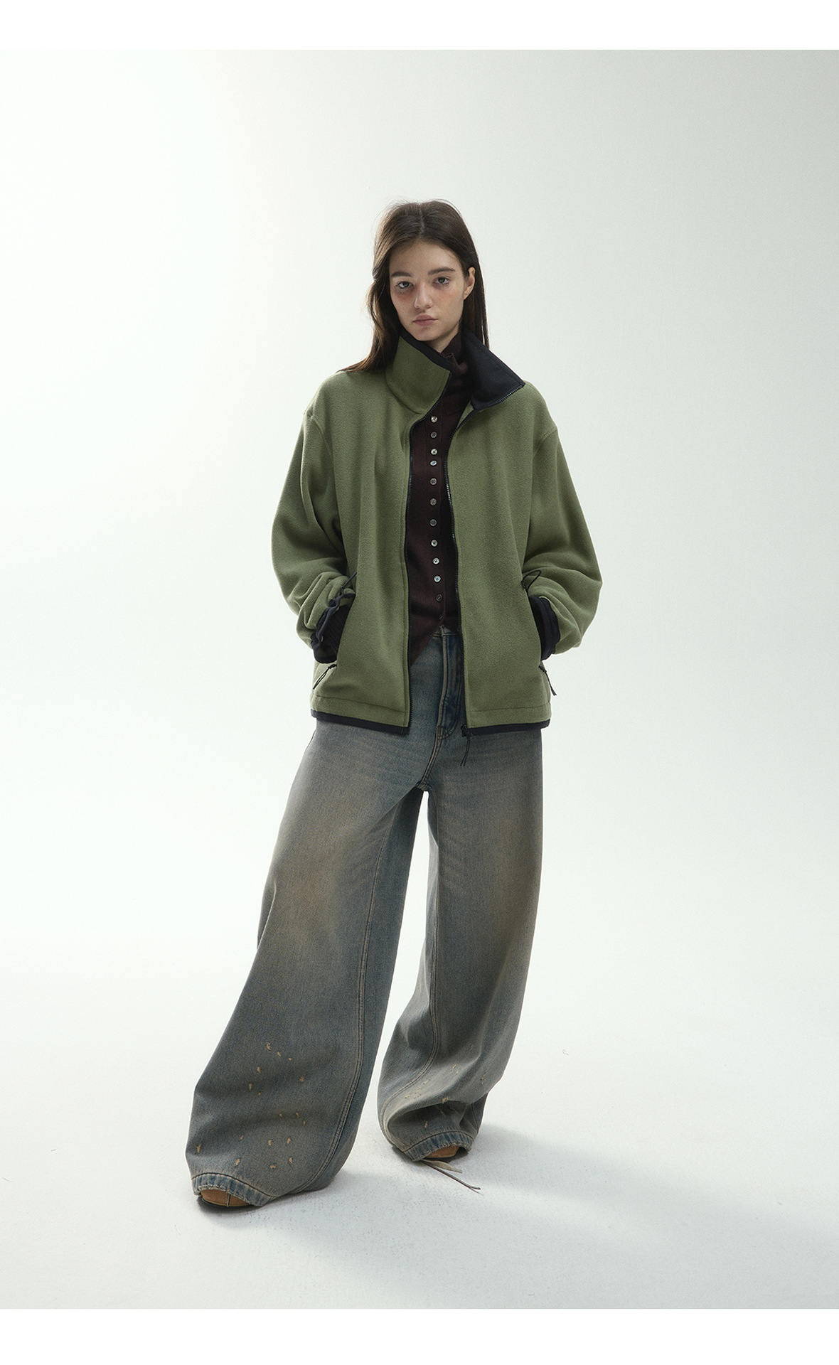 [시티] 여성용 신제품 코튼 드로스트링 핸드 슬리브 지퍼 포켓 폴라 플리스 라펠 긴팔 재킷 V7779