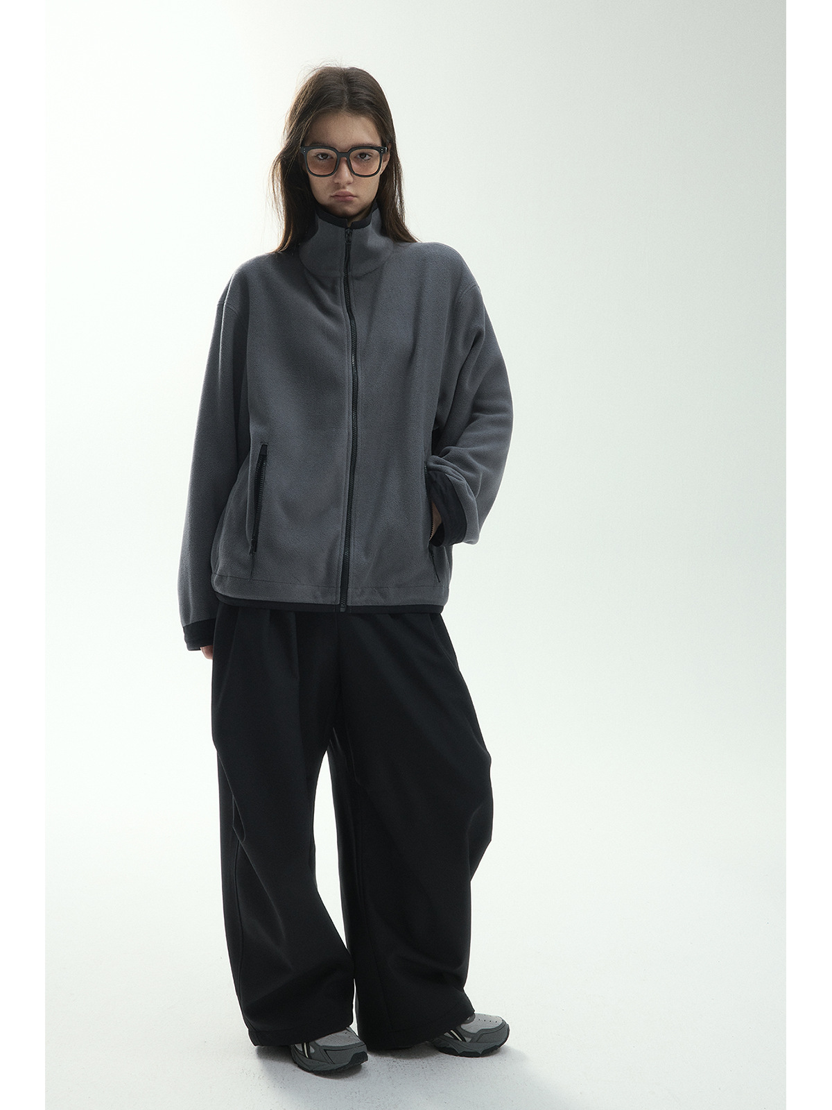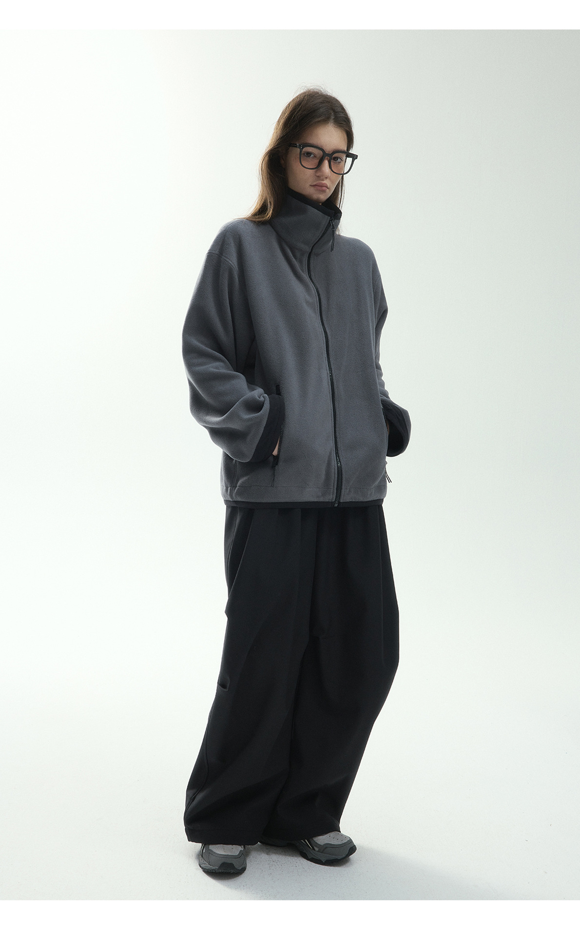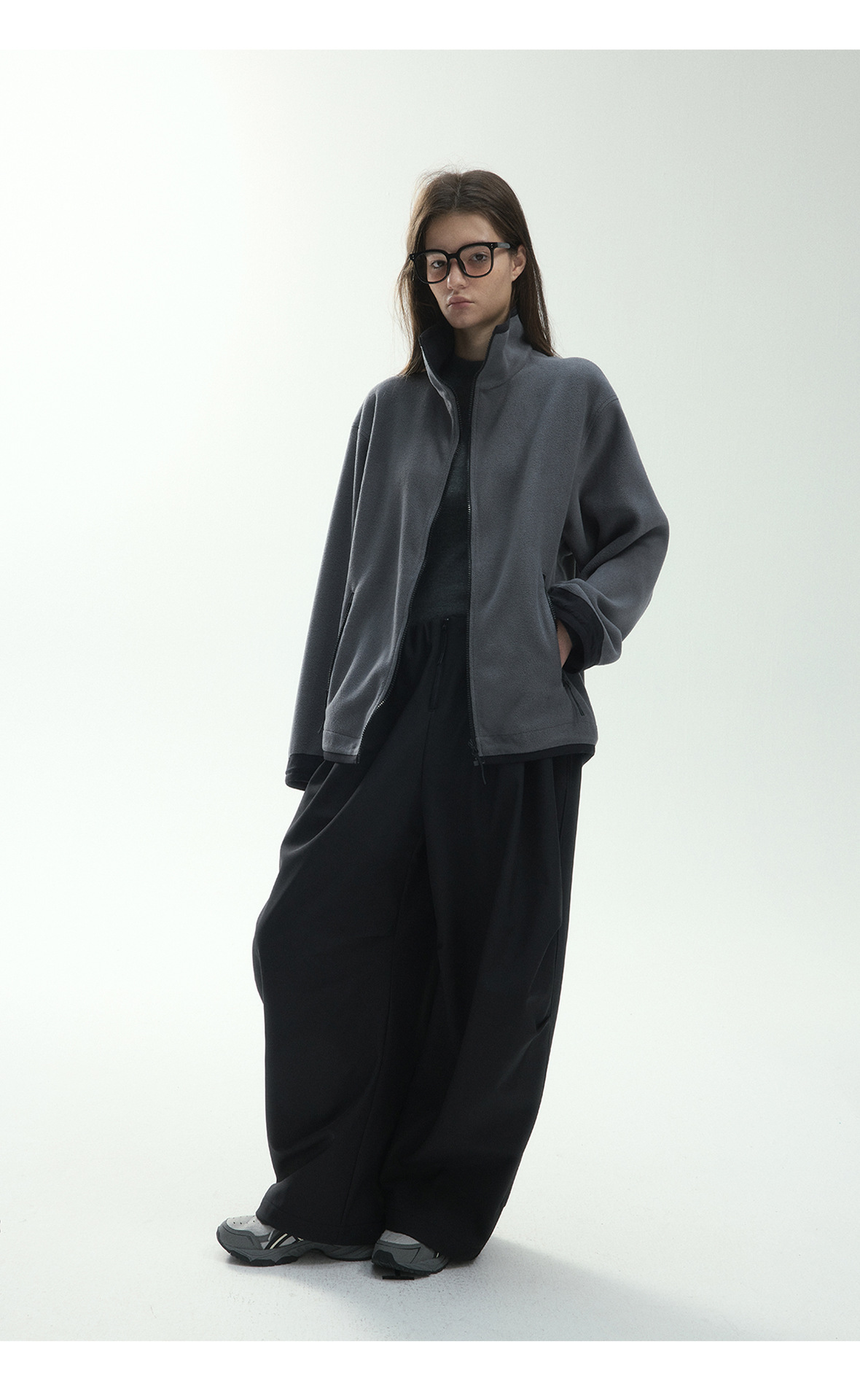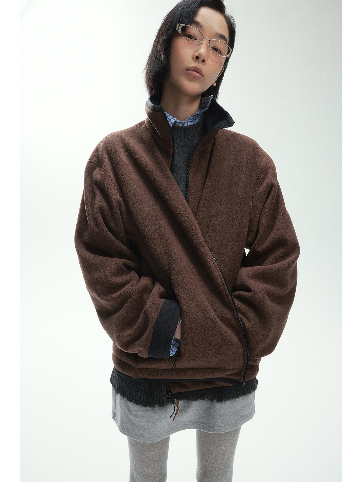 [시티] 여성용 신제품 코튼 드로스트링 핸드 슬리브 지퍼 포켓 폴라 플리스 라펠 긴팔 재킷 V7779