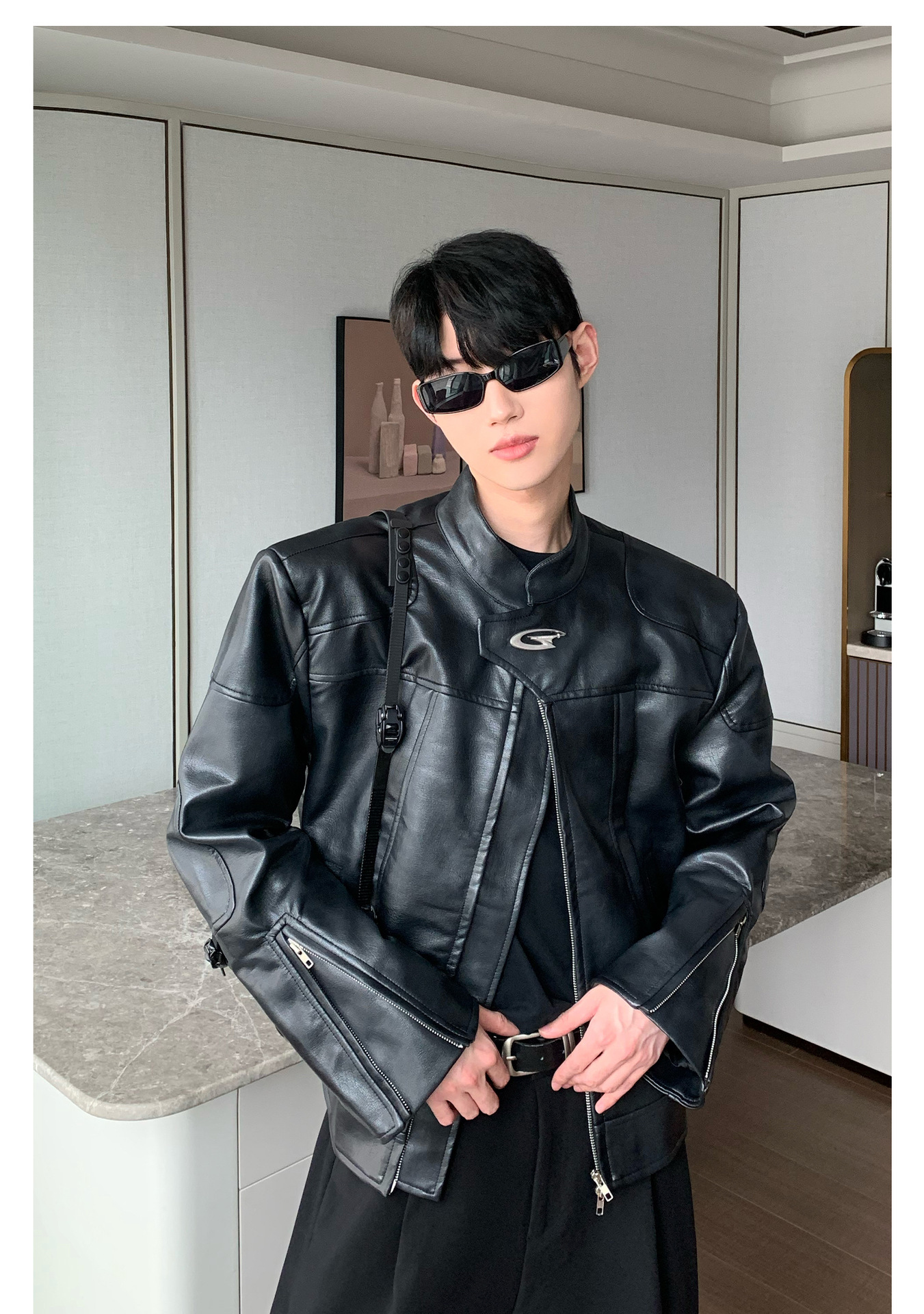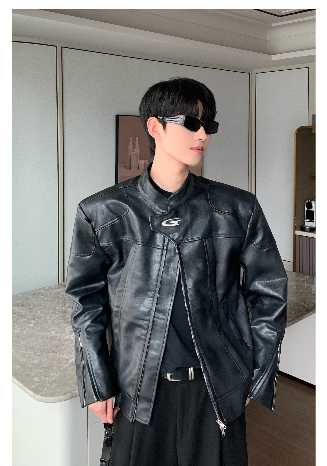 2024 스탠드 칼라 하이 엔드 오토바이 가죽 재킷 남성 봄과 가을 짧은 어깨 패드 재킷 느슨한 비행 재킷 트렌디 브랜드