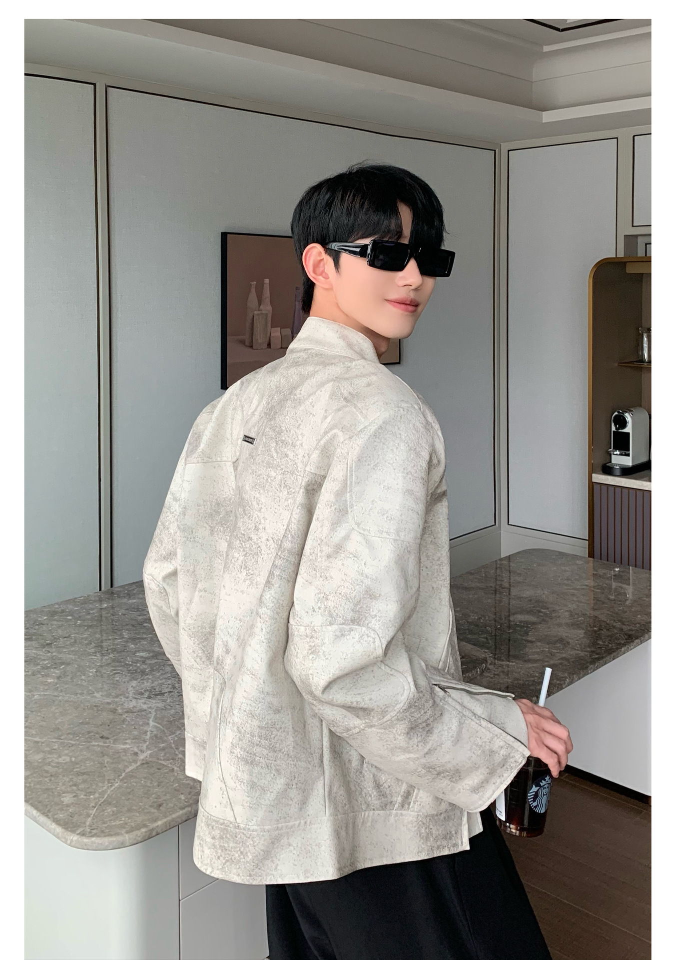 2024 스탠드 칼라 하이 엔드 오토바이 가죽 재킷 남성 봄과 가을 짧은 어깨 패드 재킷 느슨한 비행 재킷 트렌디 브랜드스토어 가기