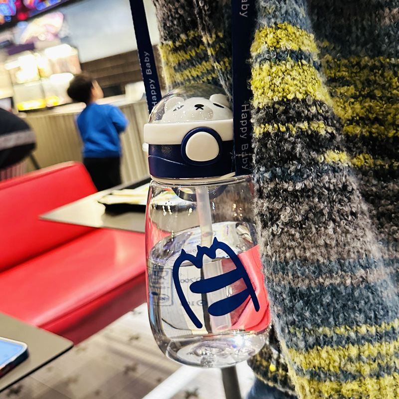 어린이 밀짚 컵 야외 여름 높은 색상 값 플라스틱 컵 누출 스트랩 귀여운 만화 휴대용 학생 주전자
