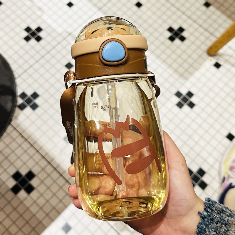 어린이 밀짚 컵 야외 여름 높은 색상 값 플라스틱 컵 누출 스트랩 귀여운 만화 휴대용 학생 주전자스토어 가기