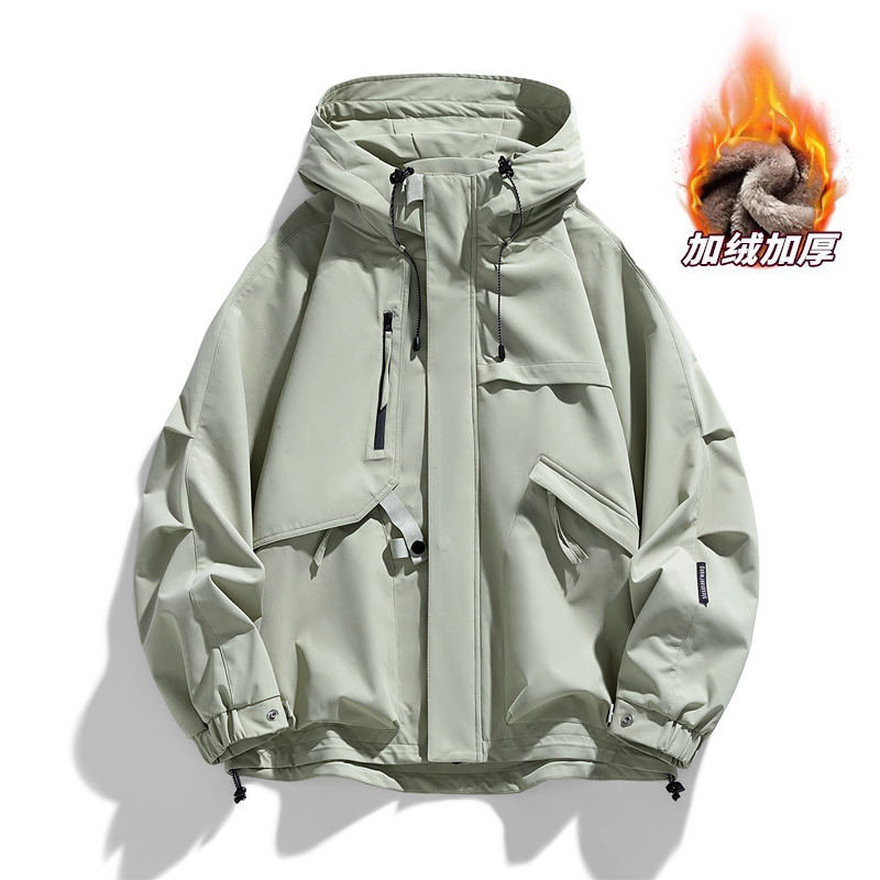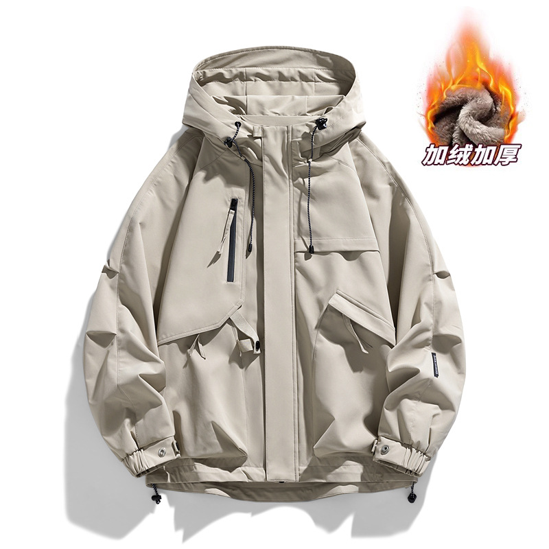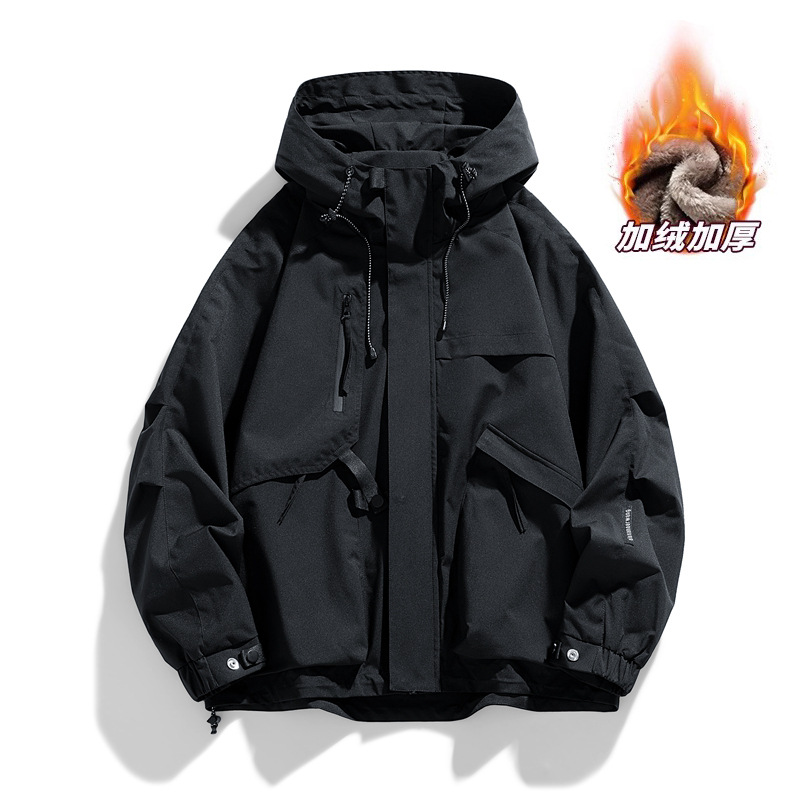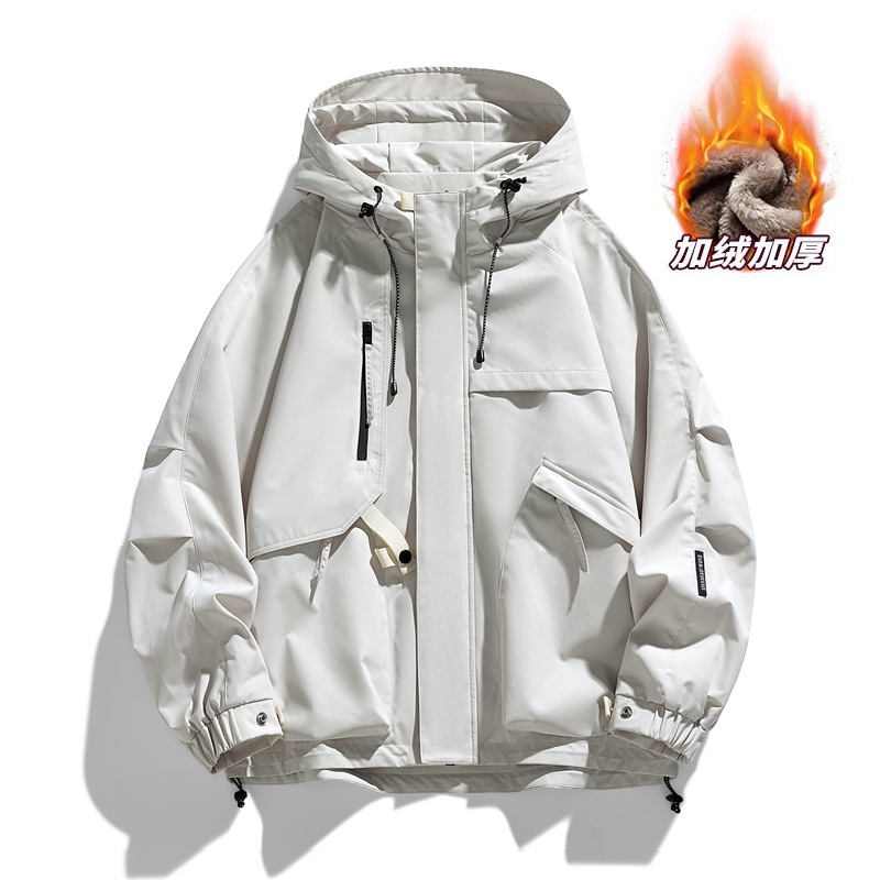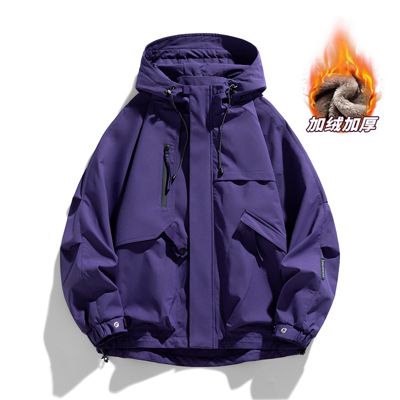 WASSUP 보라색 기모 두꺼운 충전 의류 남성 2024 가을 및 겨울 유행 브랜드 느슨한 등산 세트 재킷 코트