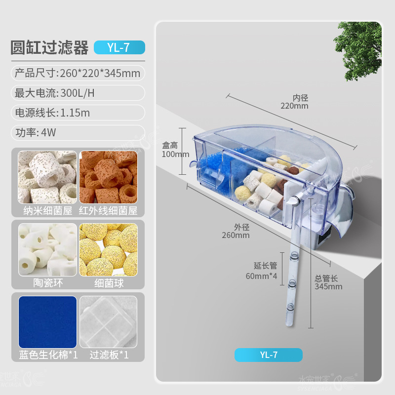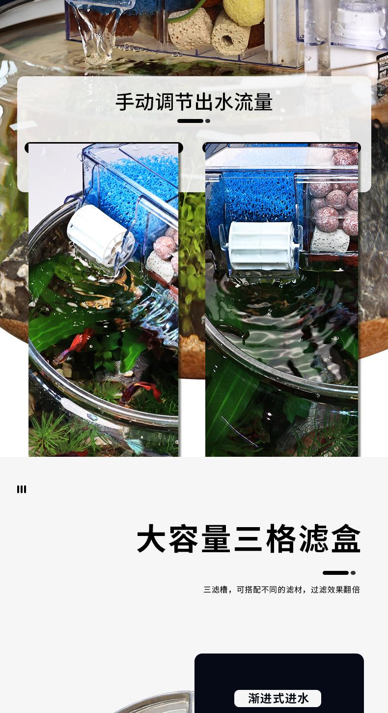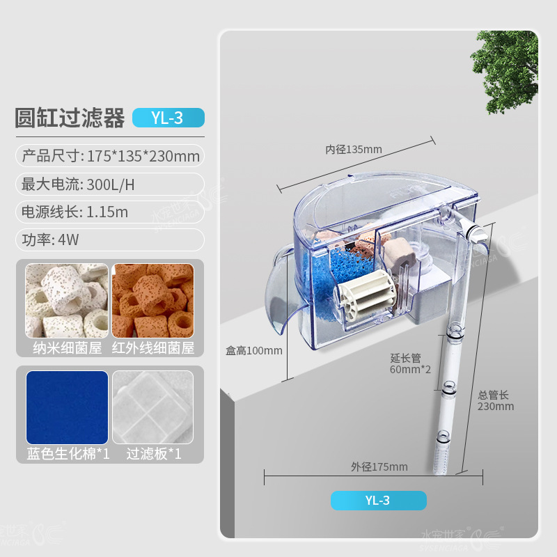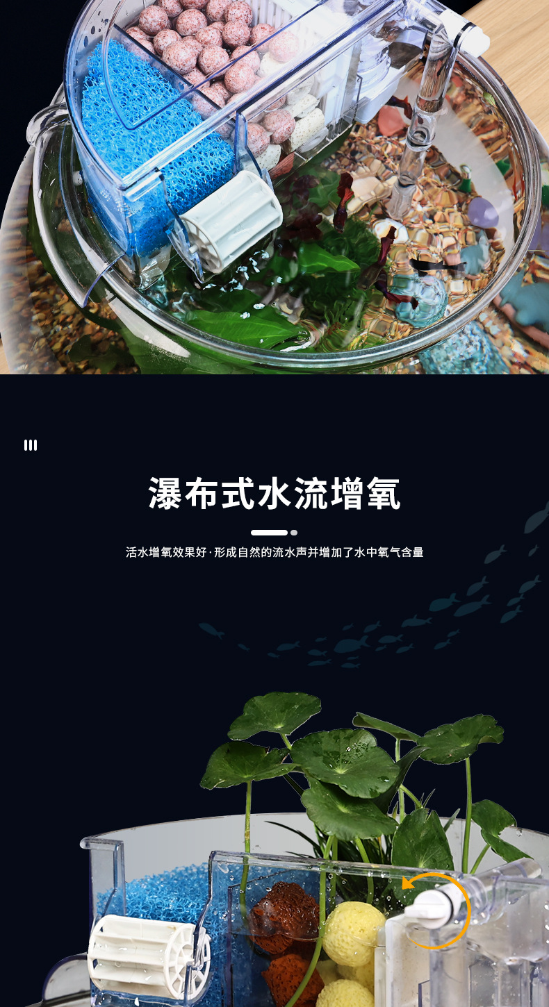 둥근 물고기 탱크 필터 산소 만들기 기계 필터 정수 사이클 3 대 1 필터 상자 세라믹 폭포 물방울스토어 가기