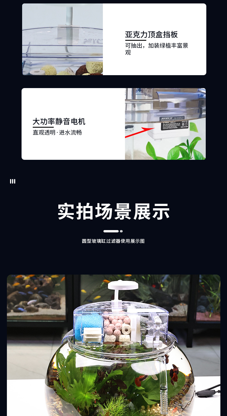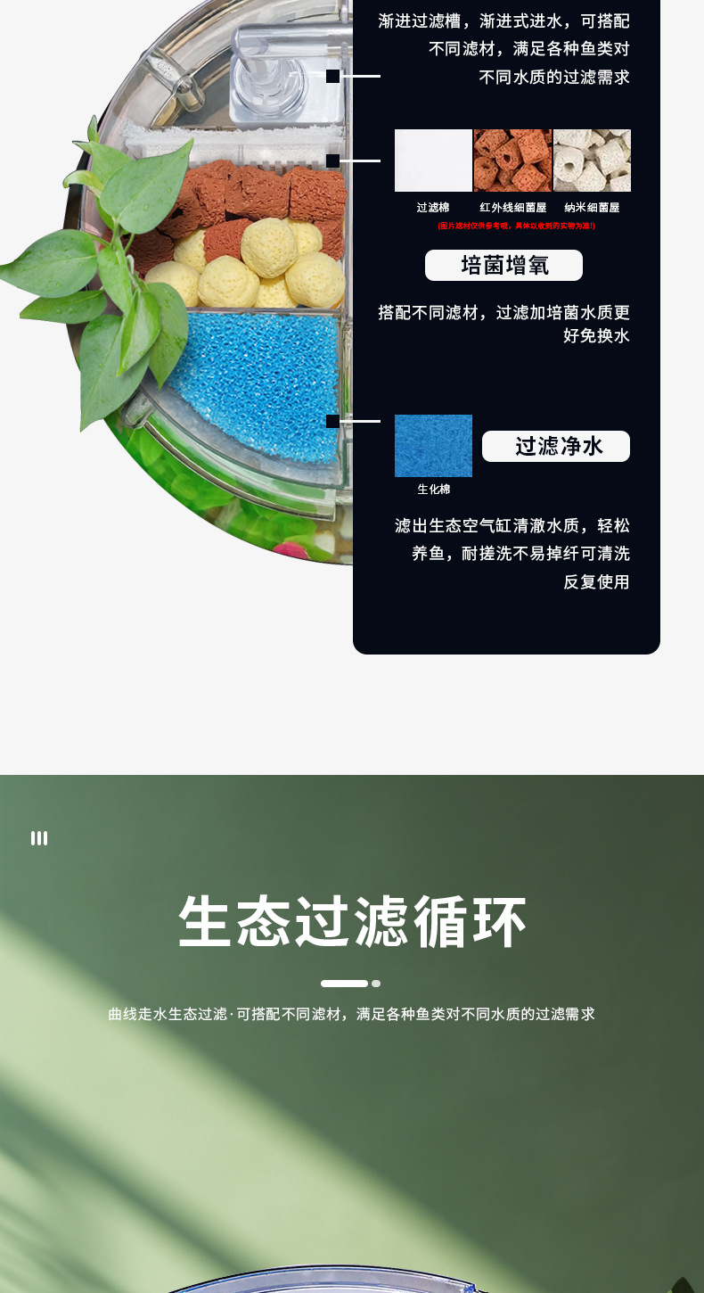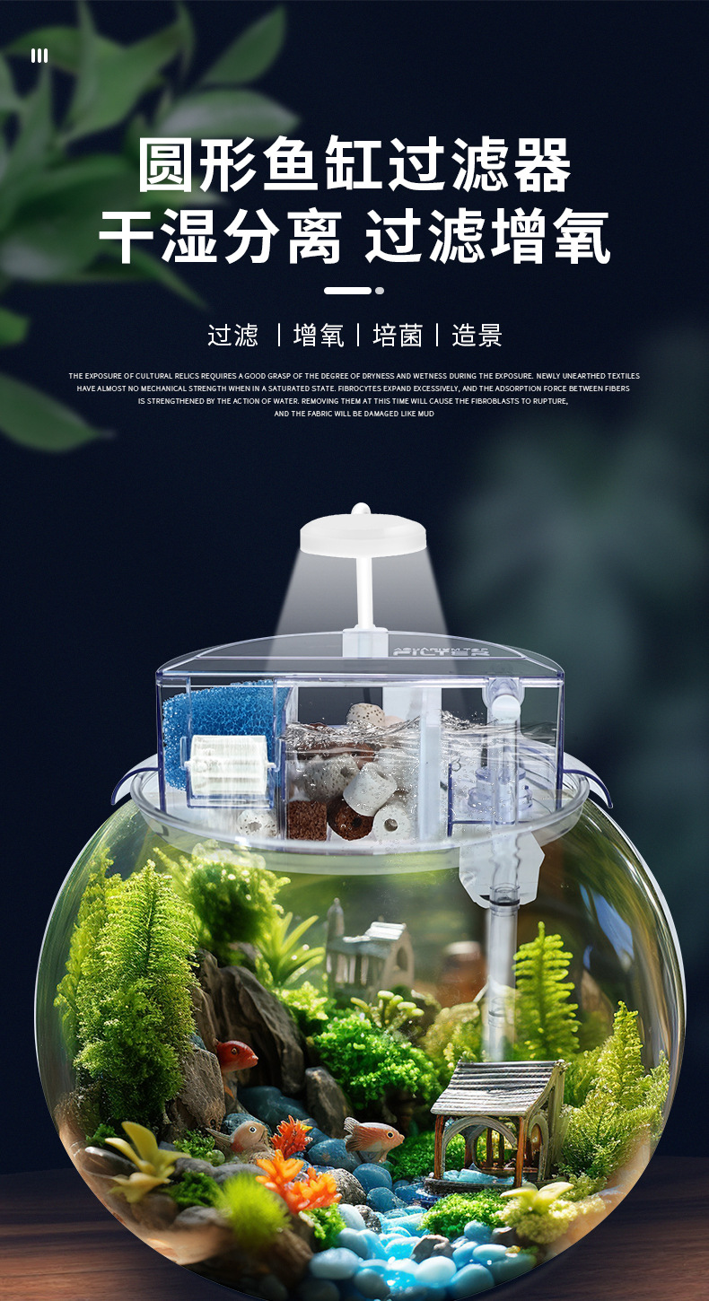 둥근 물고기 탱크 필터 산소 만들기 기계 필터 정수 사이클 3 대 1 필터 상자 세라믹 폭포 물방울스토어 가기
