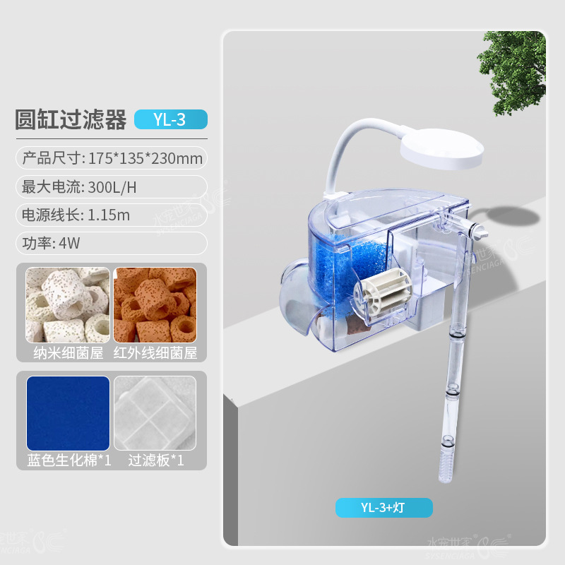 둥근 물고기 탱크 필터 산소 만들기 기계 필터 정수 사이클 3 대 1 필터 상자 세라믹 폭포 물방울